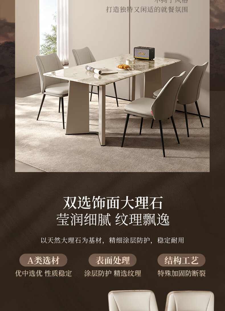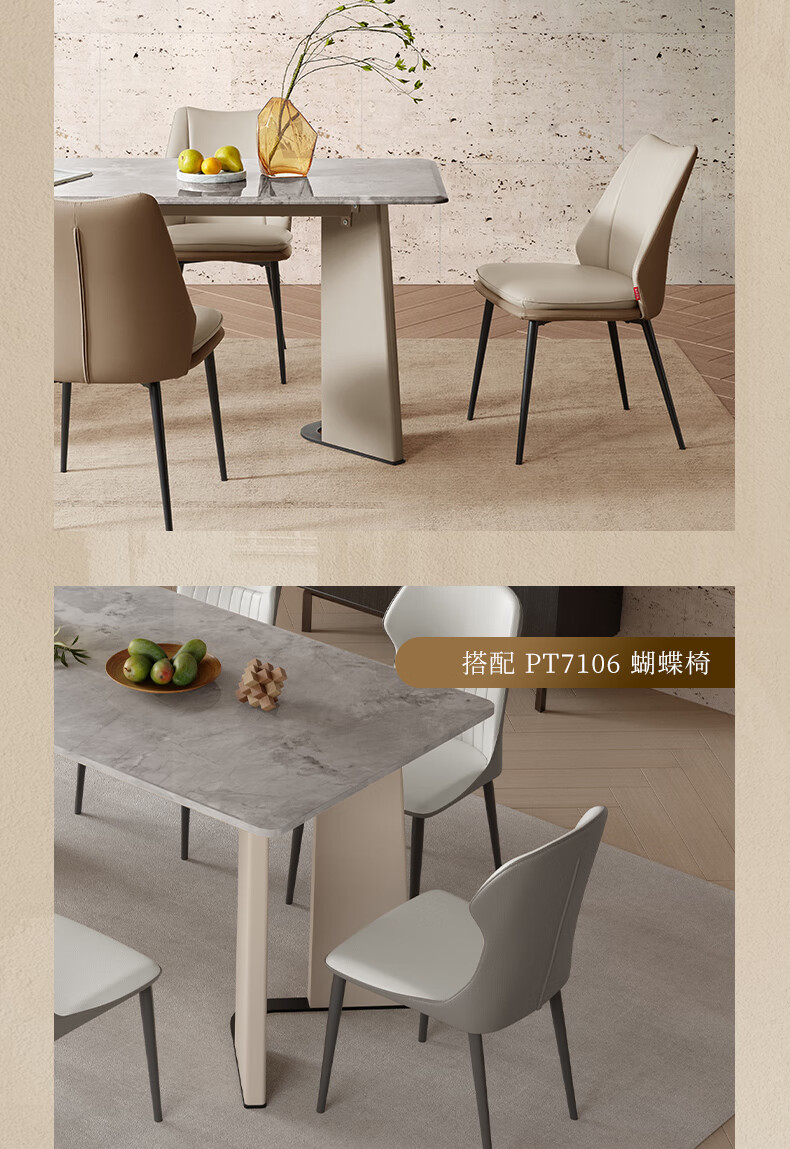 顾家家居(KUKA)意式大理石餐桌家用餐桌椅组合饭桌PT7126T 1.6M餐桌+蝴蝶椅*4