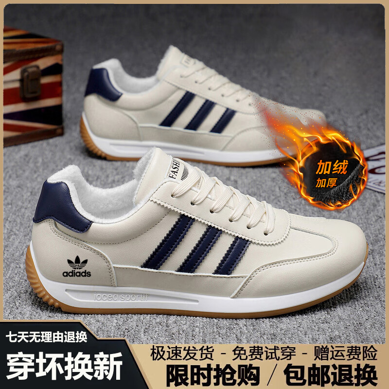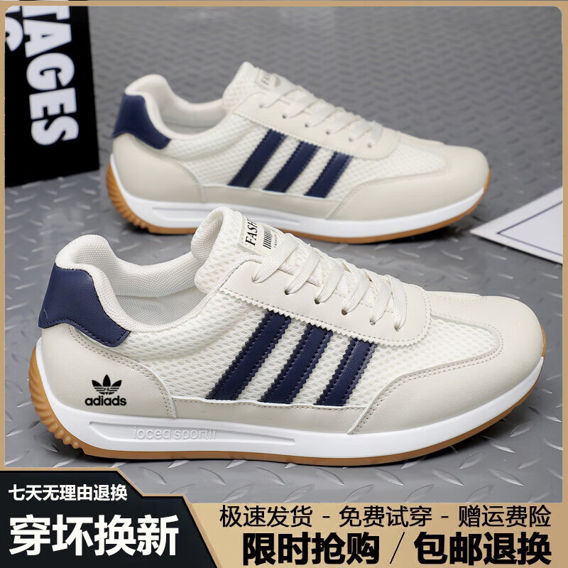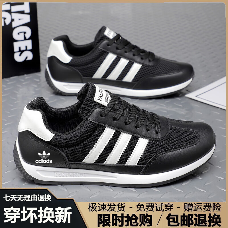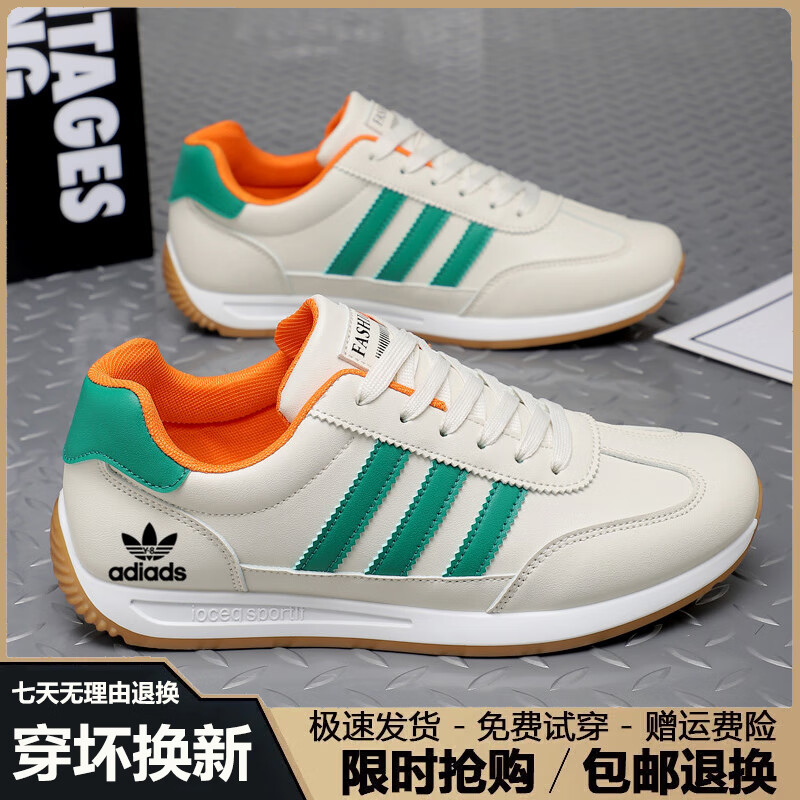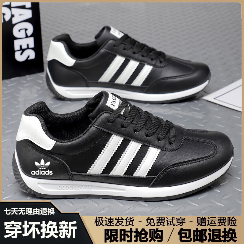 潮牌男鞋秋冬季2025新款潮流透气运动鞋男百搭软底休闲跑步鞋子男 AD662米兰【皮面】 41