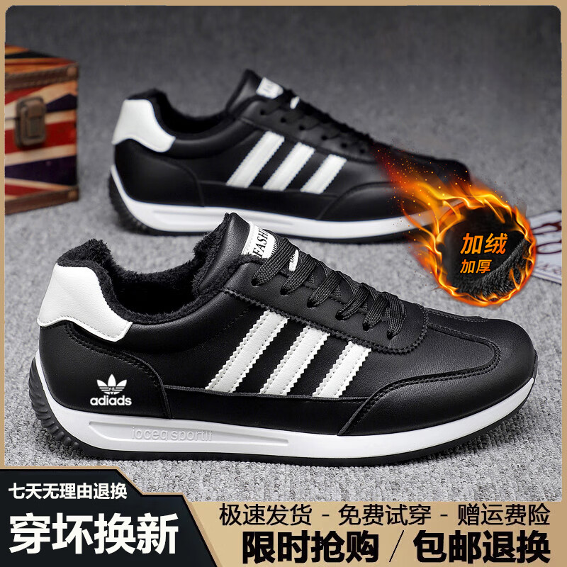 罗宾赐品牌轻奢男鞋2025秋冬新款防滑牛皮鞋子男跑步运动软底男士休闲鞋 黑色-【加绒保暖】-高端男鞋 41