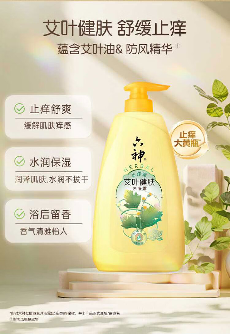 六神艾叶止痒沐浴露套装香氛沐浴持久留香清爽水润沐浴液生姜洗发水 艾叶滋润750g+生姜洗发水720ml