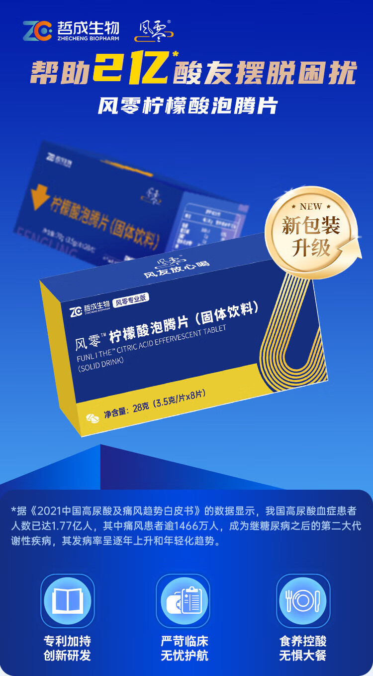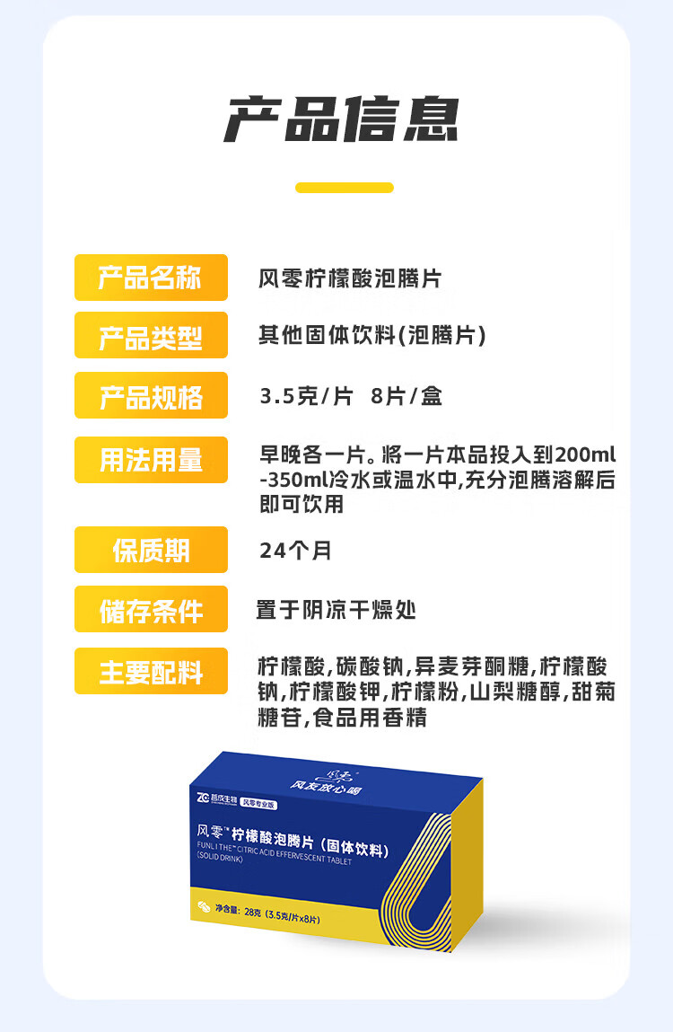 风零(FENGLING)柠檬酸泡腾片 枸橼酸泡腾片 固体饮料 国产 8片/盒