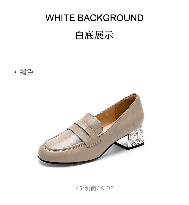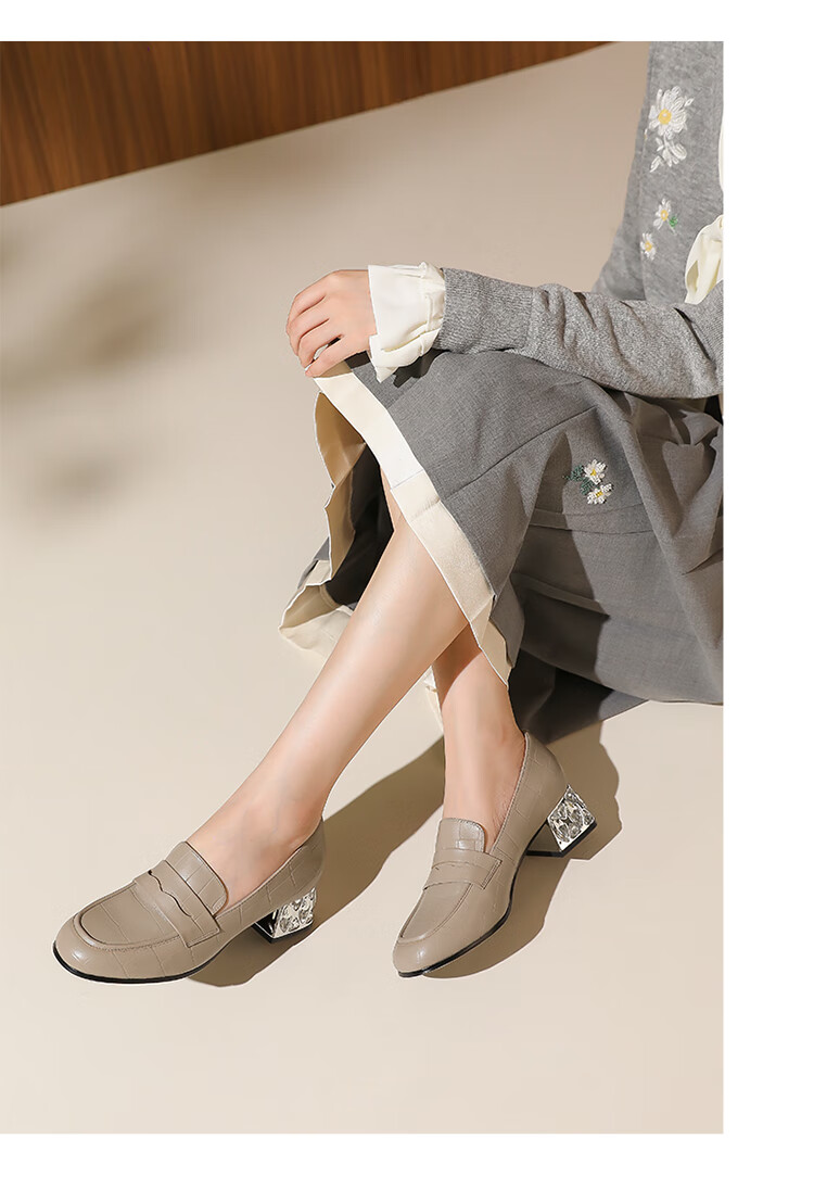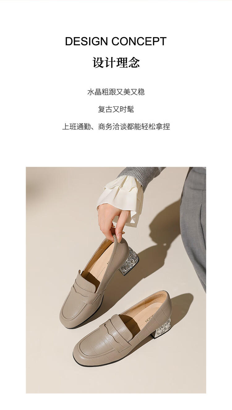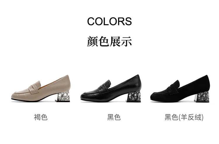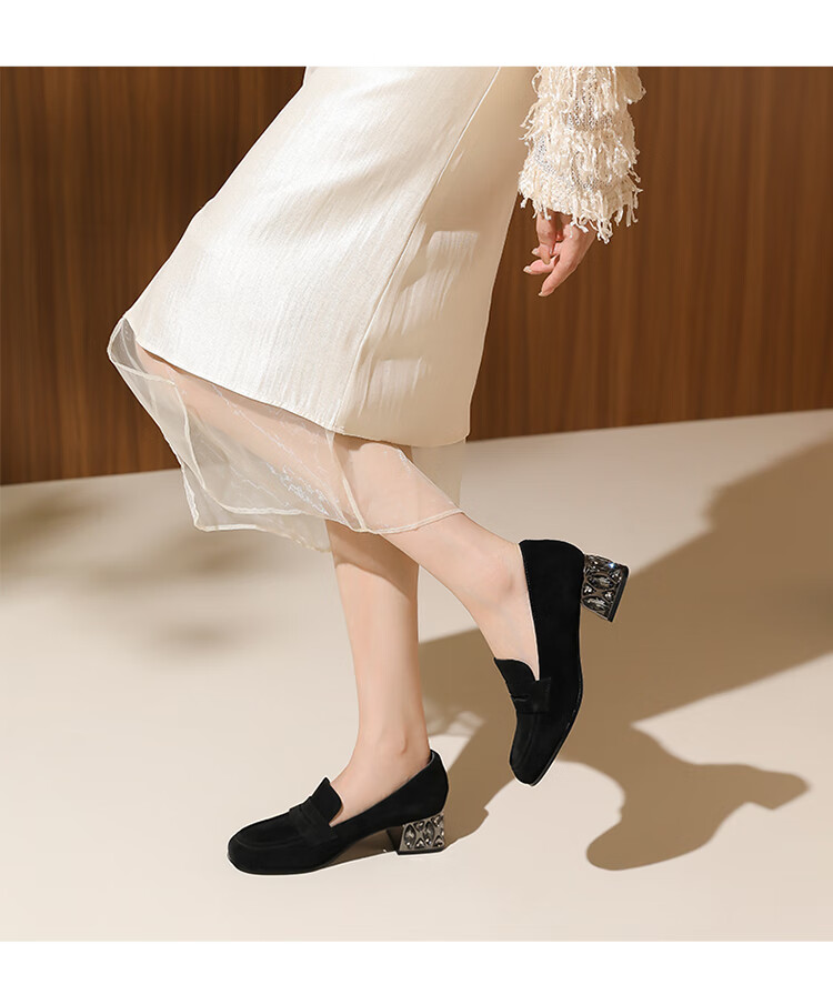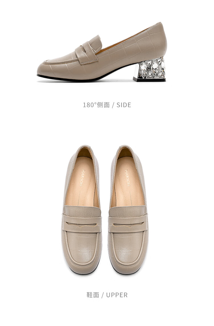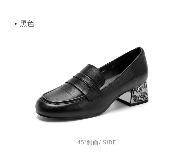 哈森(Harson)2025新款秋季休闲粗跟圆头乐福鞋商务通勤压花单鞋HL259019 黑色 羊反绒 36