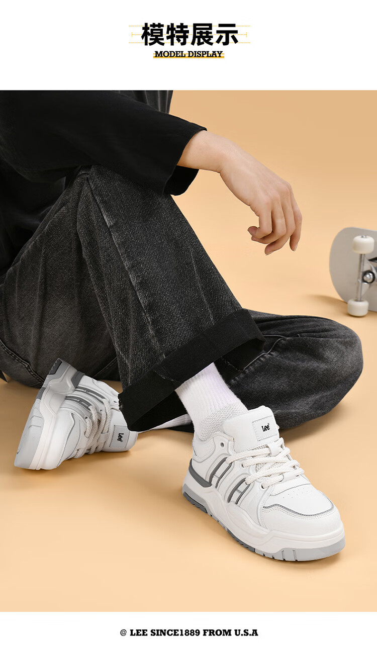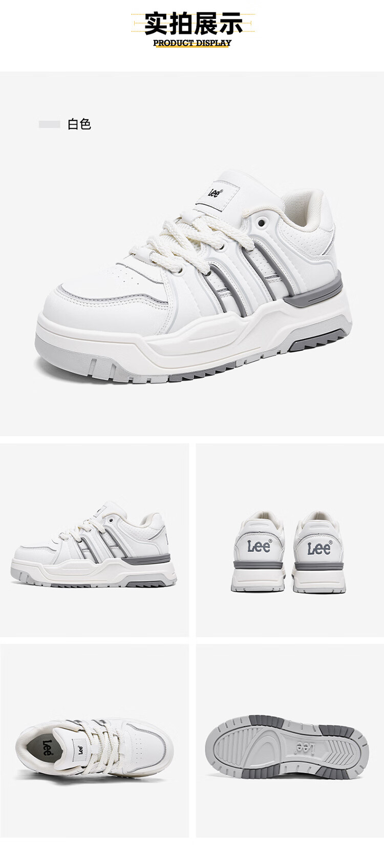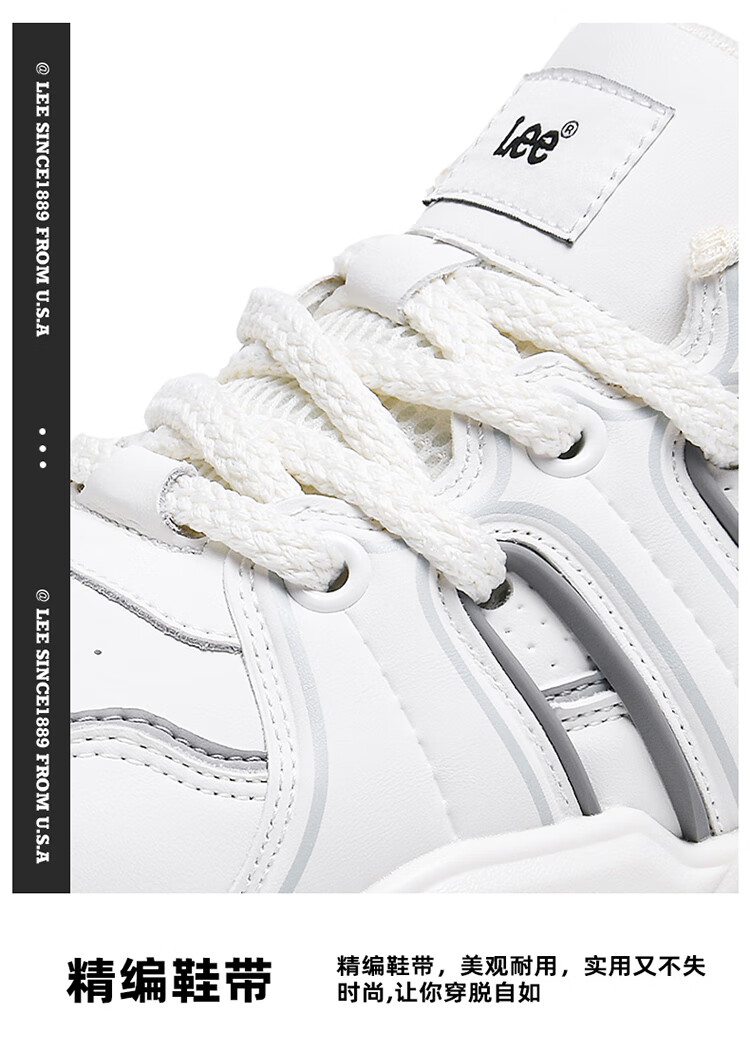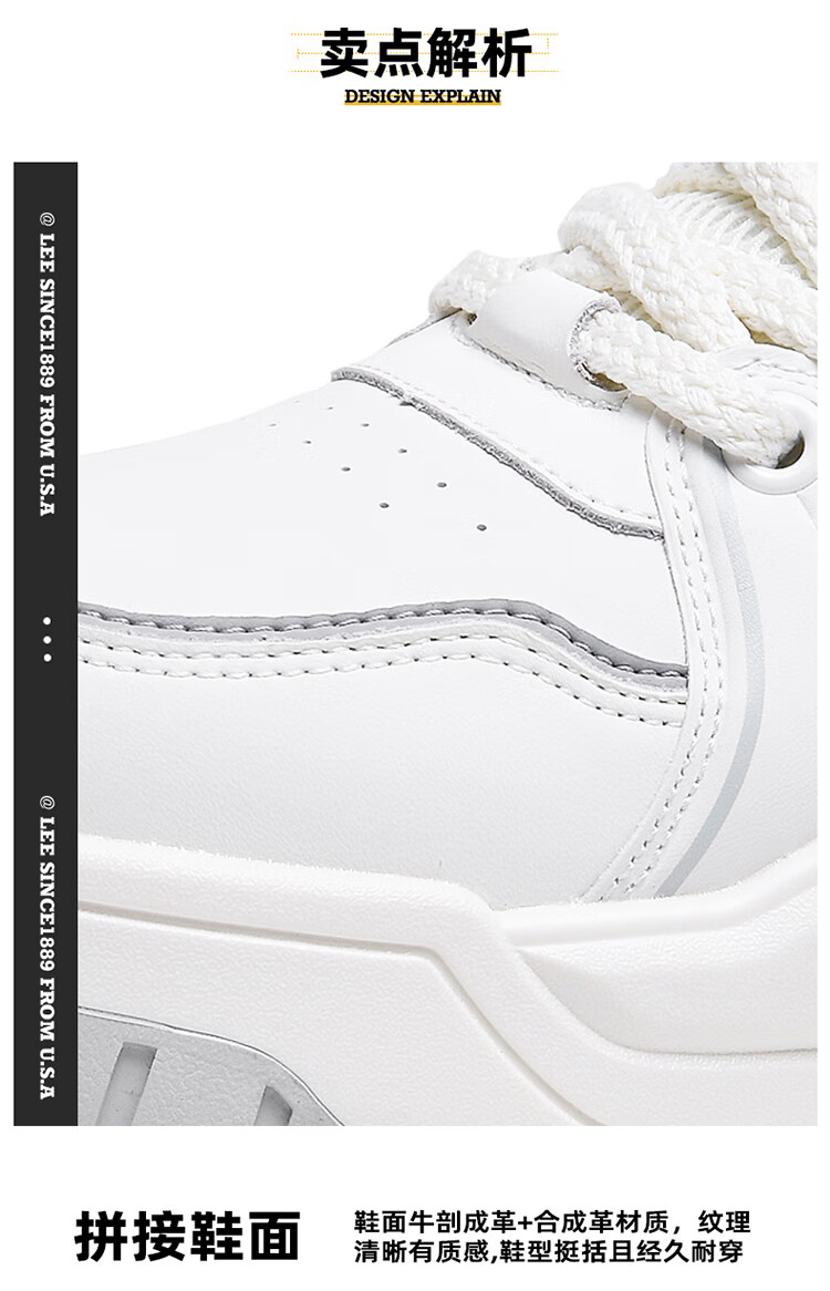 Lee男鞋秋季新款轻奢板鞋男时尚设计感潮流休闲鞋高端增高白色鞋子男 白色 42 【偏大/请拍小一码】