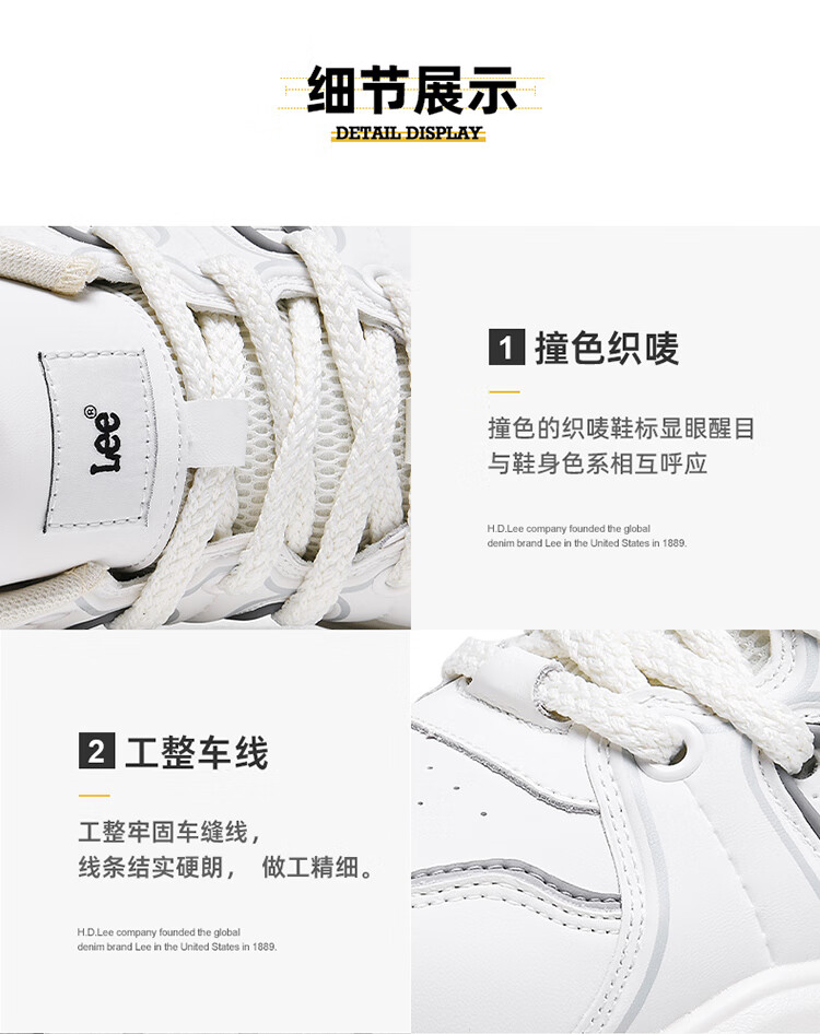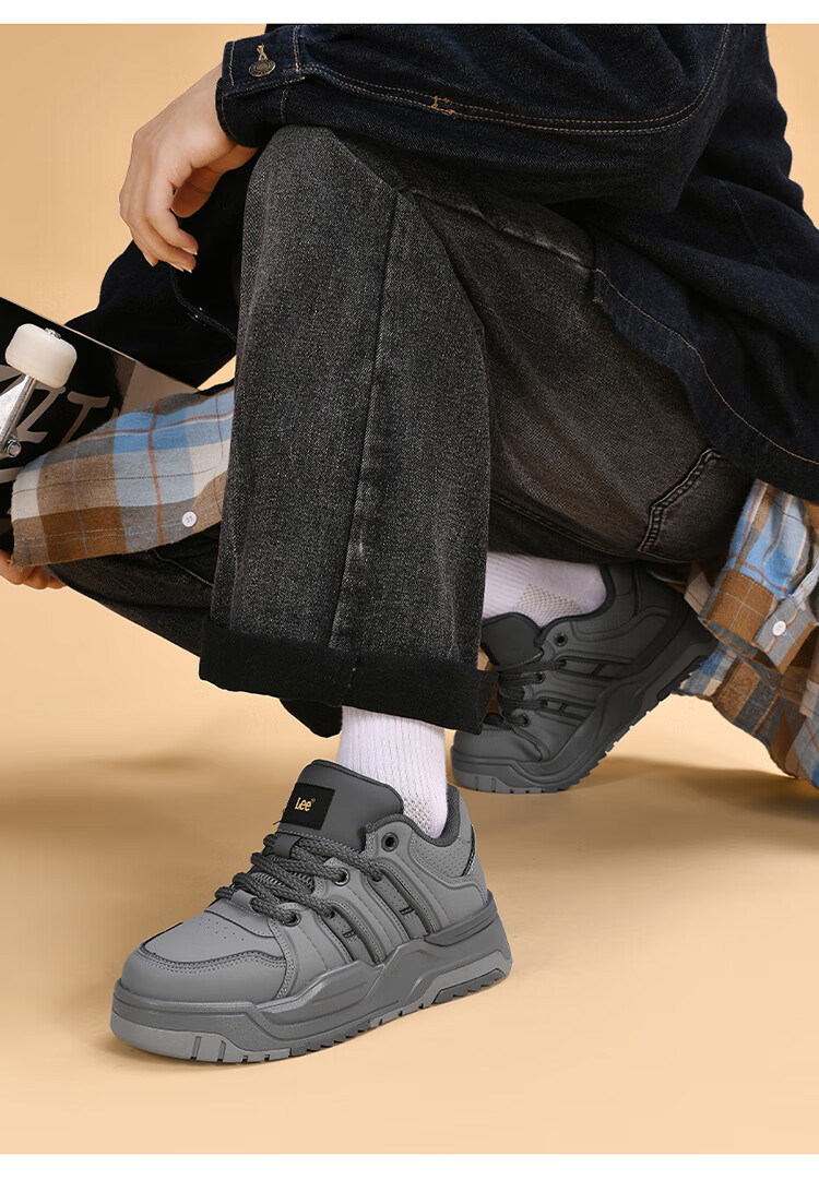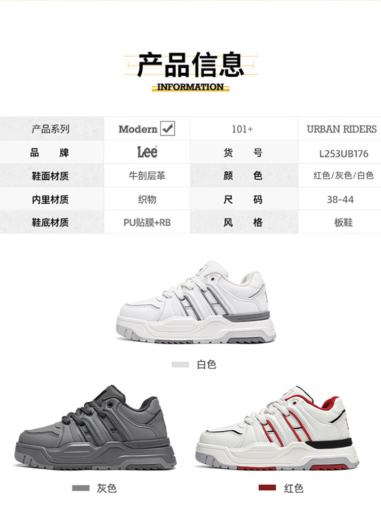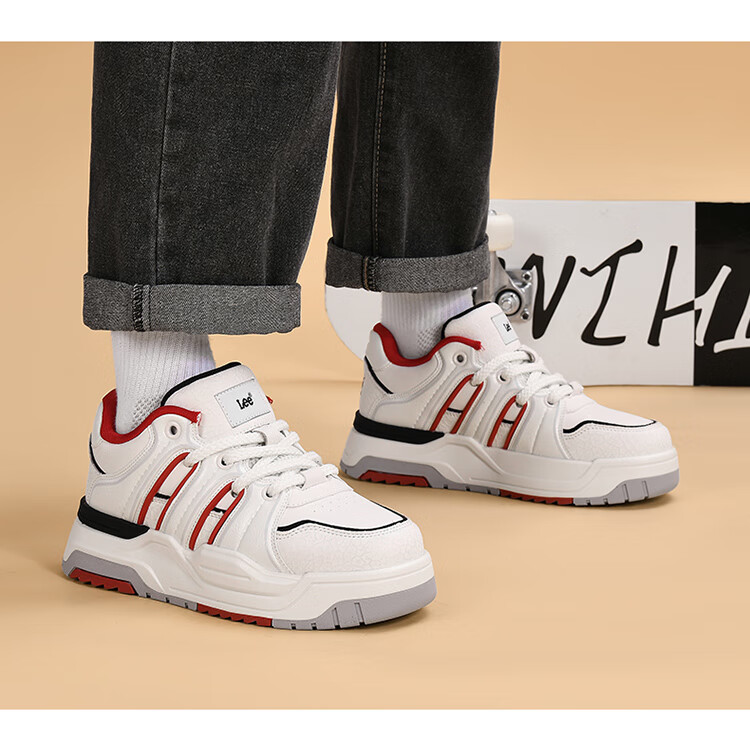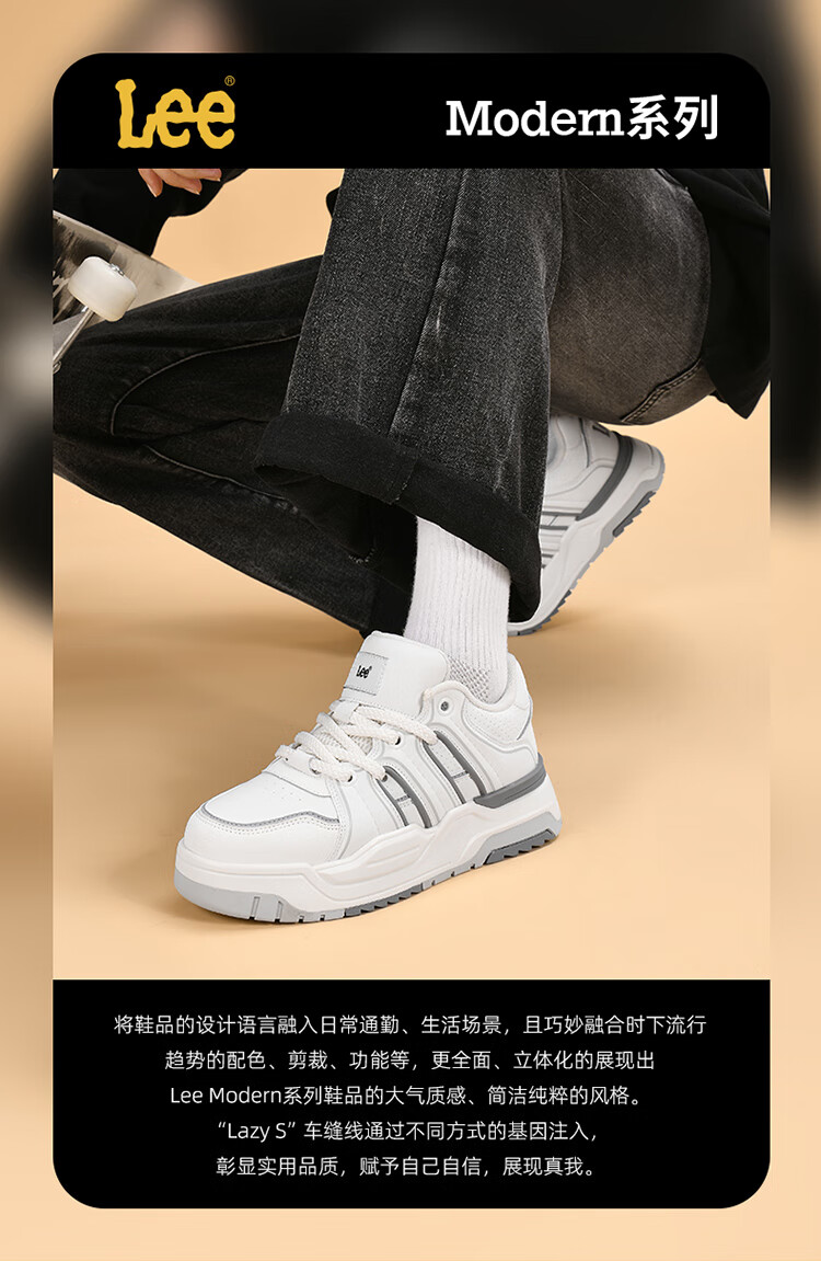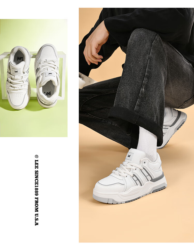 Lee男鞋秋季新款轻奢板鞋男时尚设计感潮流休闲鞋高端增高白色鞋子男 白色 42 【偏大/请拍小一码】