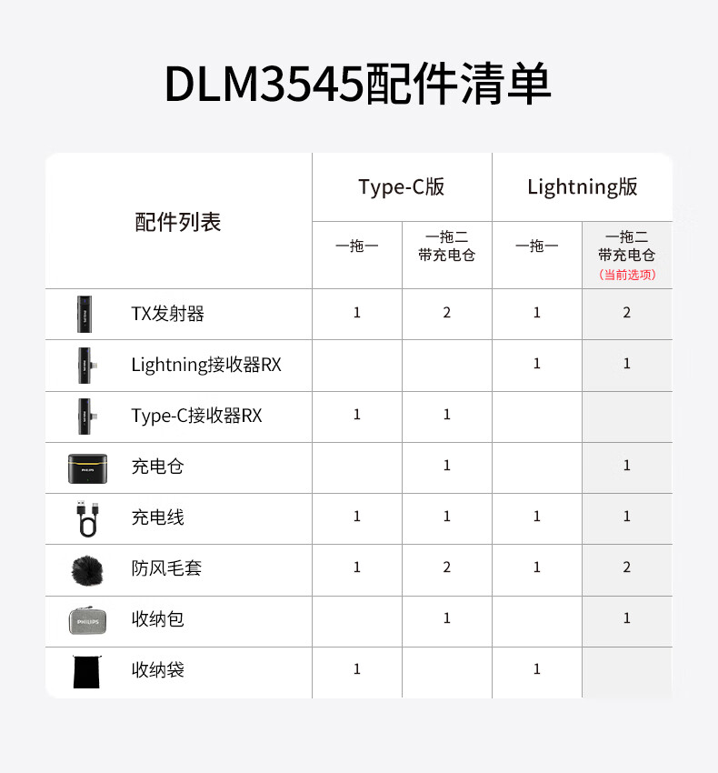 飞利浦(PHILIPS)【国家补贴】无线领夹麦克风一拖二直播收音麦vlog主播户外短视频采访直插式降噪话筒DLM3545V