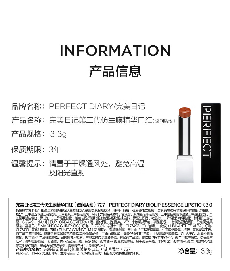 完美日记【张予曦同款】第三代仿生膜精华口红703淡唇纹亮唇色中秋礼物