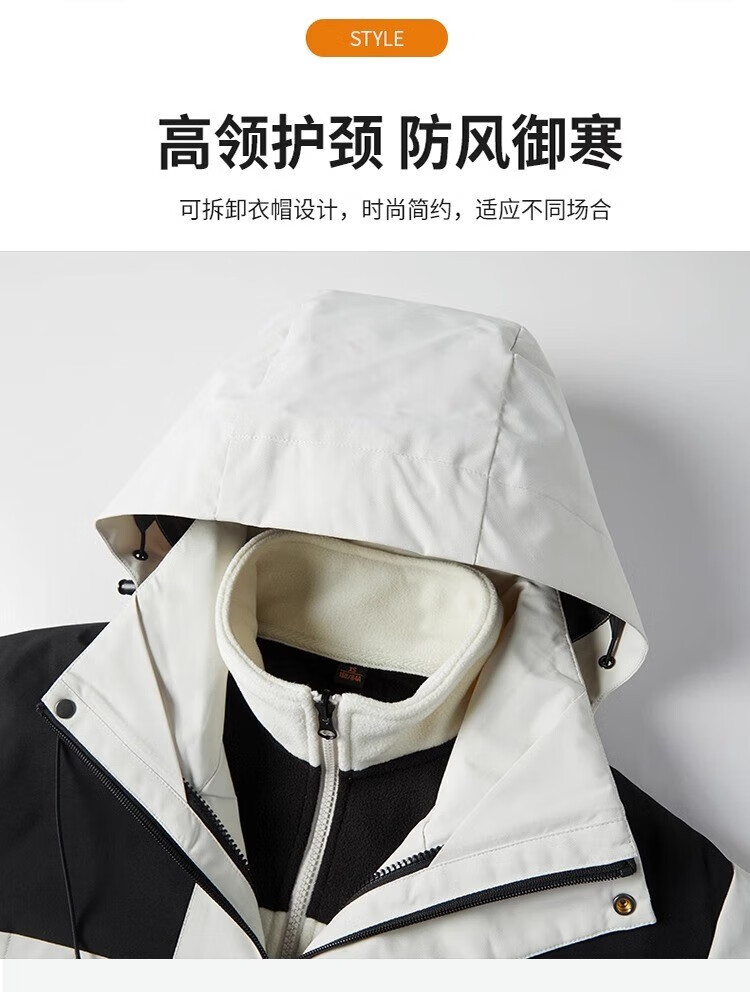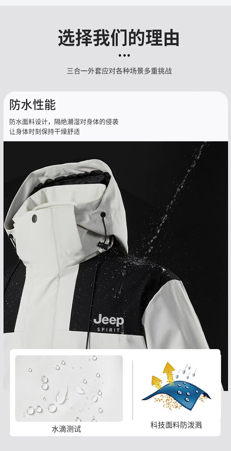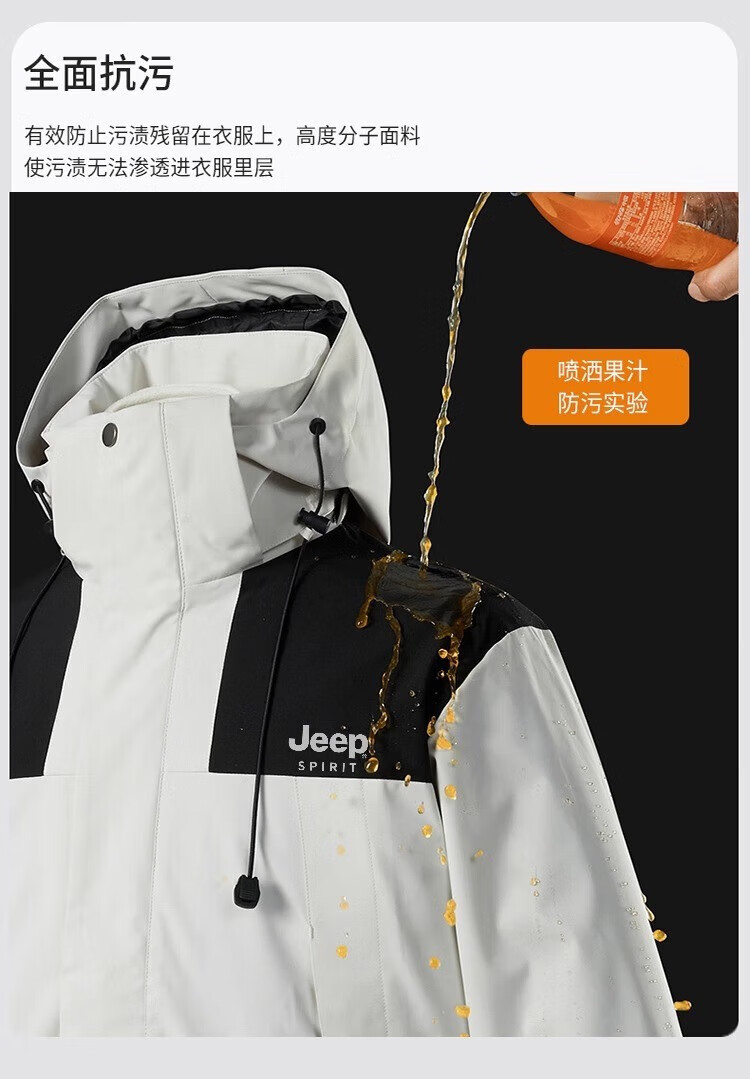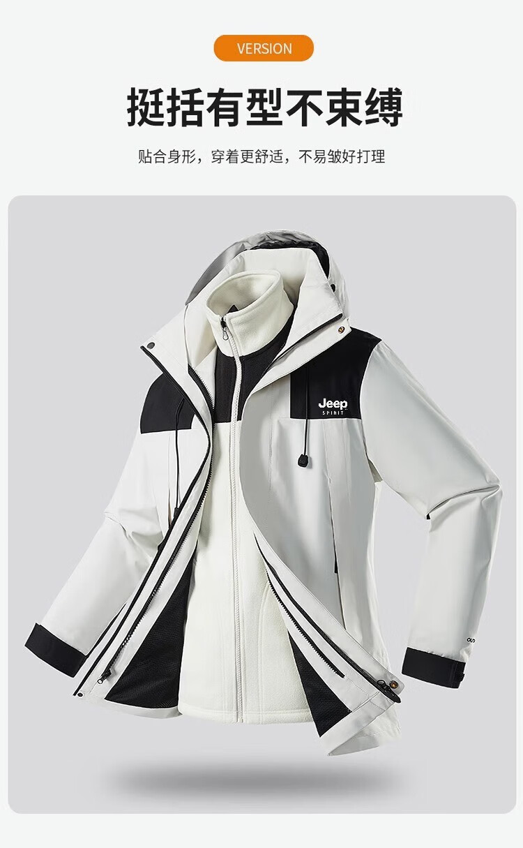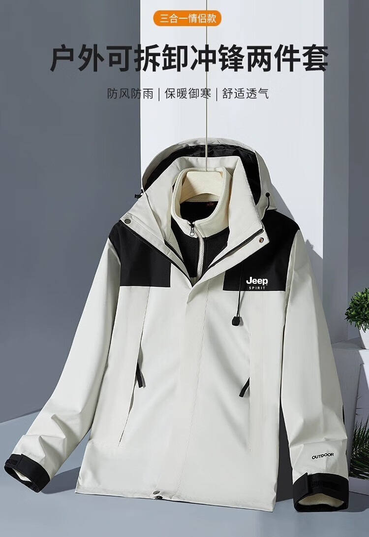 JEEP SPIRIT吉普冲锋衣男春秋夹克冬季外套三合一防风连帽登山服 象牙白 XXS