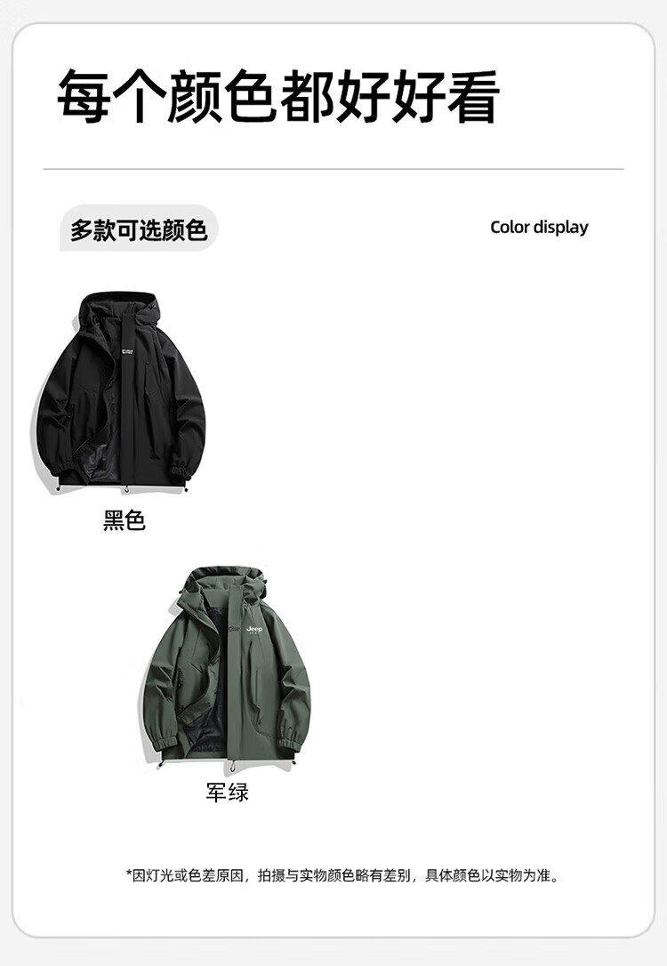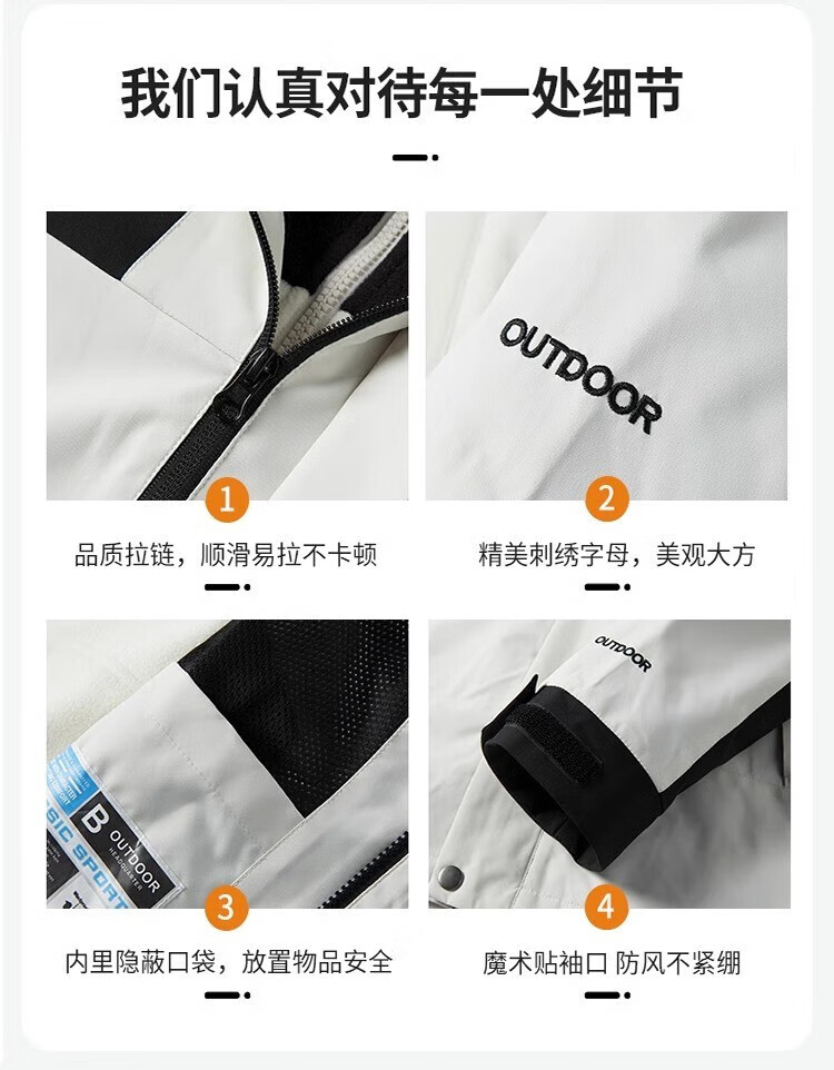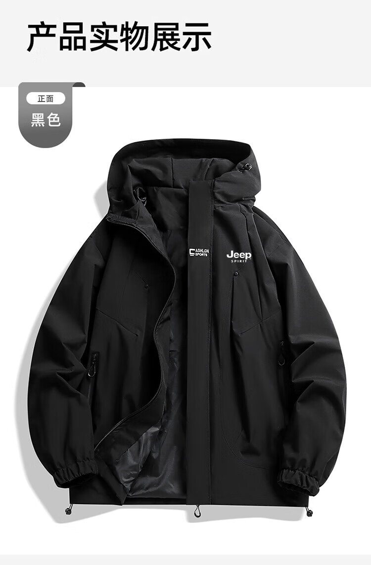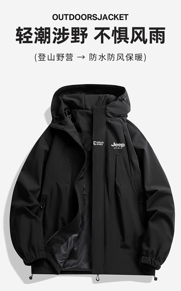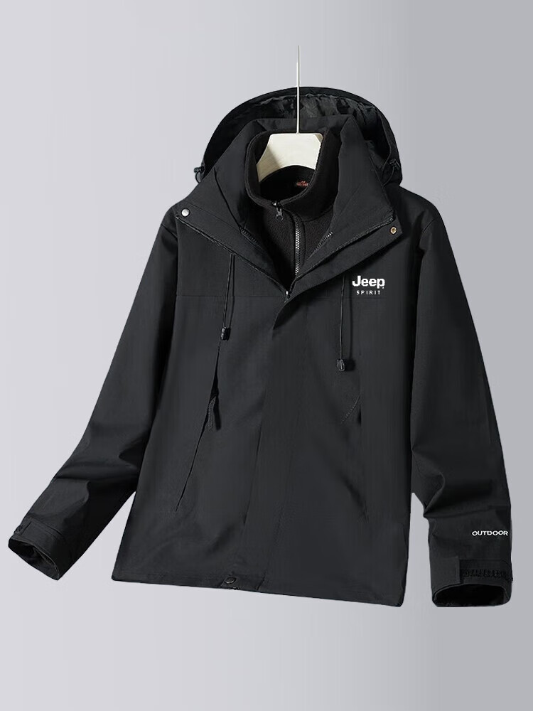 JEEP SPIRIT吉普冲锋衣男春秋夹克冬季外套三合一防风连帽登山服 象牙白 XXS
