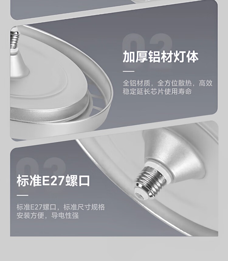 振牛led防水工矿灯e27螺口超亮工厂仓库厂房车间工业三防飞碟照明灯 【螺口款】新升级-50W 铝材一体密封+足瓦高亮+三防设计
