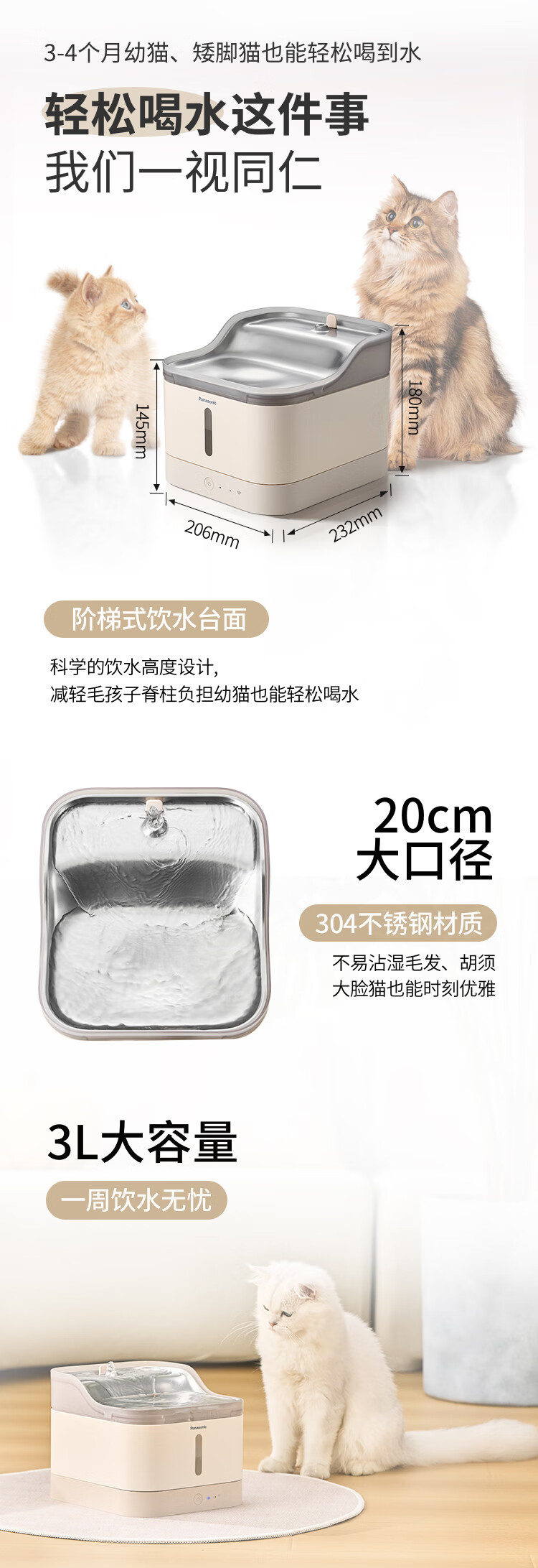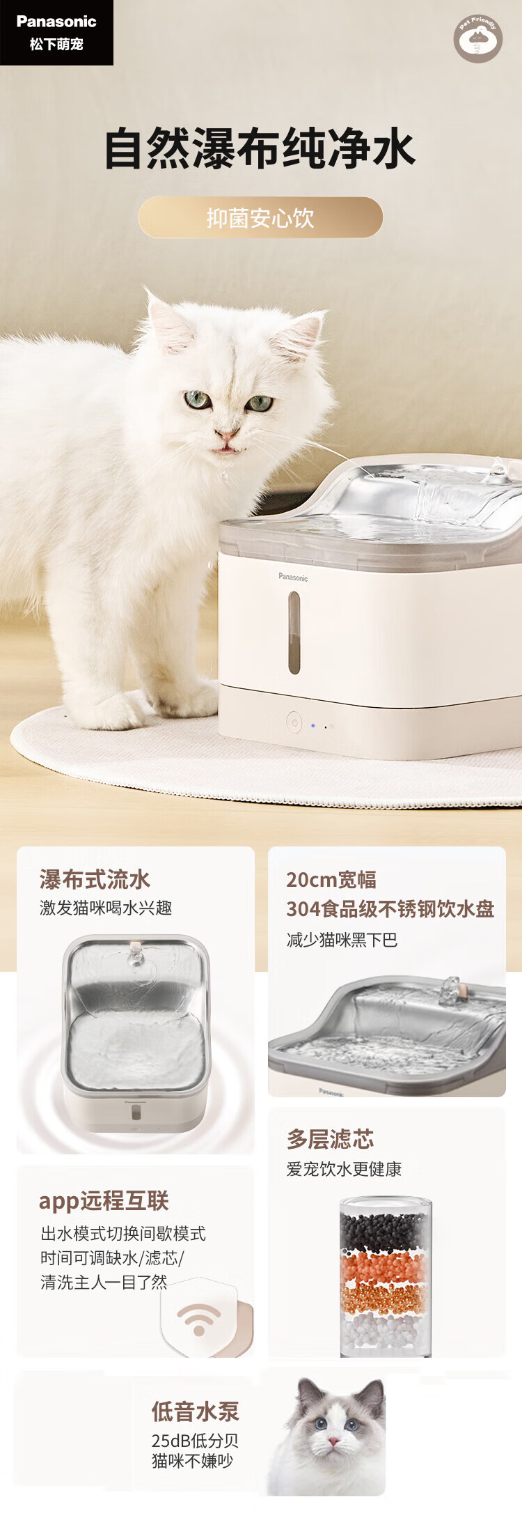 Panasonic松下宠物抑菌饮水机猫咪饮水机自动循环 猫咪喂水机【小笑脸】