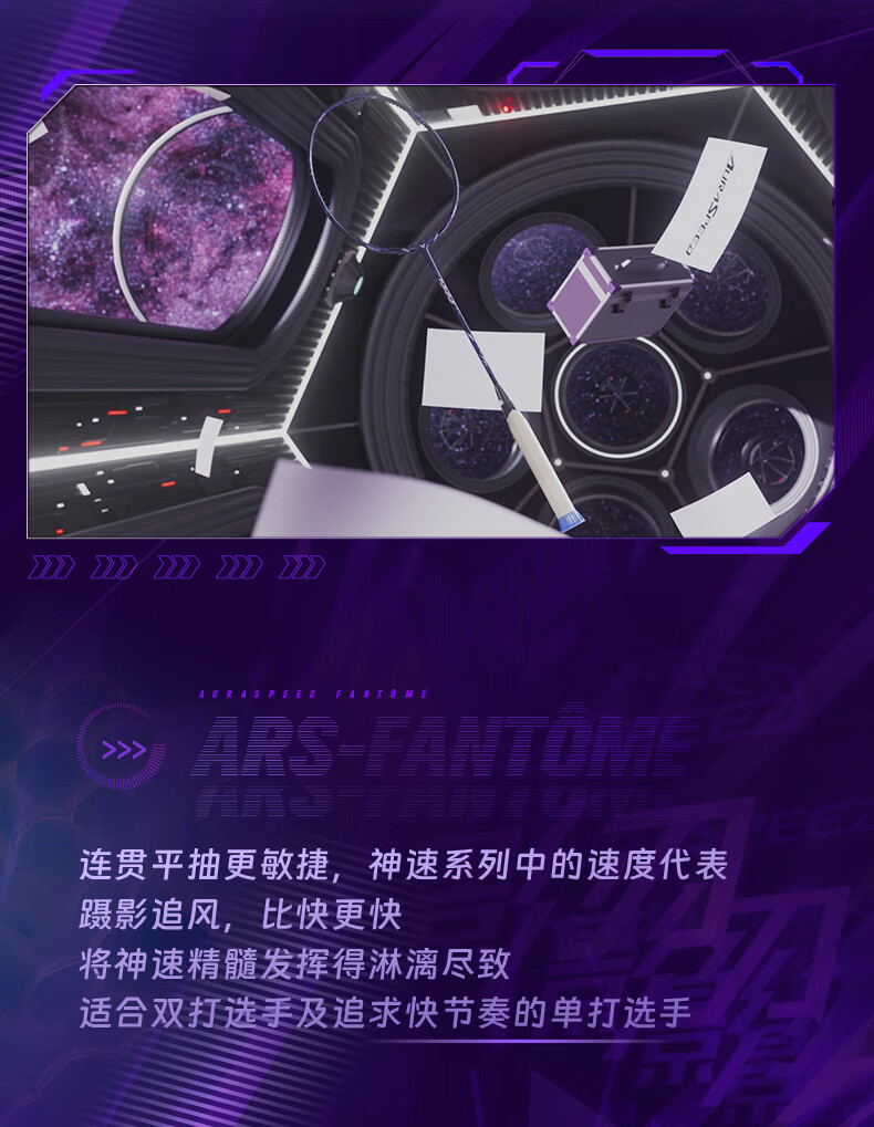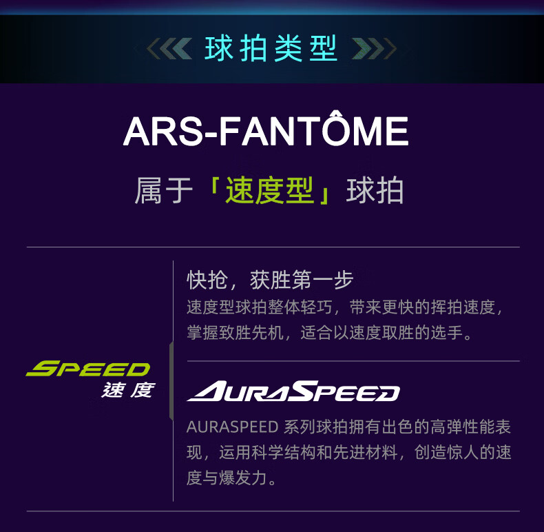 威克多(VICTOR)胜利专业羽毛球拍超轻碳素纤维速度进攻单拍神速影刃ARS-FANTOME 玄紫4U