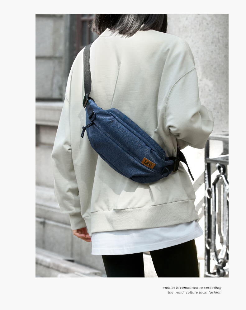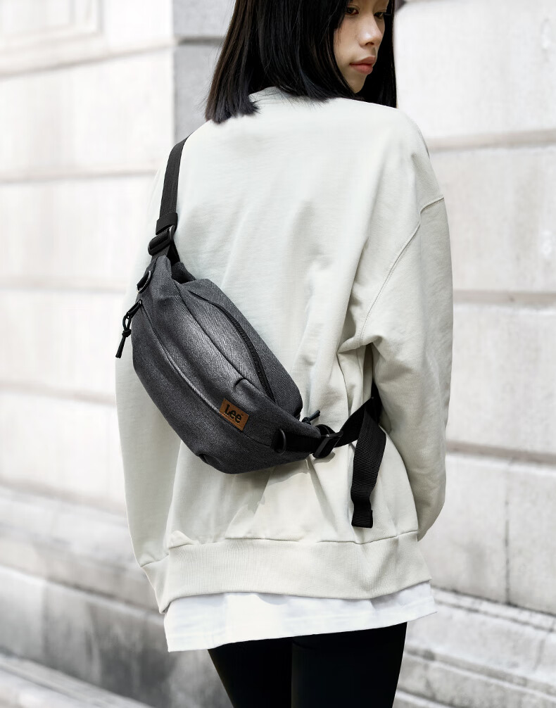 Lee运动胸包男2025新款斜挎包时尚简约单肩包通勤小背包女 黑色
