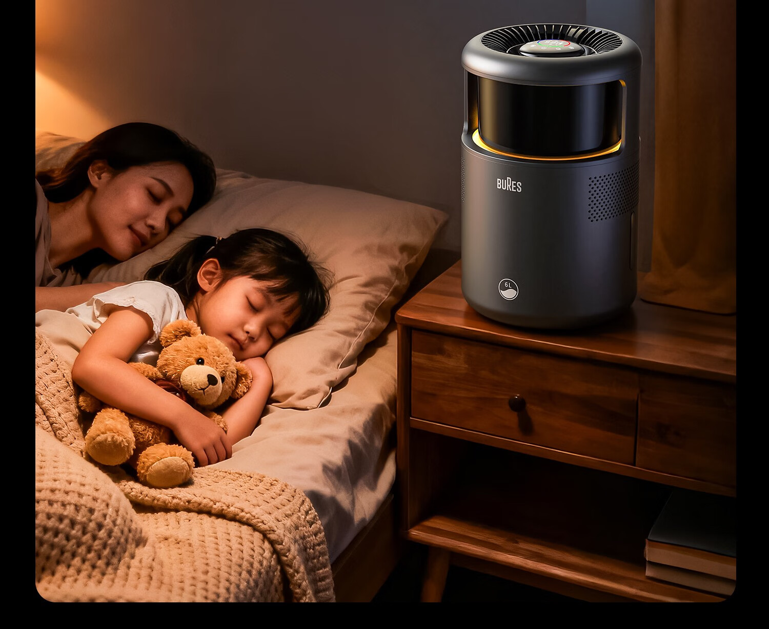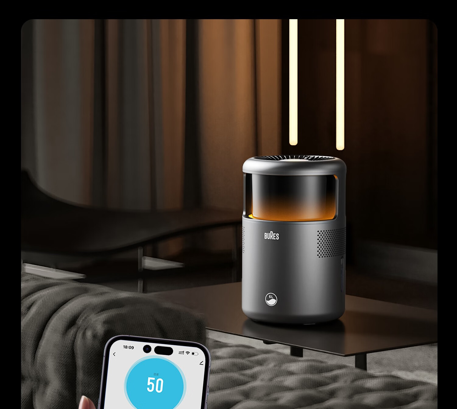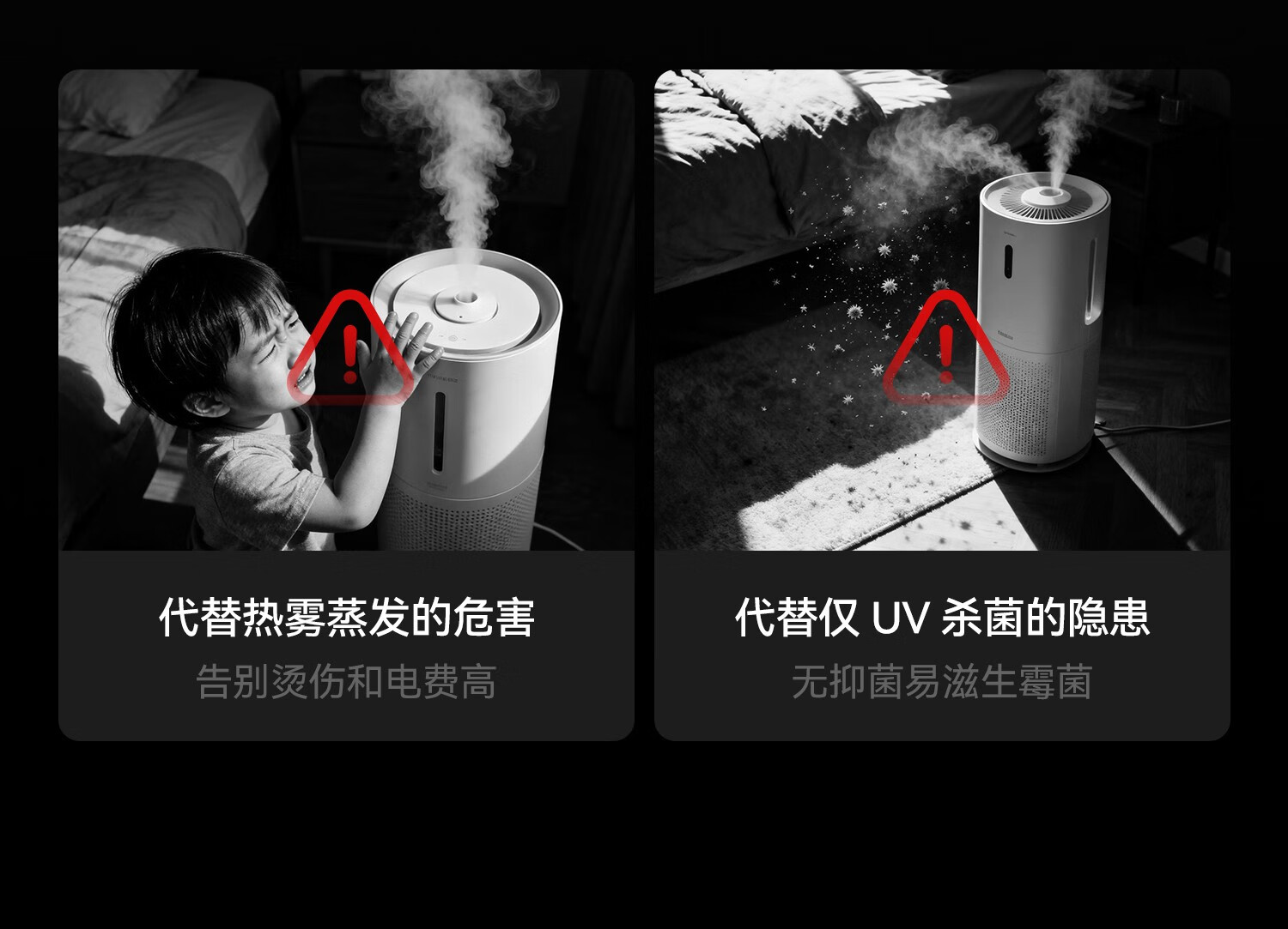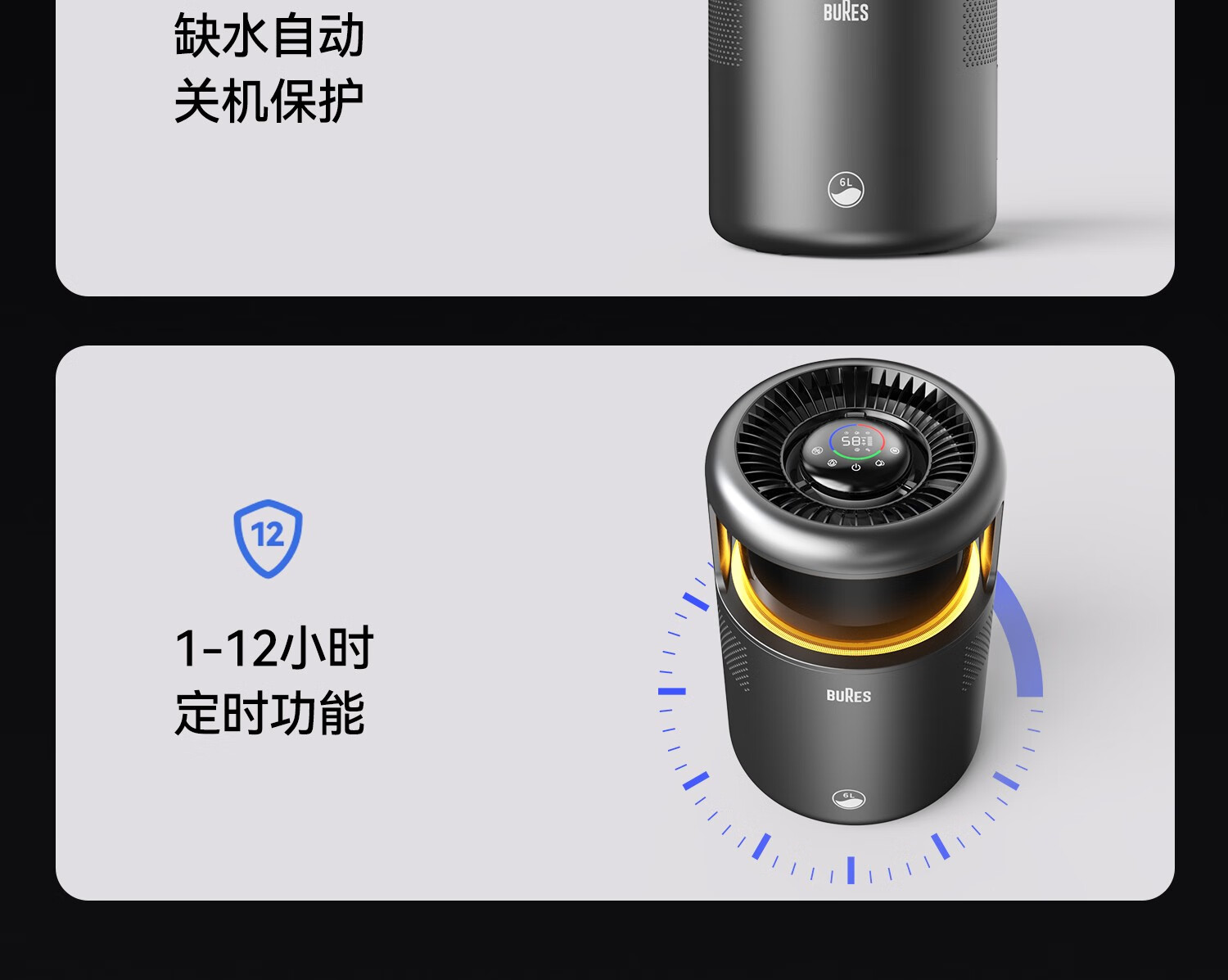 bures百而思无雾加湿器家用卧室母婴幼儿大容量静音除菌鼻炎适用客厅办公大面积台面两用空气净化一体机 【AI智能杀菌】-App控制版-灰色
