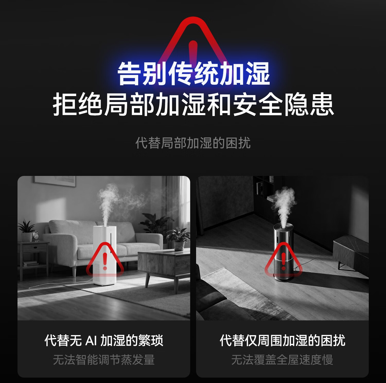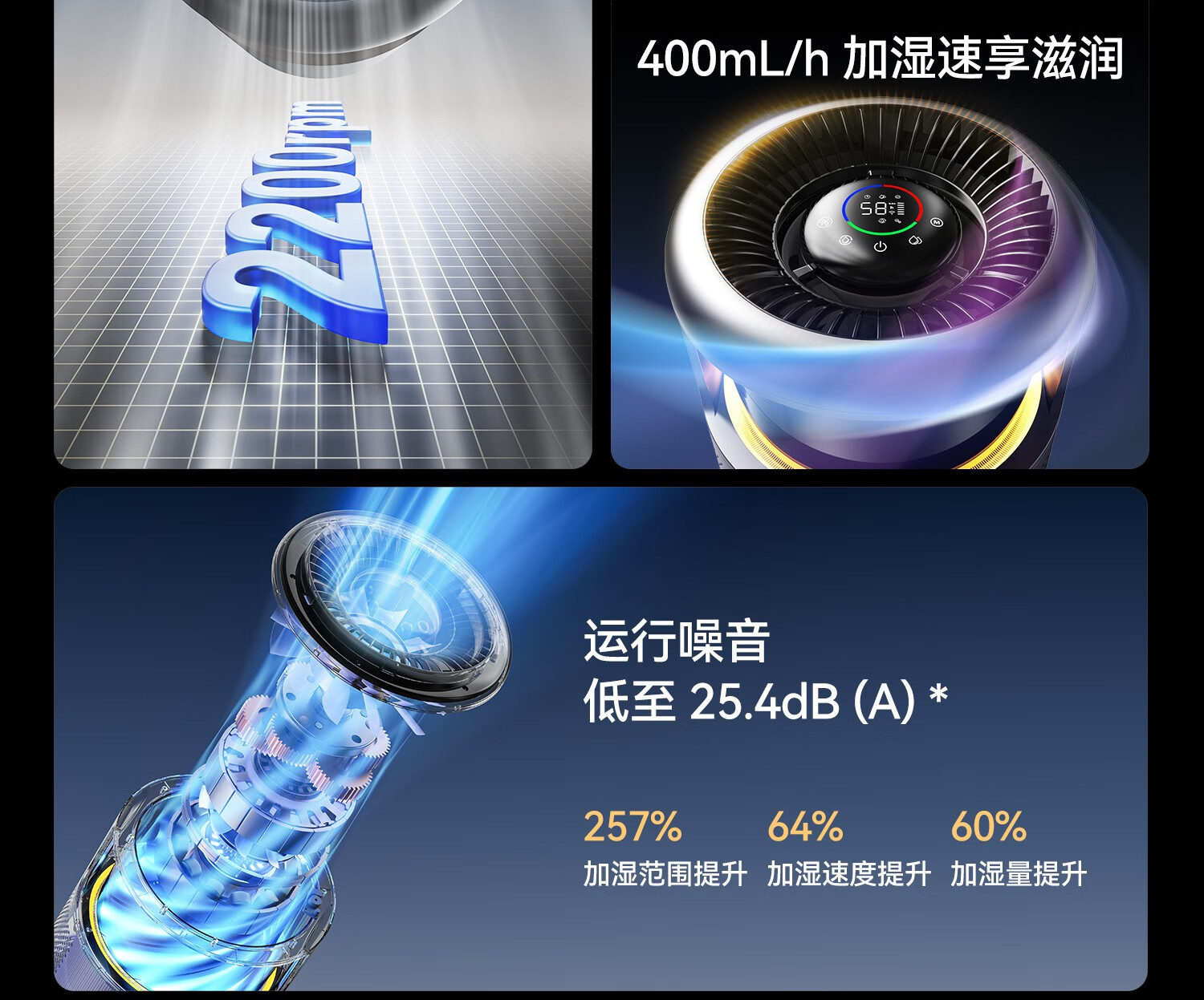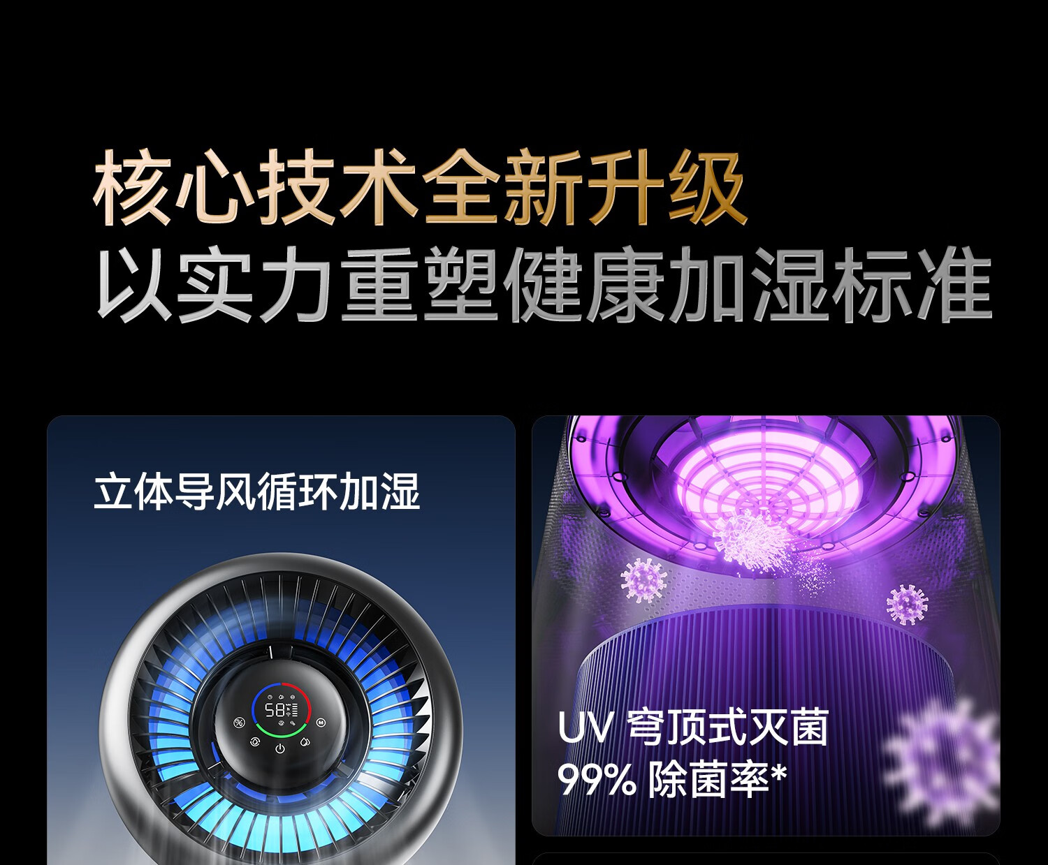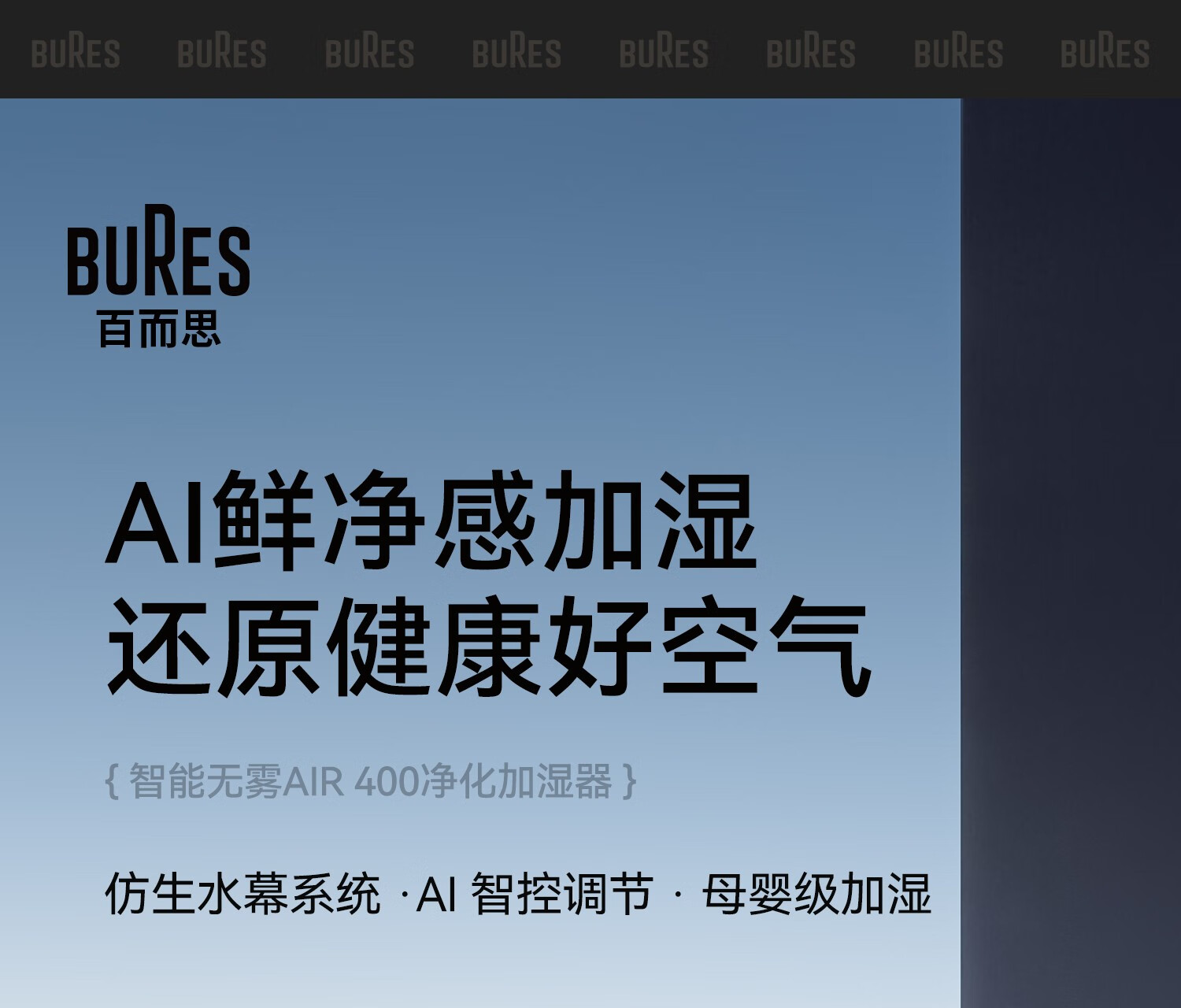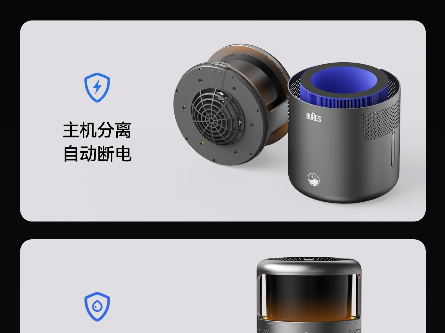 bures百而思无雾加湿器家用卧室母婴幼儿大容量静音除菌鼻炎适用客厅办公大面积台面两用空气净化一体机 【AI智能杀菌】-App控制版-灰色