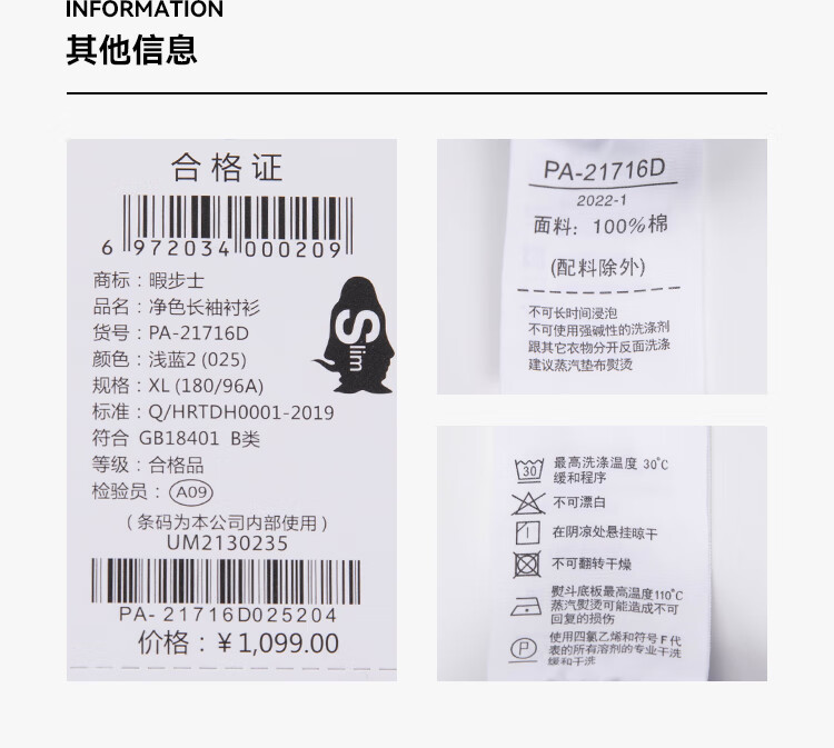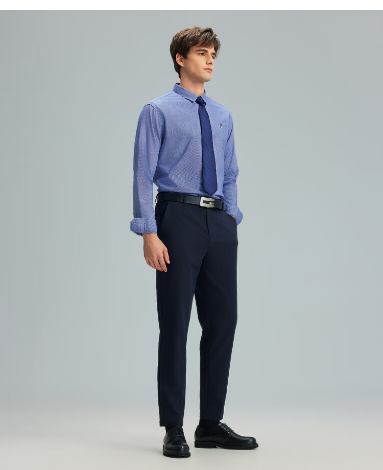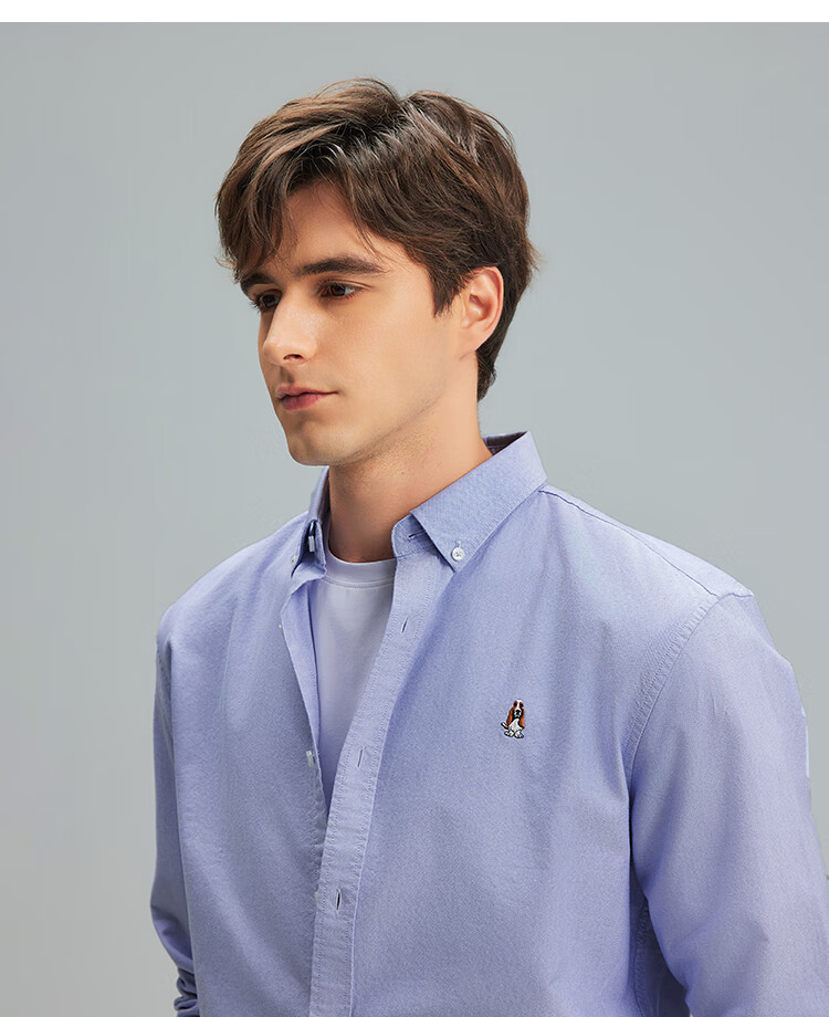 暇步士(Hush Puppies)男装秋纯色刺绣休闲长袖衬衫 025浅蓝2 XL