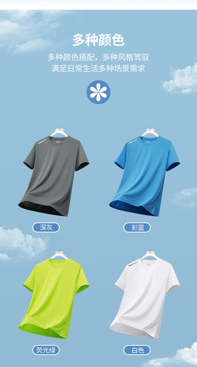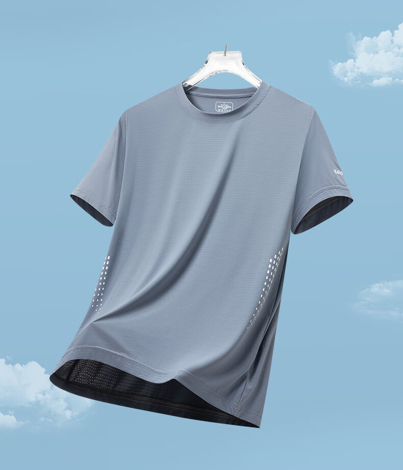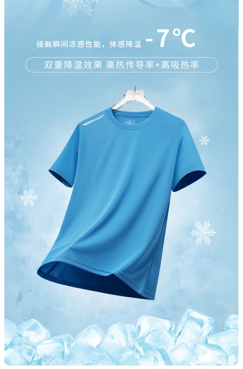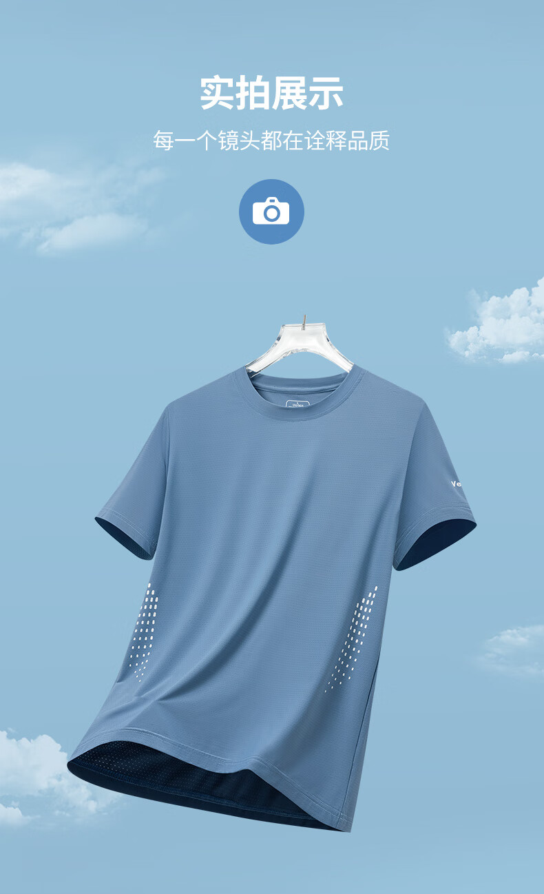 凡客诚品男子夏季新款跑步训练健身半袖运动透气短袖男装上衣男 蓝色 L