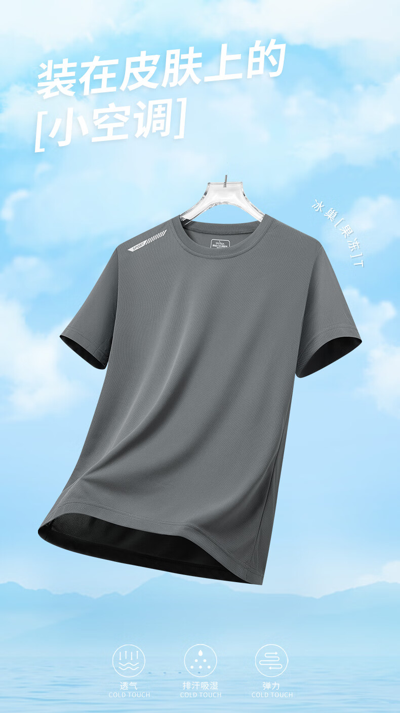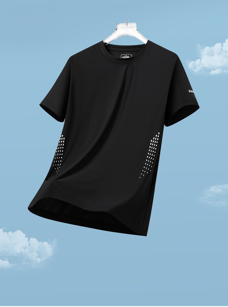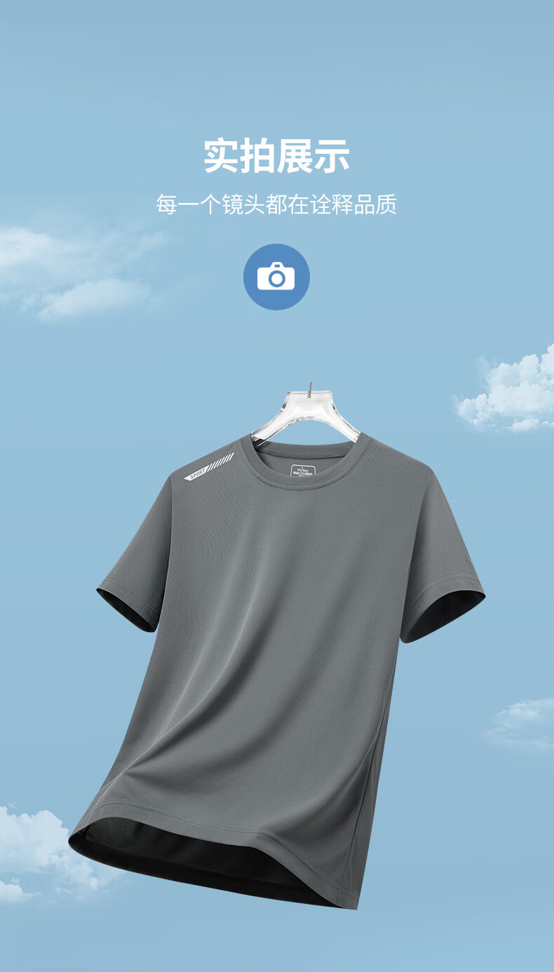 凡客诚品男子夏季新款跑步训练健身半袖运动透气短袖男装上衣男 蓝色 L