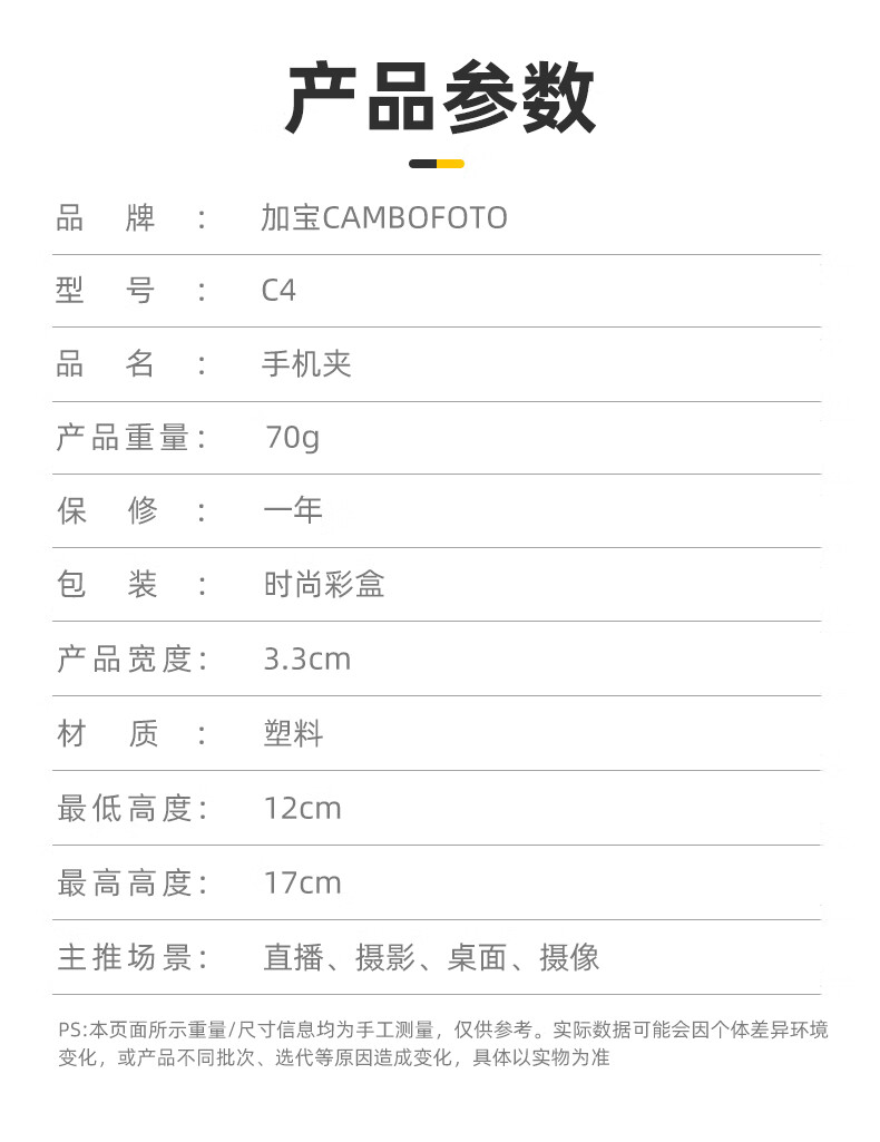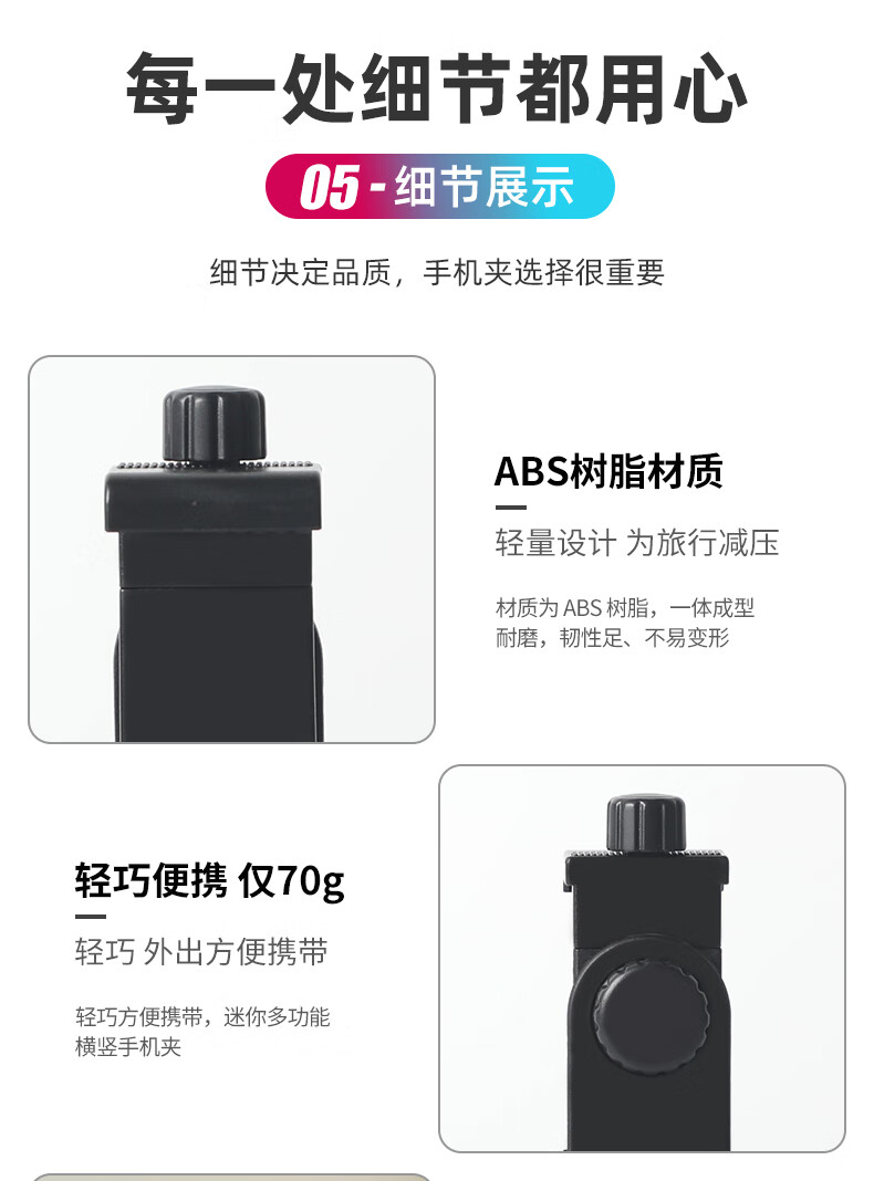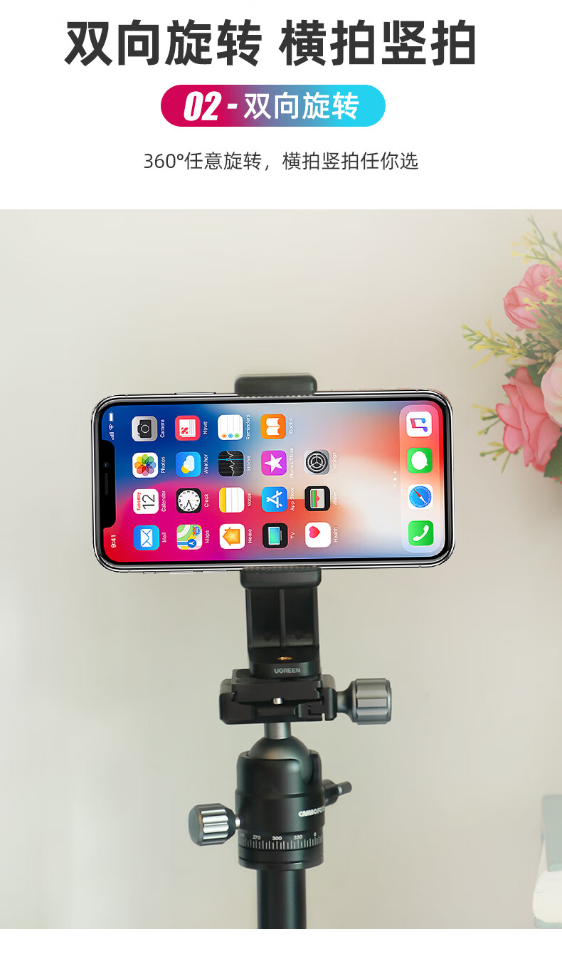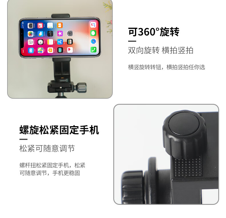 加宝【优选百货】360°旋转手机夹自拍杆夹头横竖拍手机支架1/4螺丝孔夹座 黑色套装