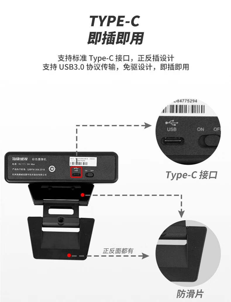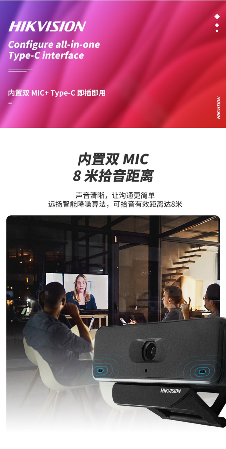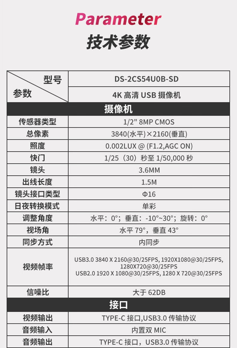 海康威视(HIKVISION)视频会议摄像头 USB电脑直播网课800万超清摄像机会议室无线蓝牙全向麦克风钉钉腾讯会议系统设备 4K 【800万超清】DS-2CS54U0B-SD