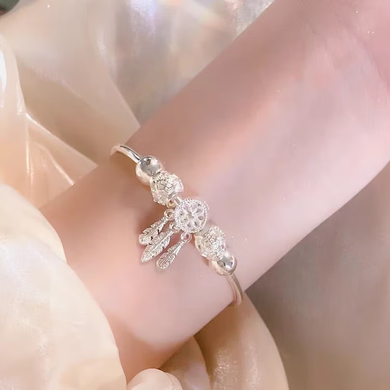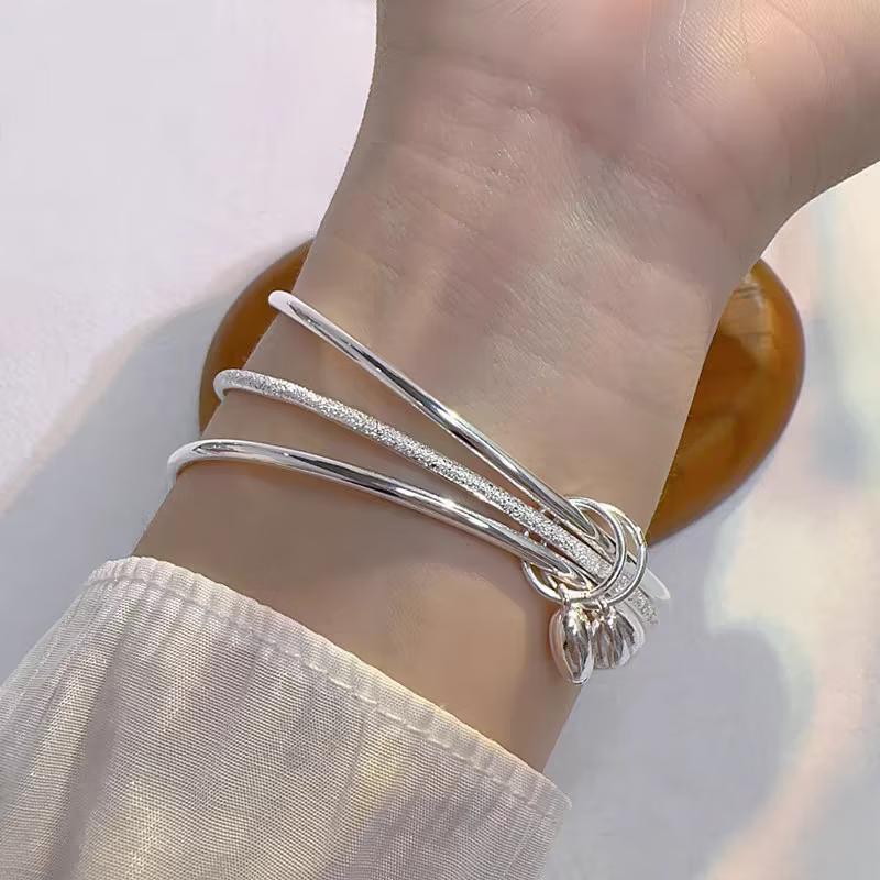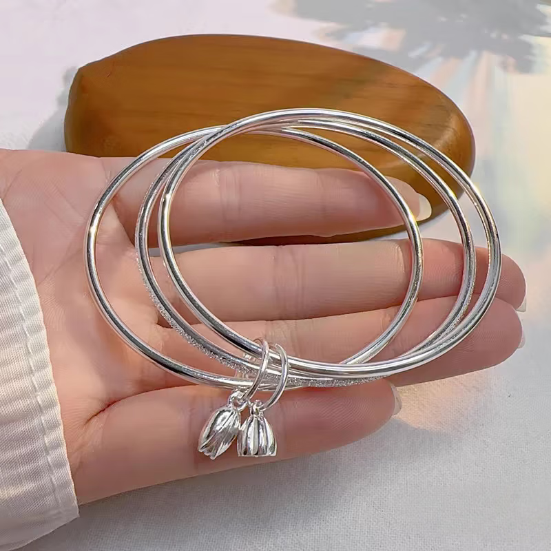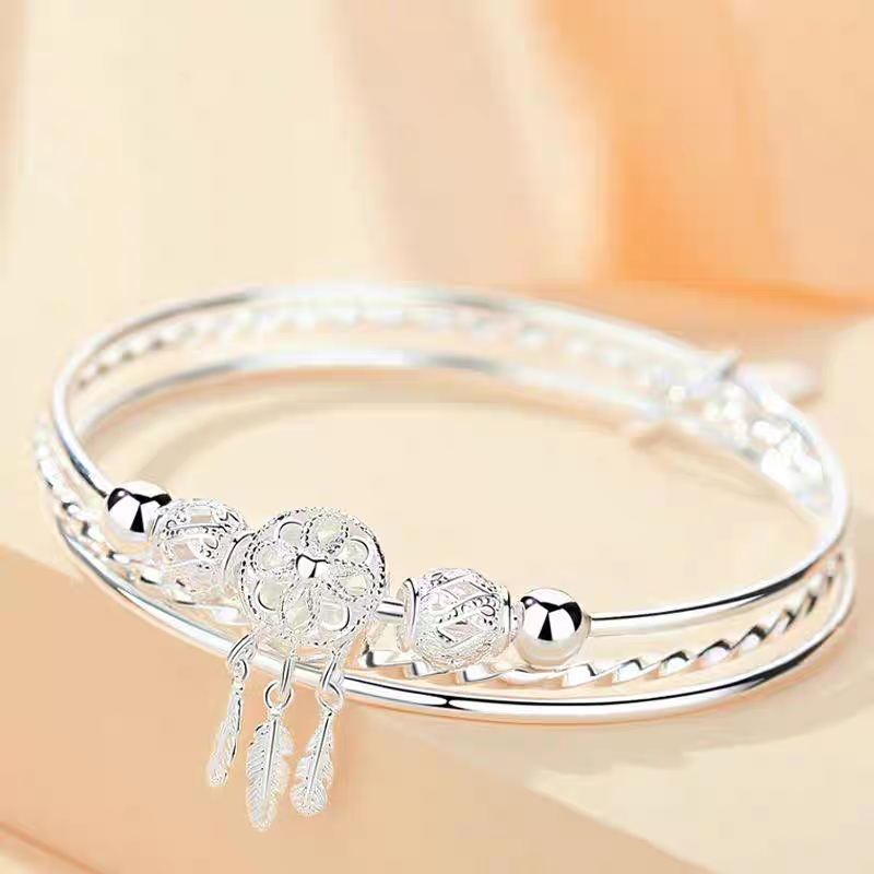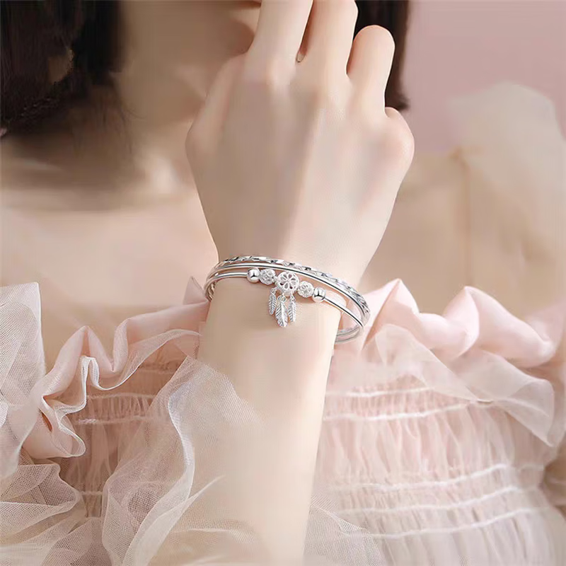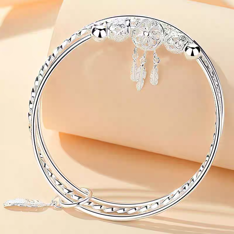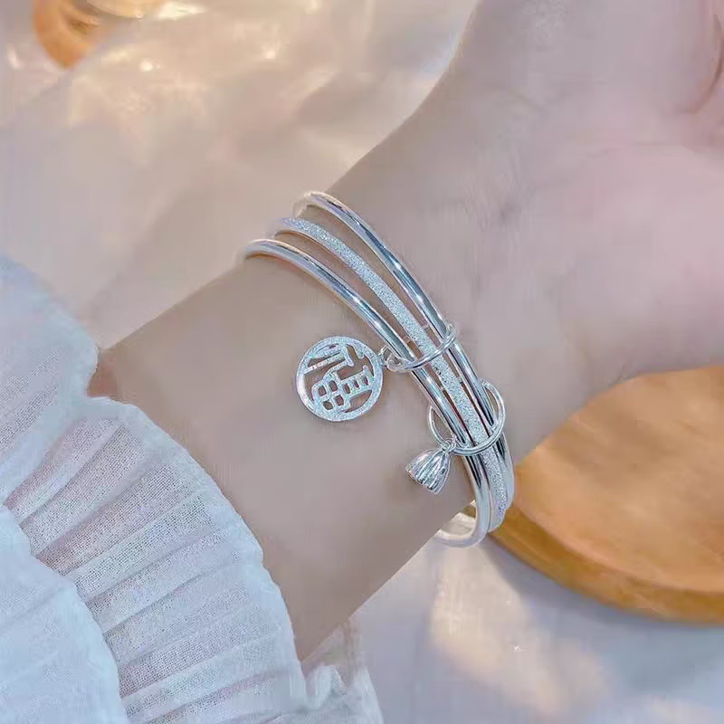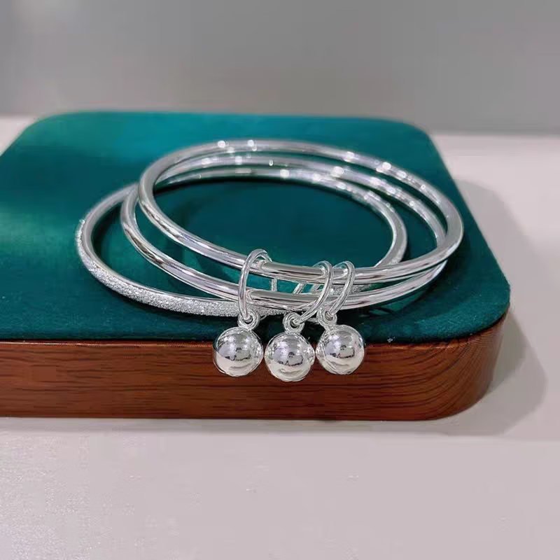 古曼玲S925银ins百搭极简手镯女感小众素圈开口圆珠手环新款手镯手饰镯 BAS3221【银色】 925银