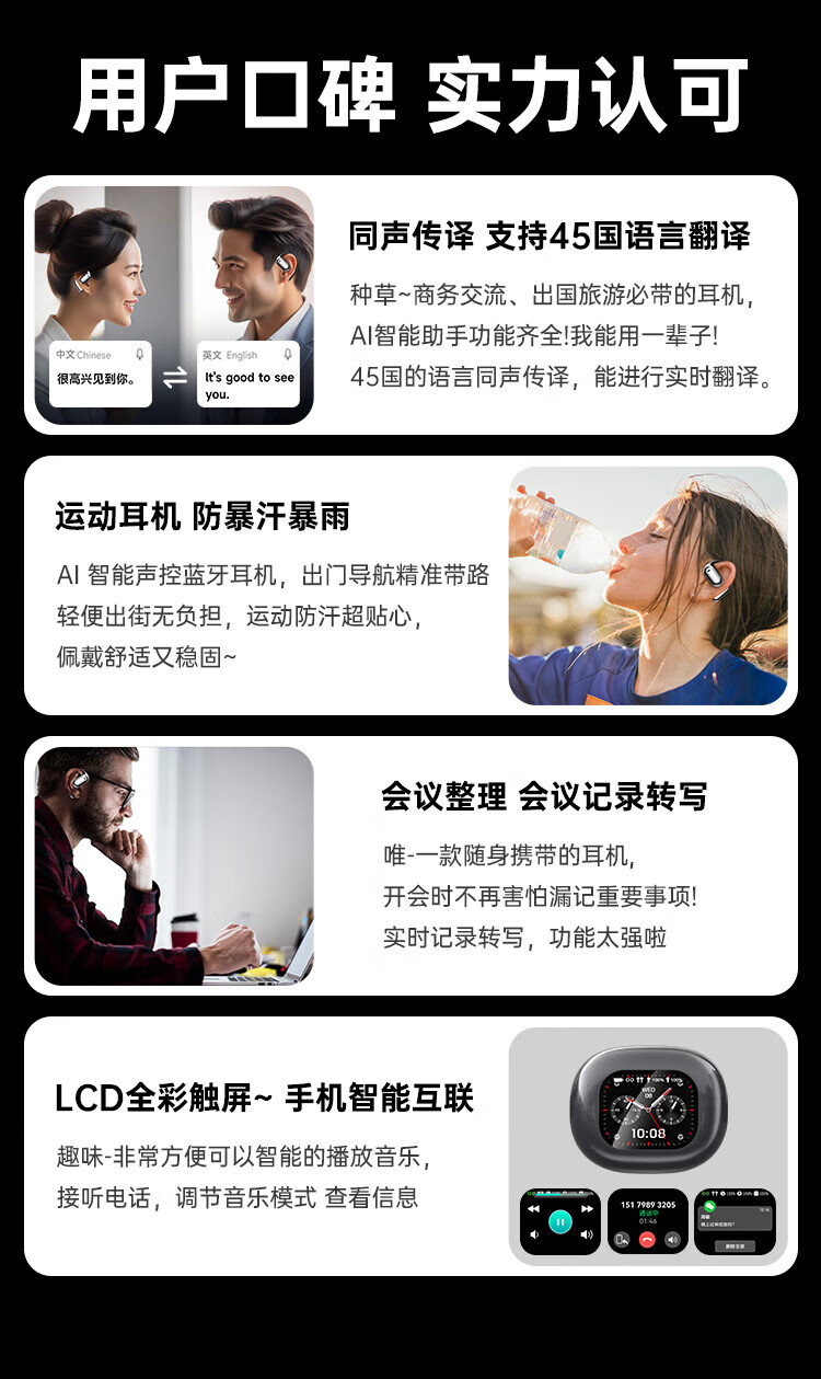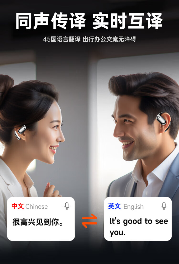 炽垚【柏林之声 | 同声传译】多功能蓝牙耳机挂耳式2025最新款超长续航降噪Ai翻译神器留学旅游学习 金牌舒适 翻译版 【同声传译 | 永久免费】