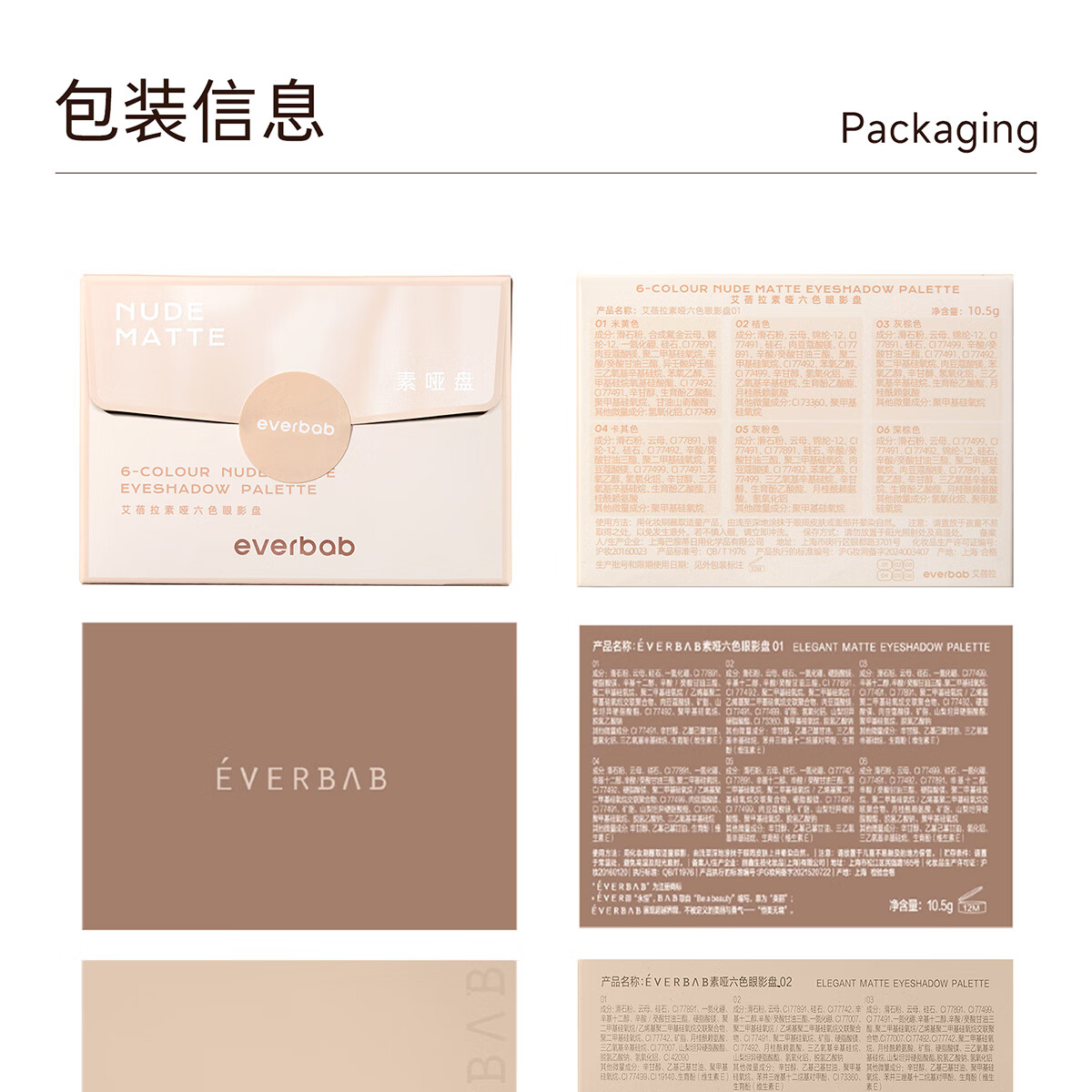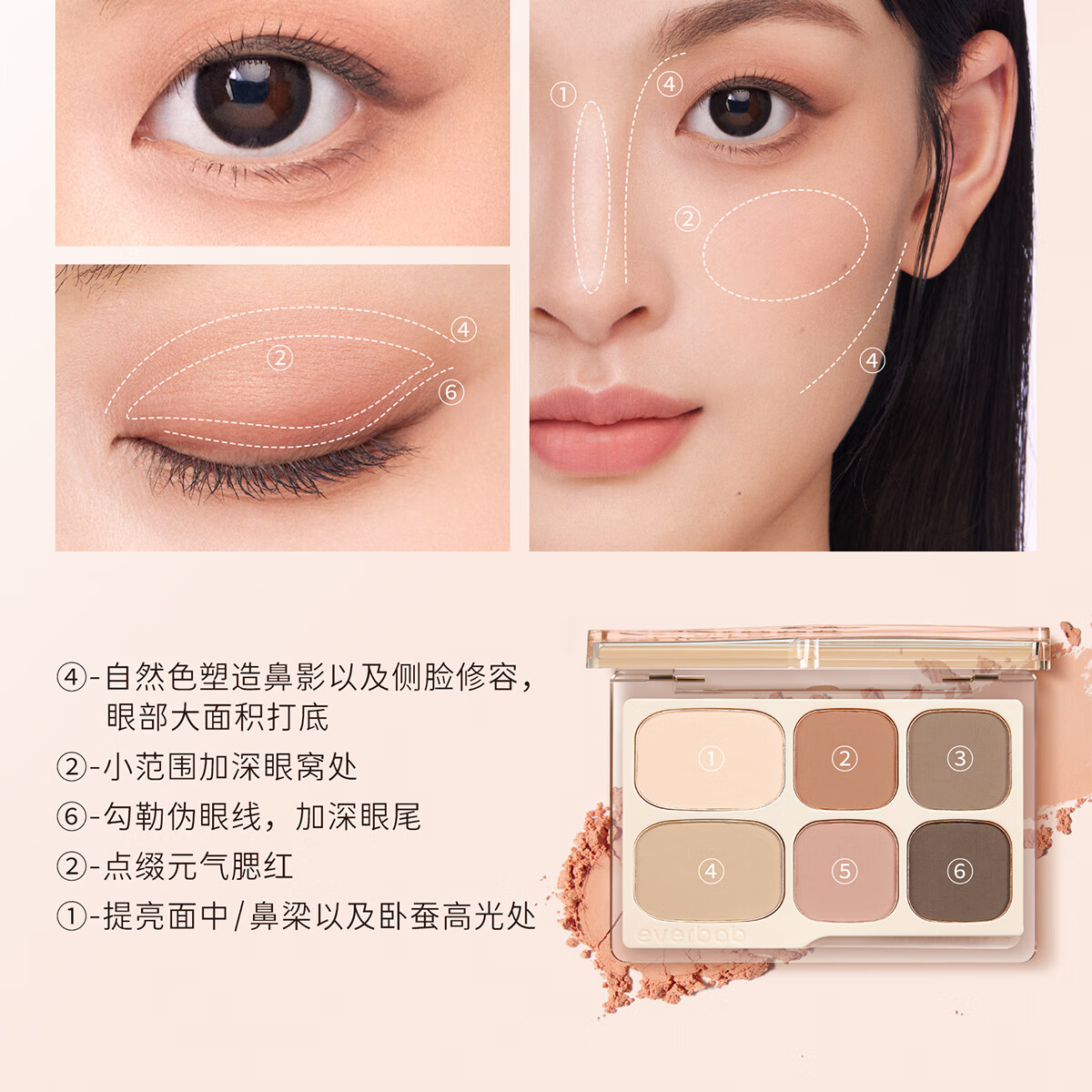 everbab艾蓓拉六色眼影盘哑光大地色光修容腮红综合盘礼物送女友 素哑盘2.0--热卖爆款