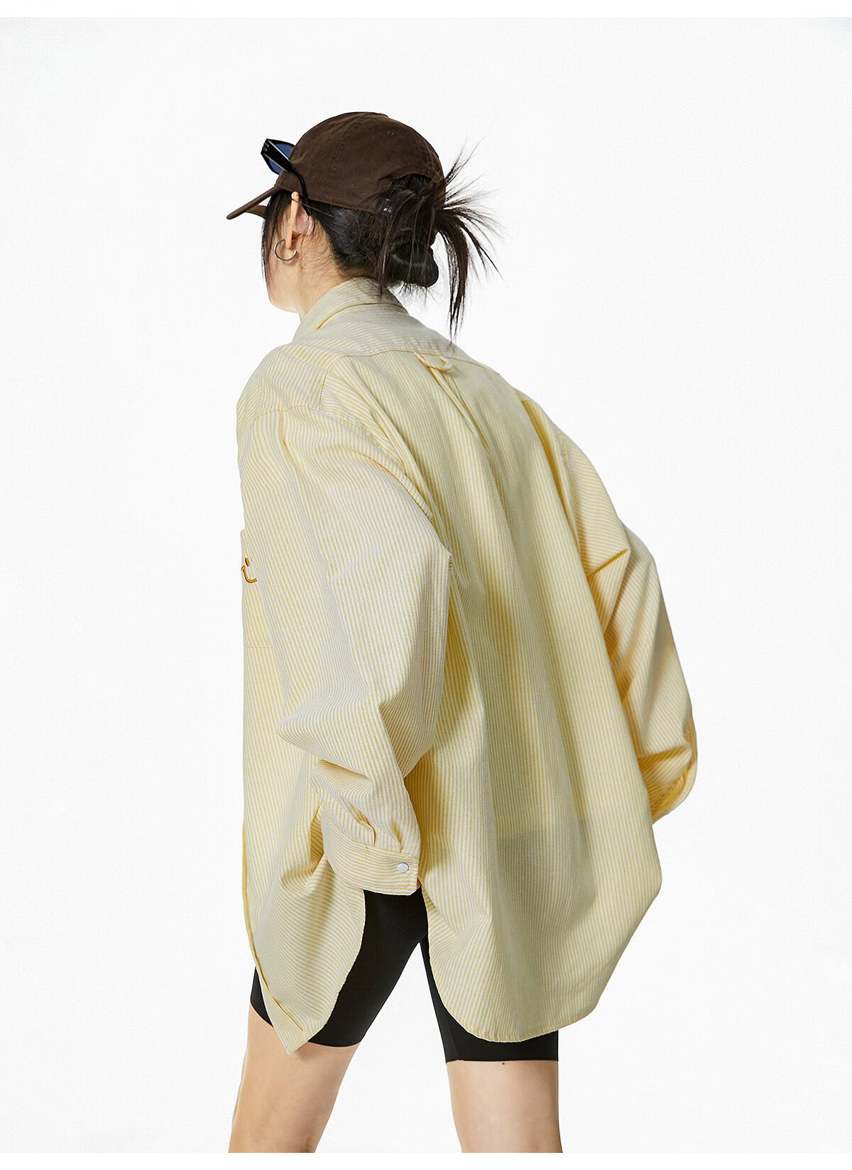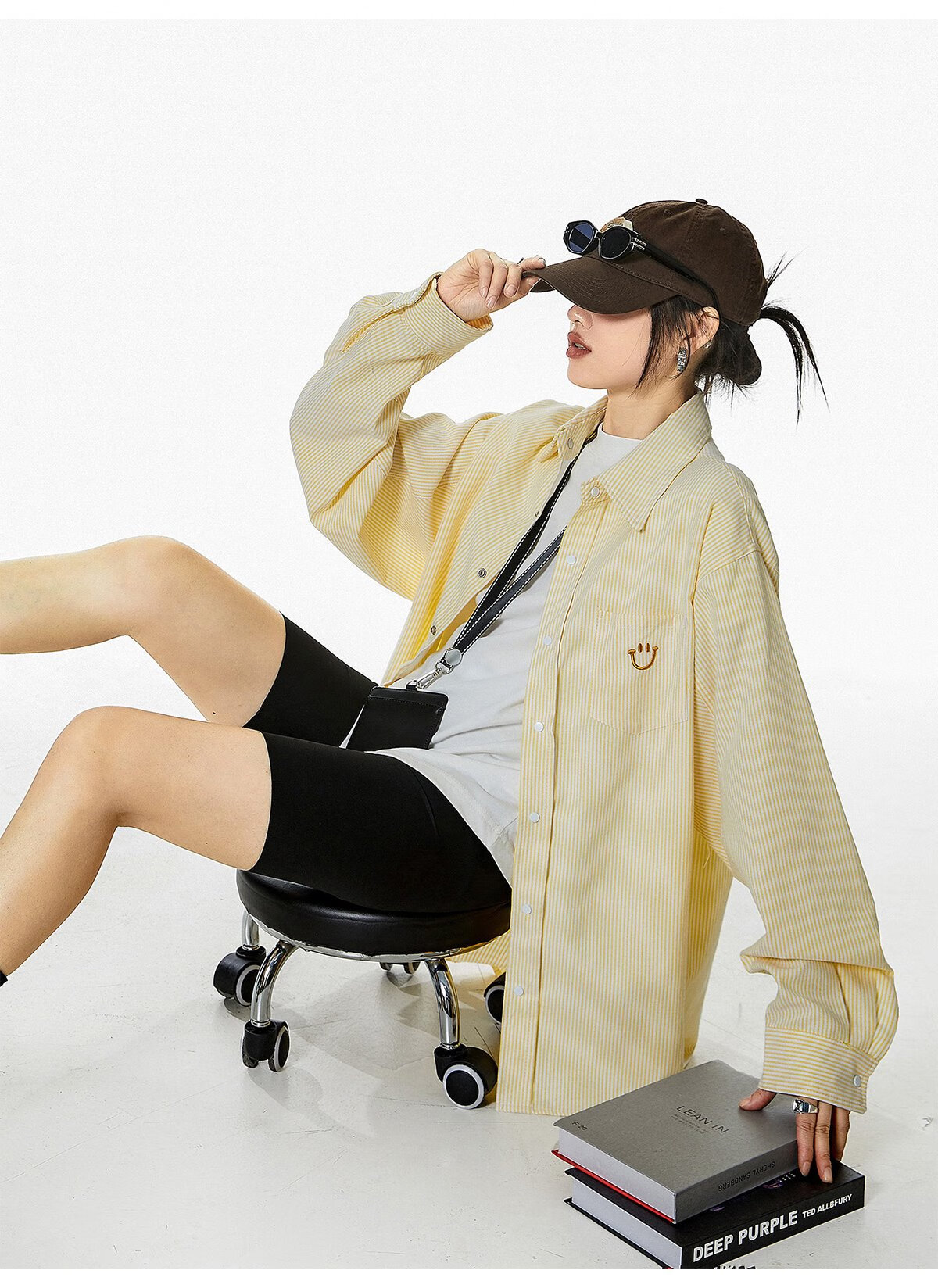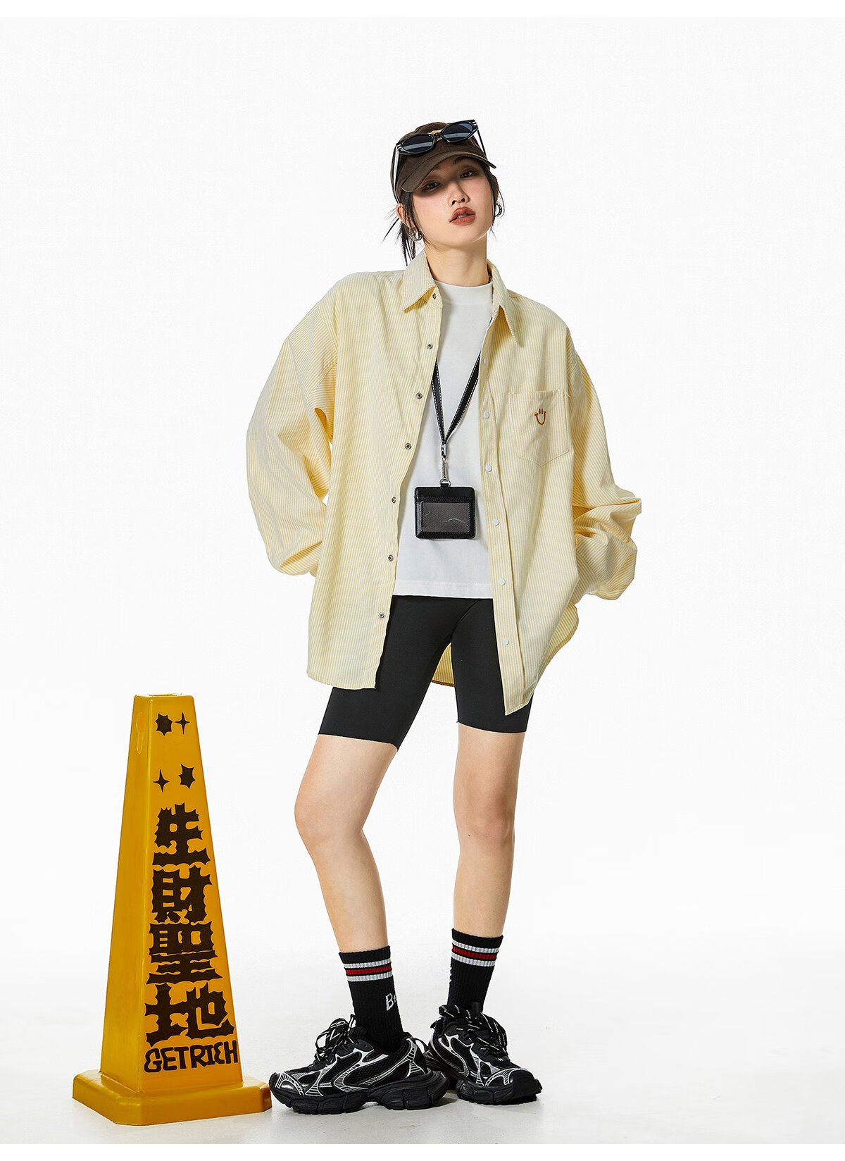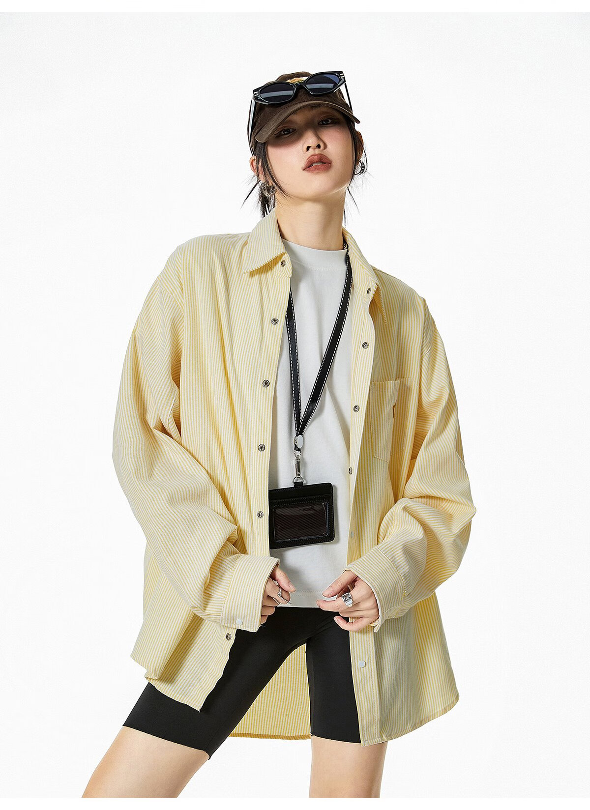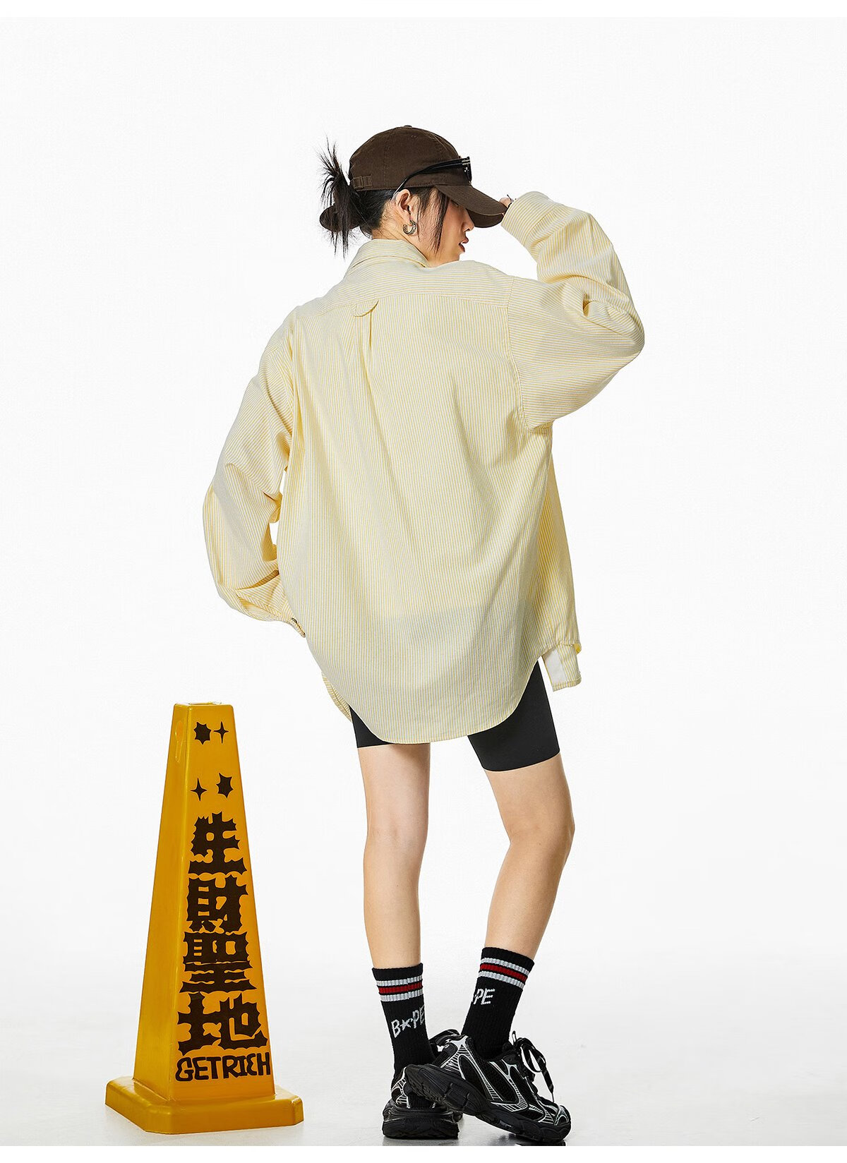 ICH MODE美式复古条纹衬衫女春秋2025新款宽松流行衬衣外套上衣男 黄色 XL