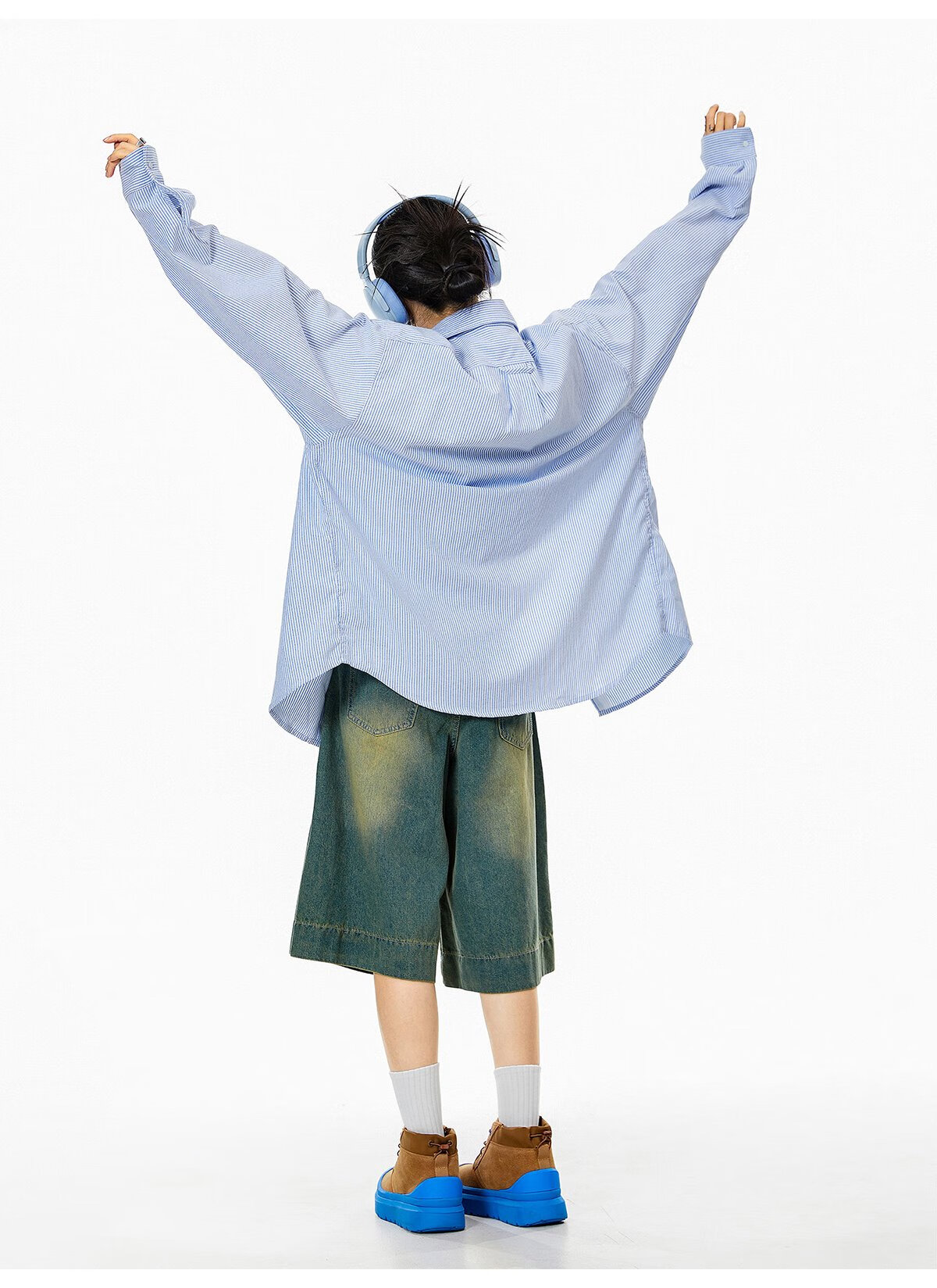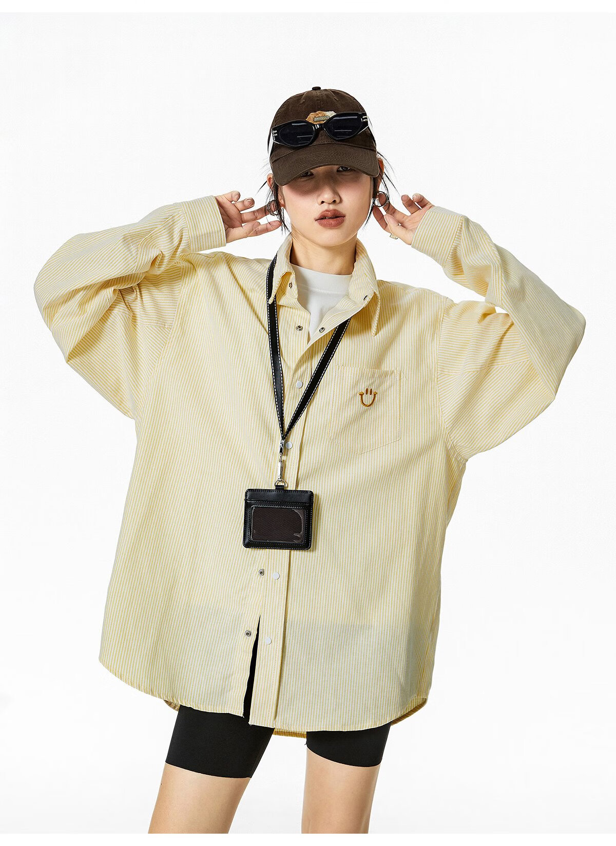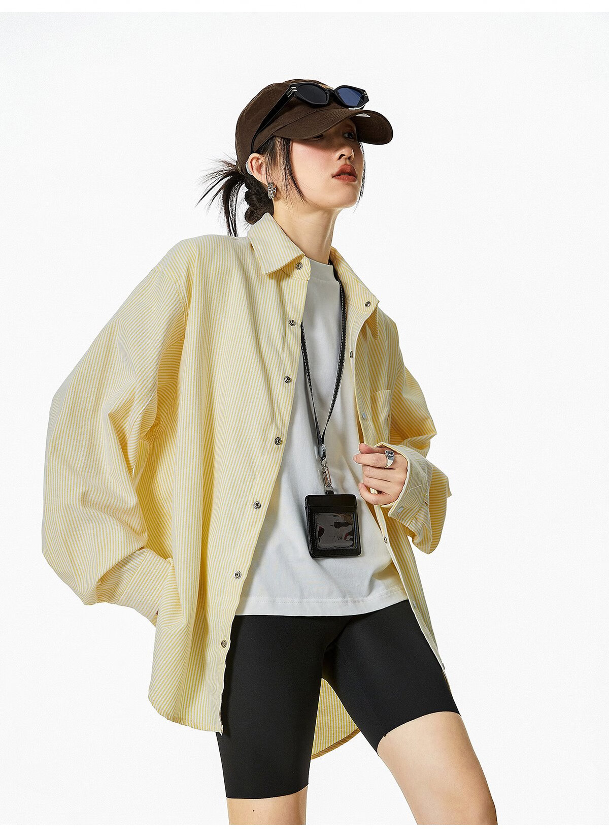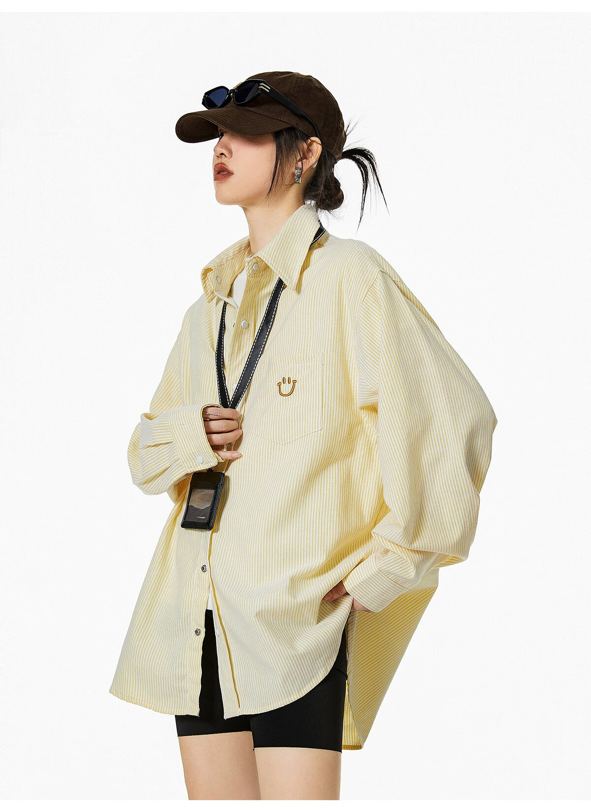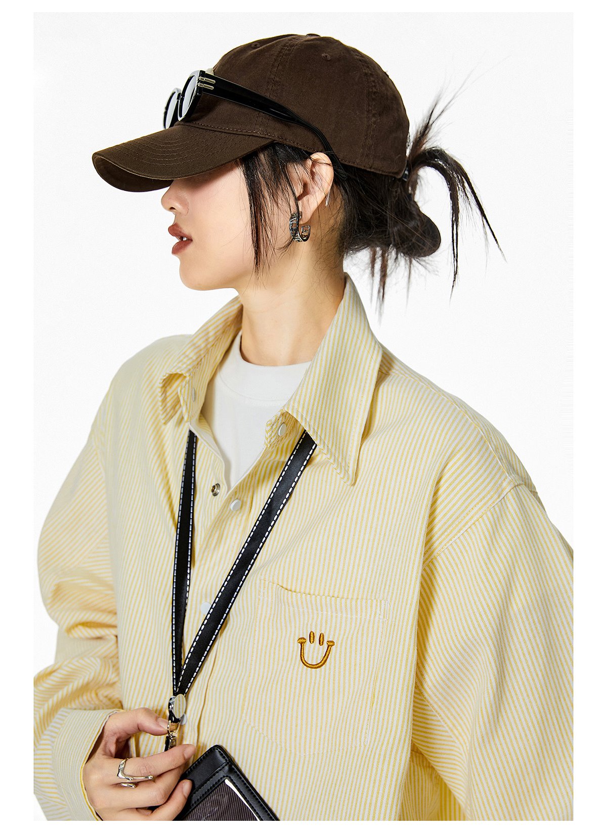 ICH MODE美式复古条纹衬衫女春秋2025新款宽松流行衬衣外套上衣男 黄色 XL