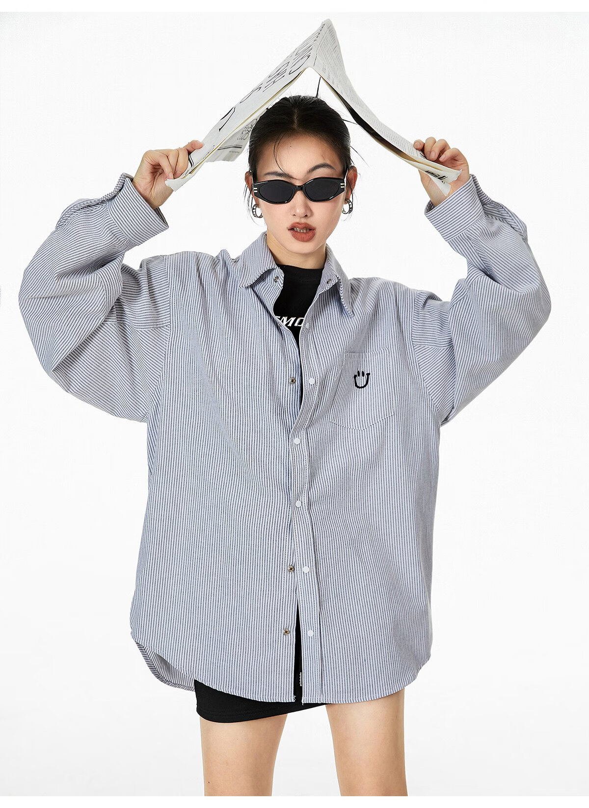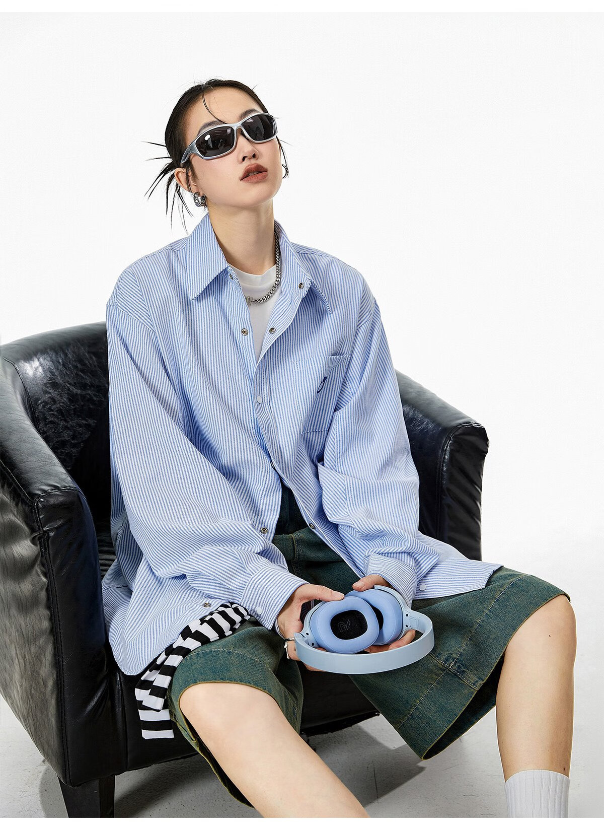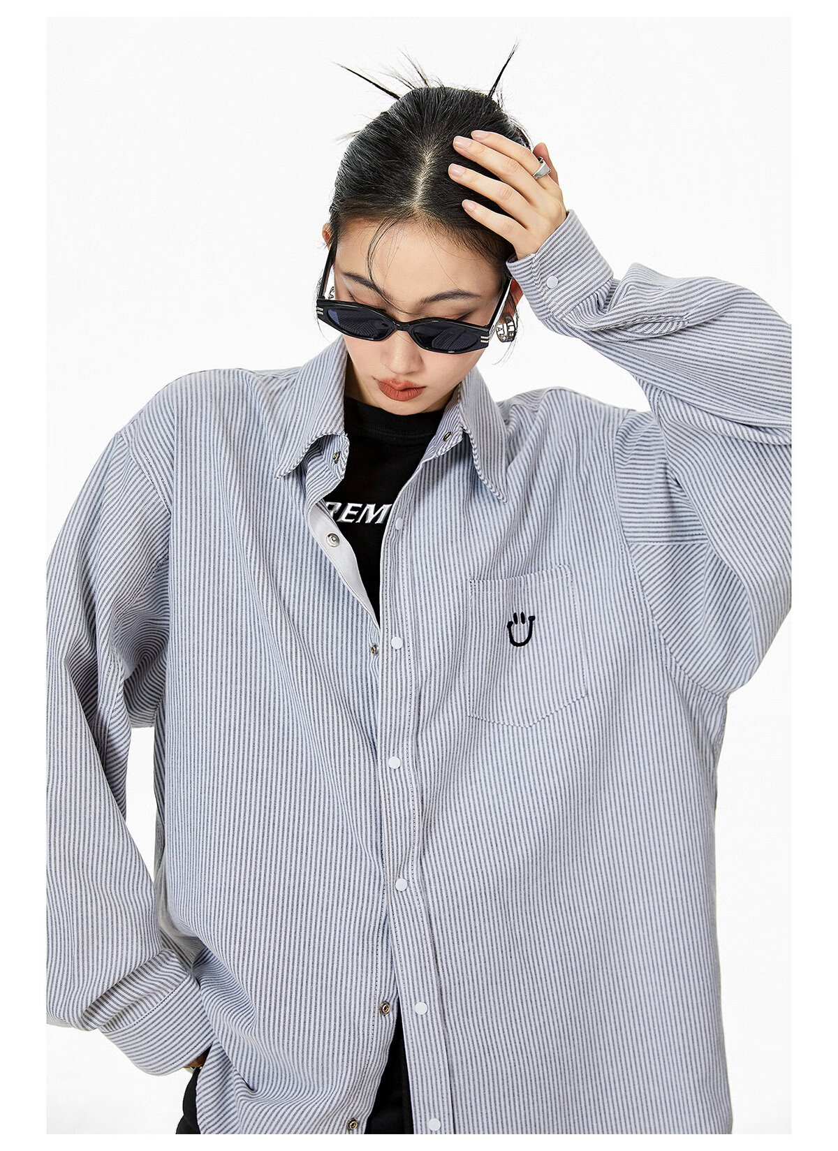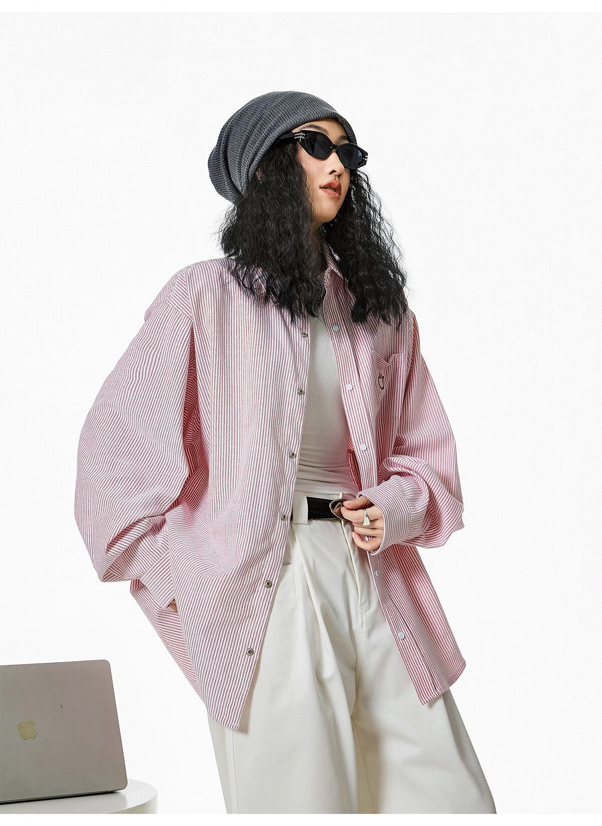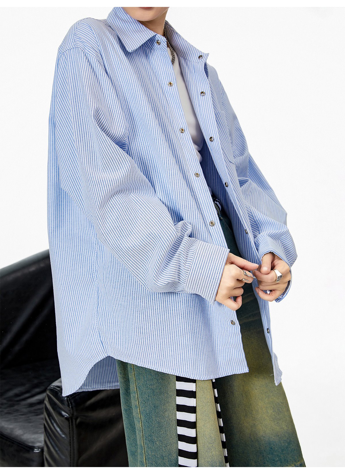 ICH MODE美式复古条纹衬衫女春秋2025新款宽松流行衬衣外套上衣男 黄色 XL