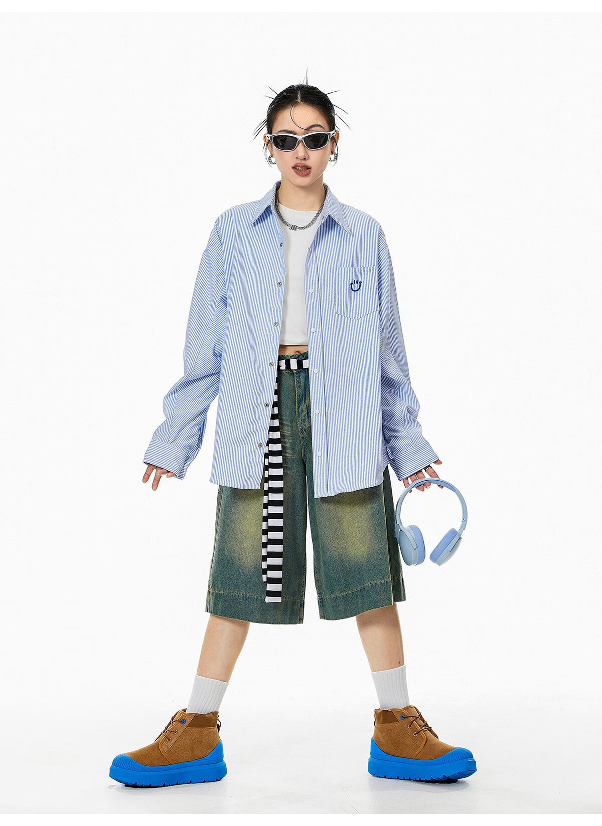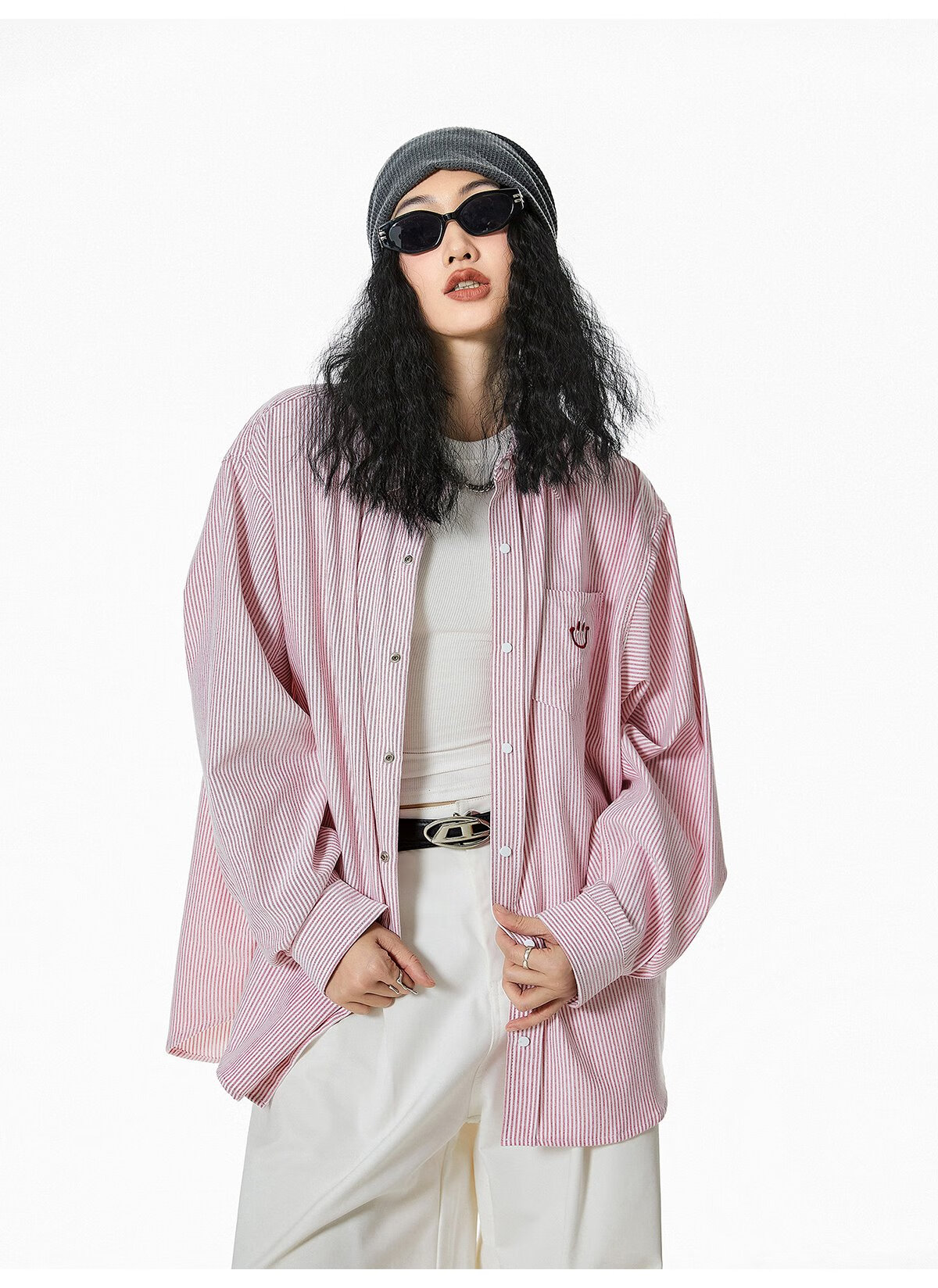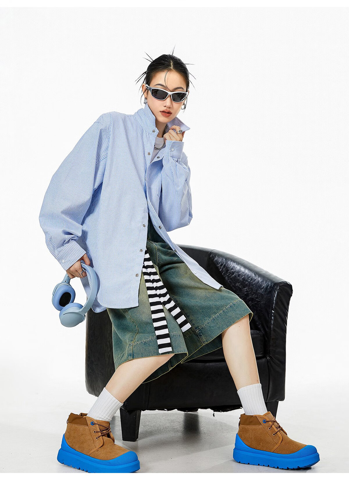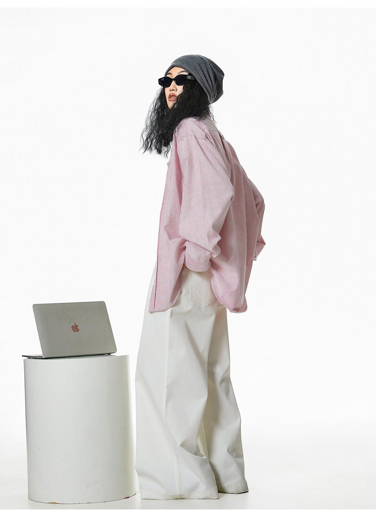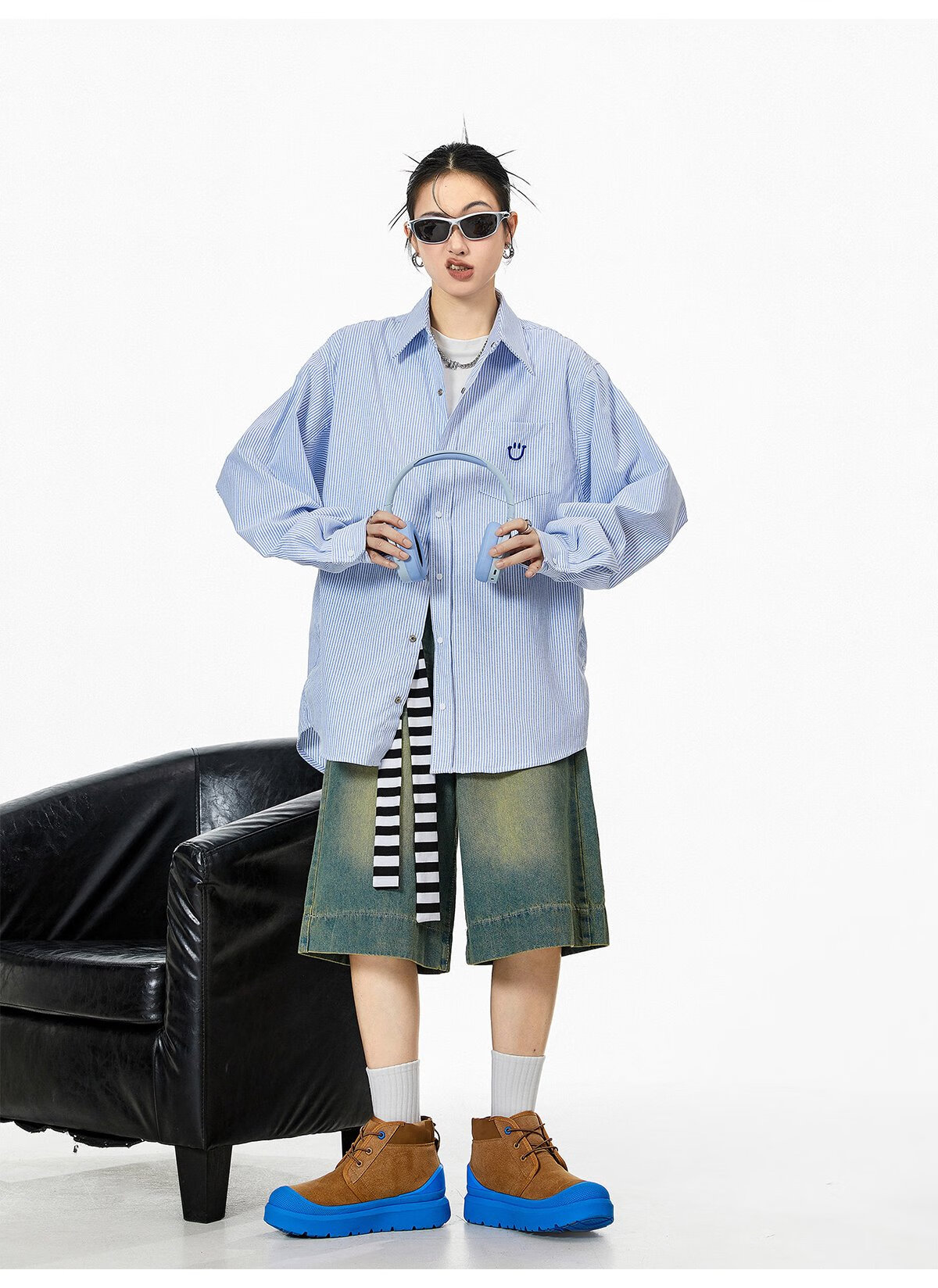 ICH MODE美式复古条纹衬衫女春秋2025新款宽松流行衬衣外套上衣男 黄色 XL
