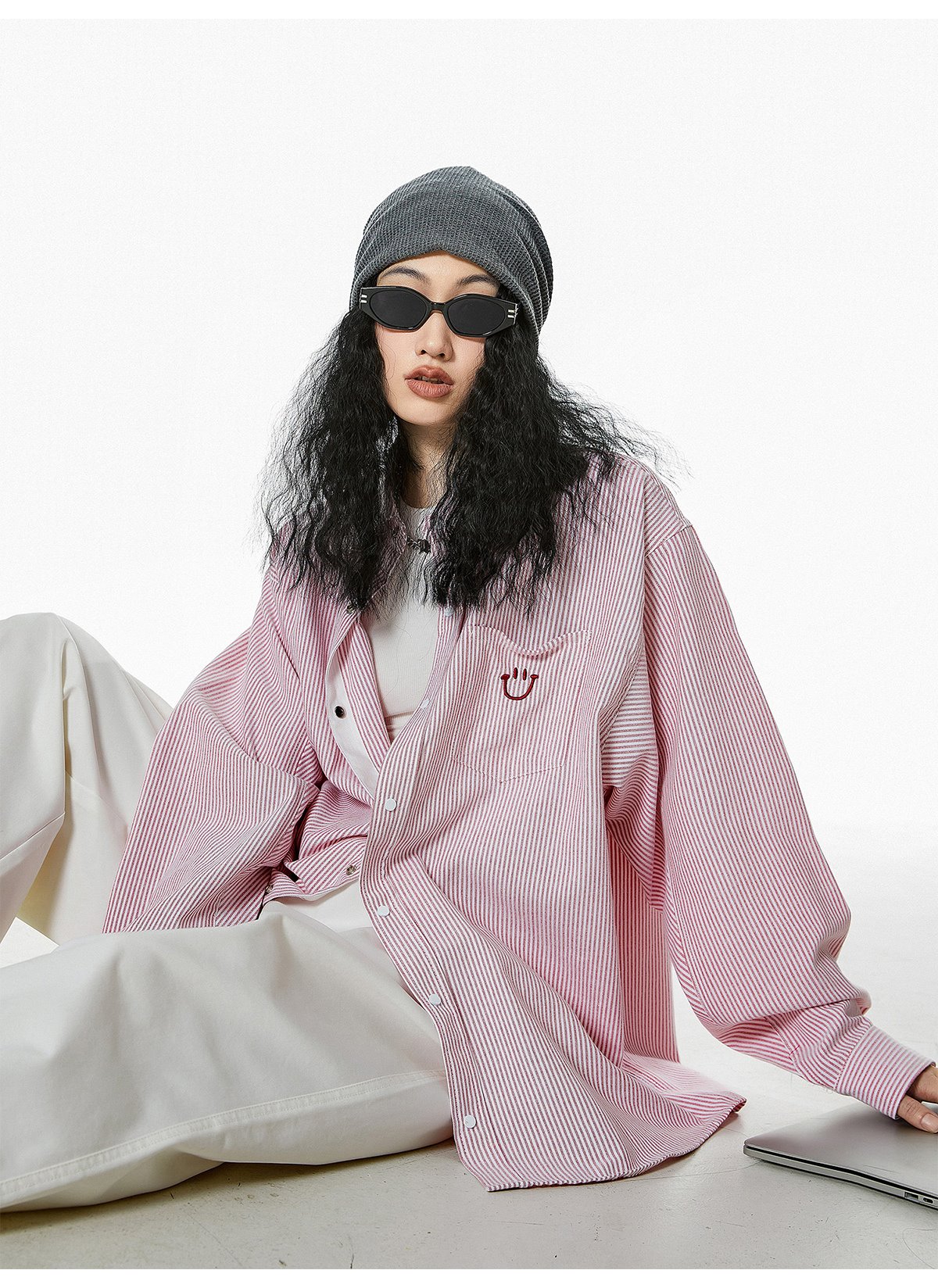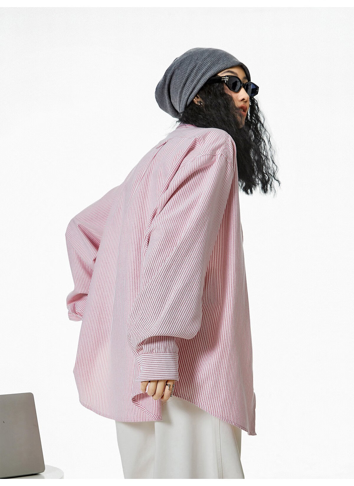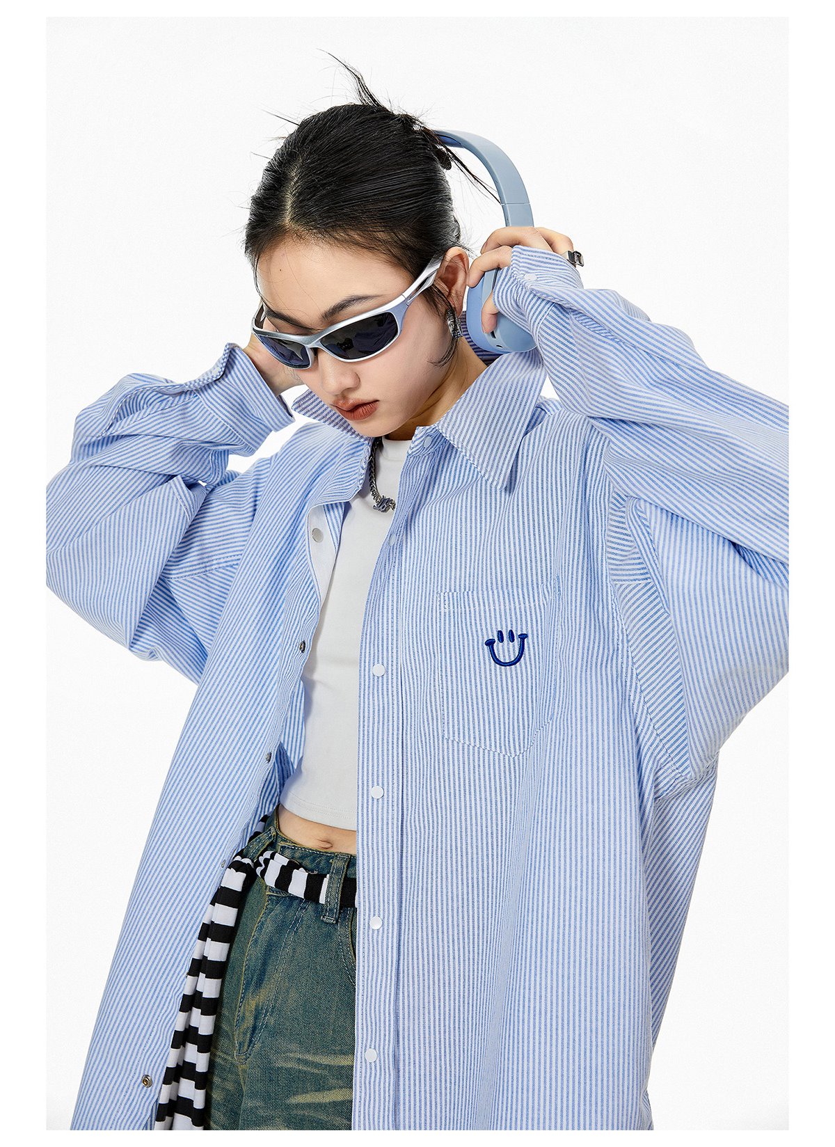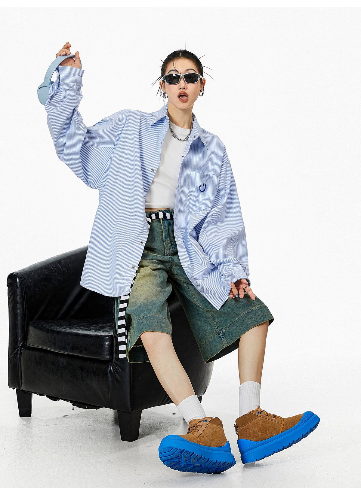 ICH MODE美式复古条纹衬衫女春秋2025新款宽松流行衬衣外套上衣男 黄色 XL
