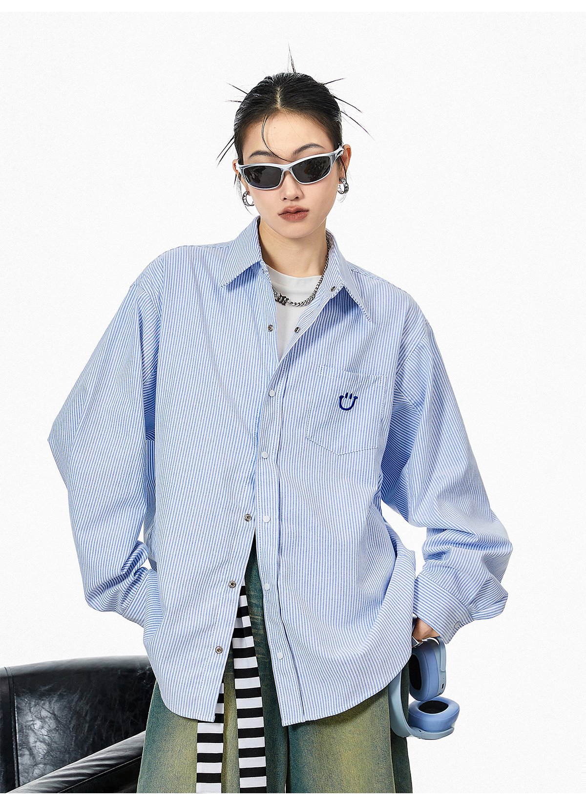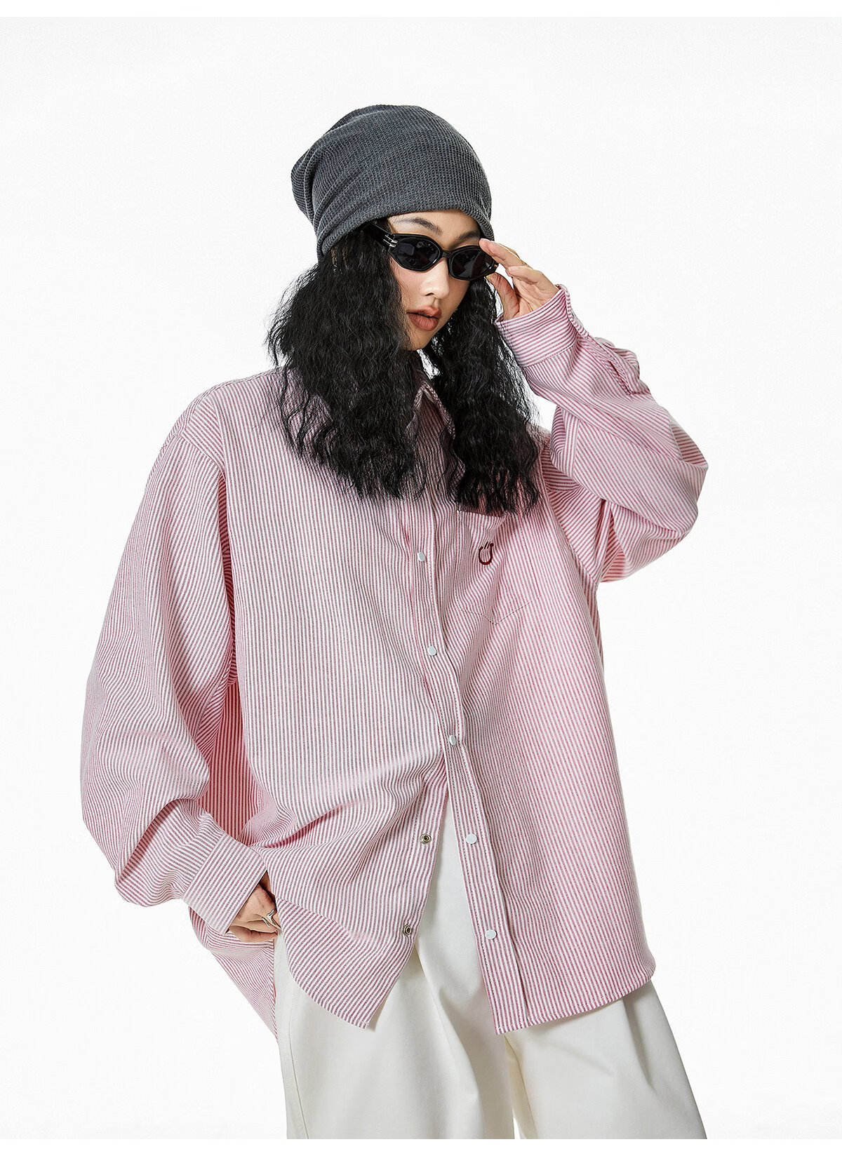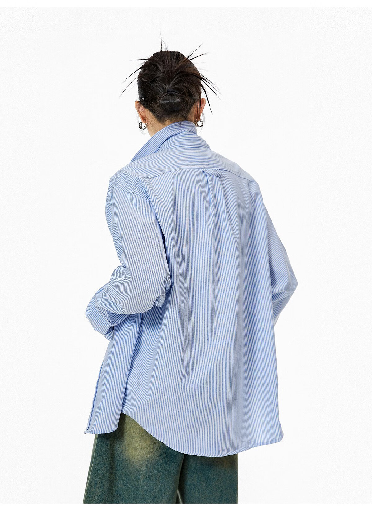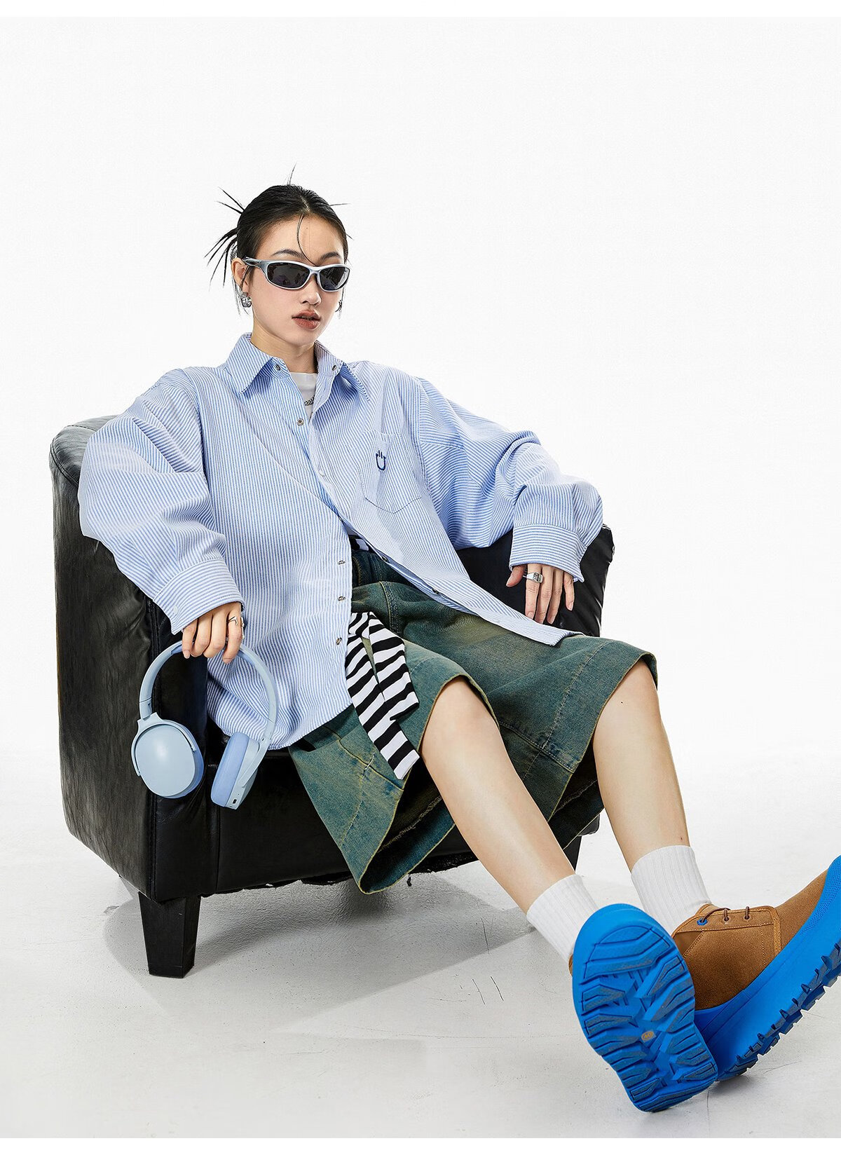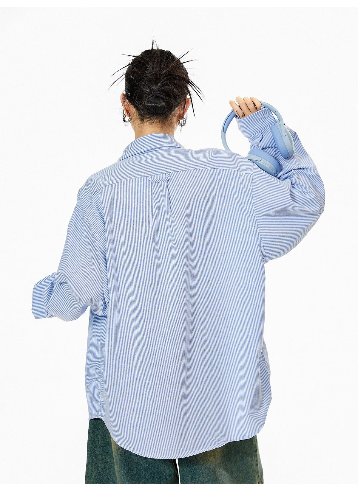 ICH MODE美式复古条纹衬衫女春秋2025新款宽松流行衬衣外套上衣男 黄色 XL