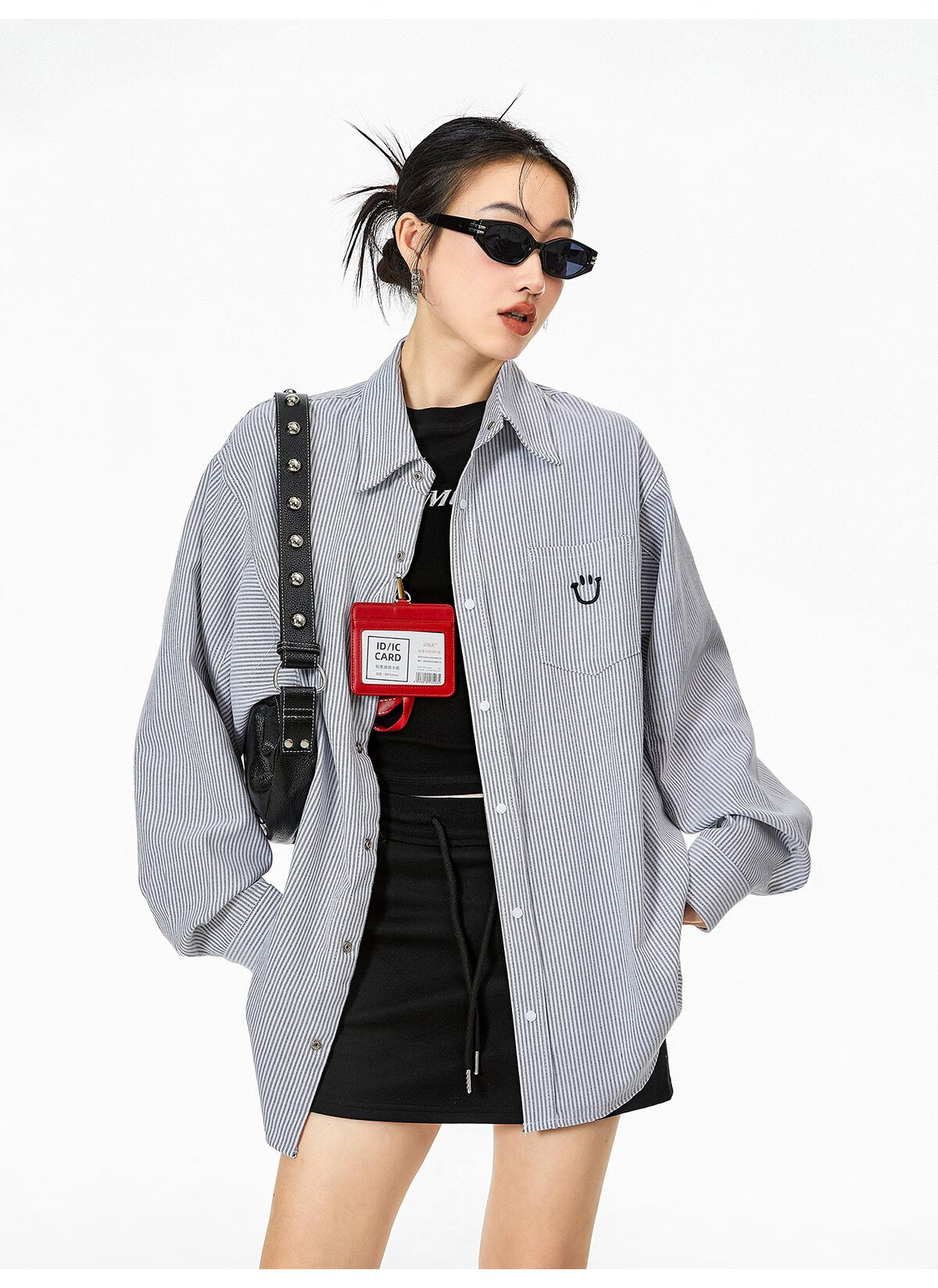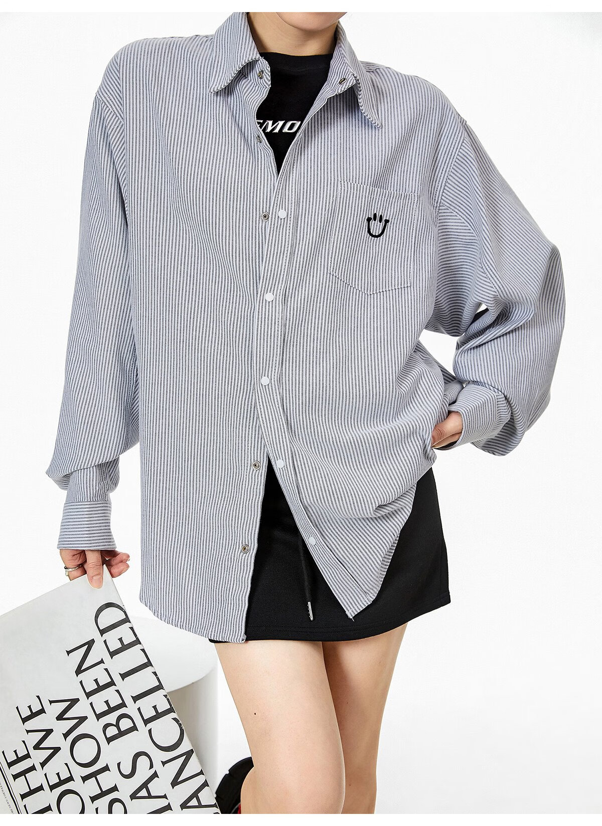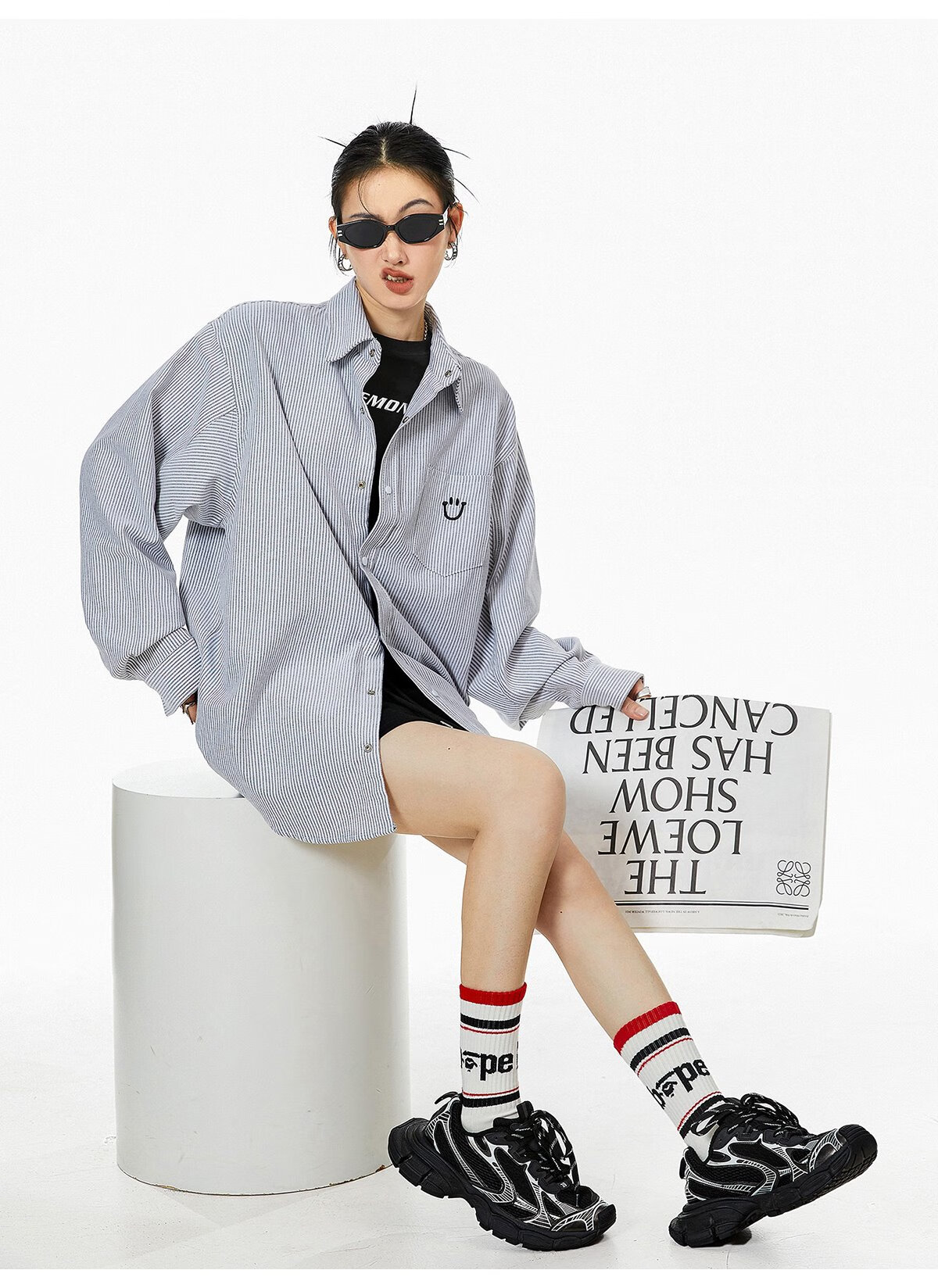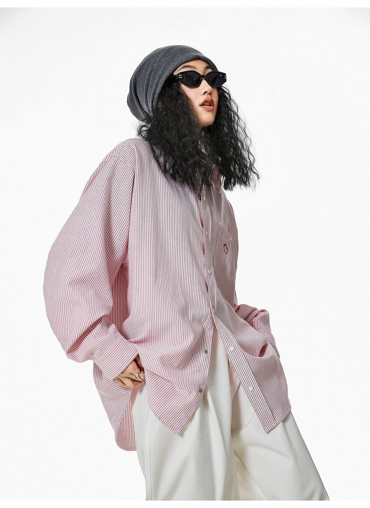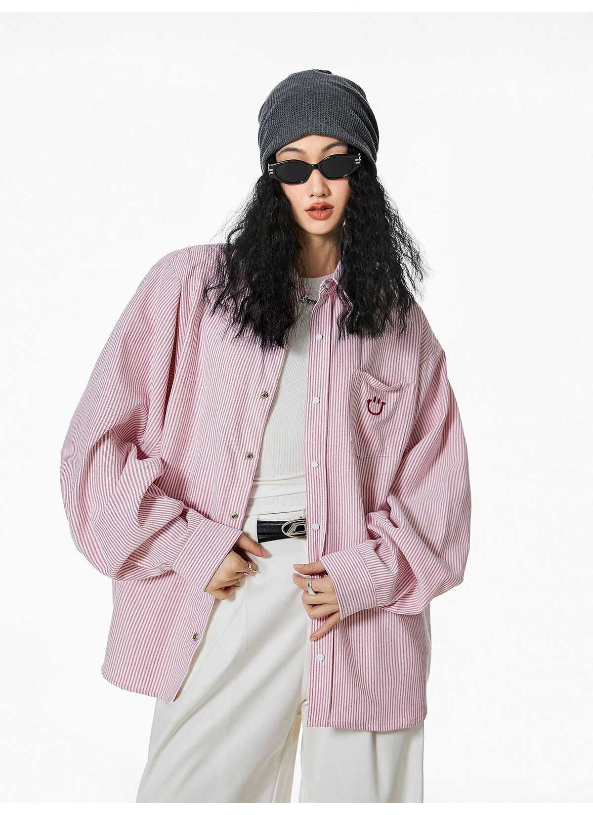 ICH MODE美式复古条纹衬衫女春秋2025新款宽松流行衬衣外套上衣男 黄色 XL