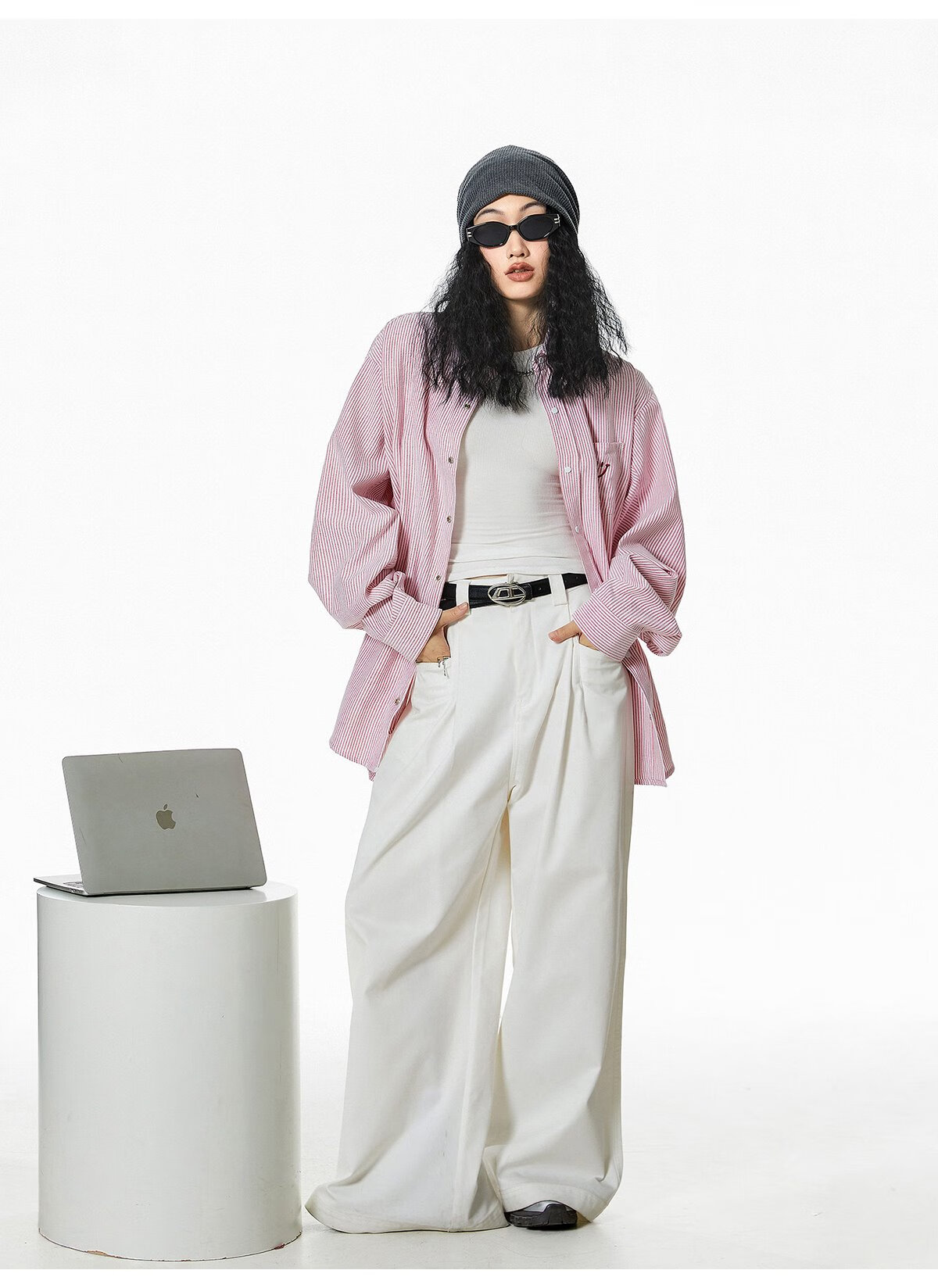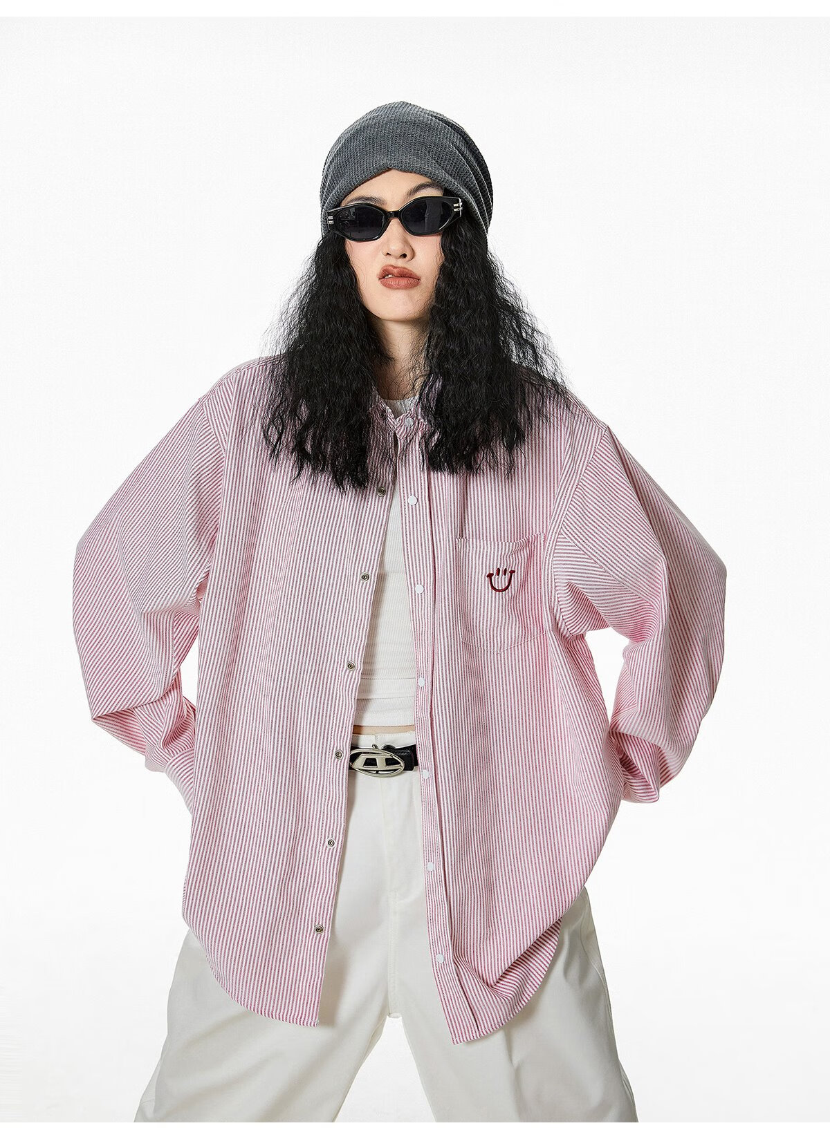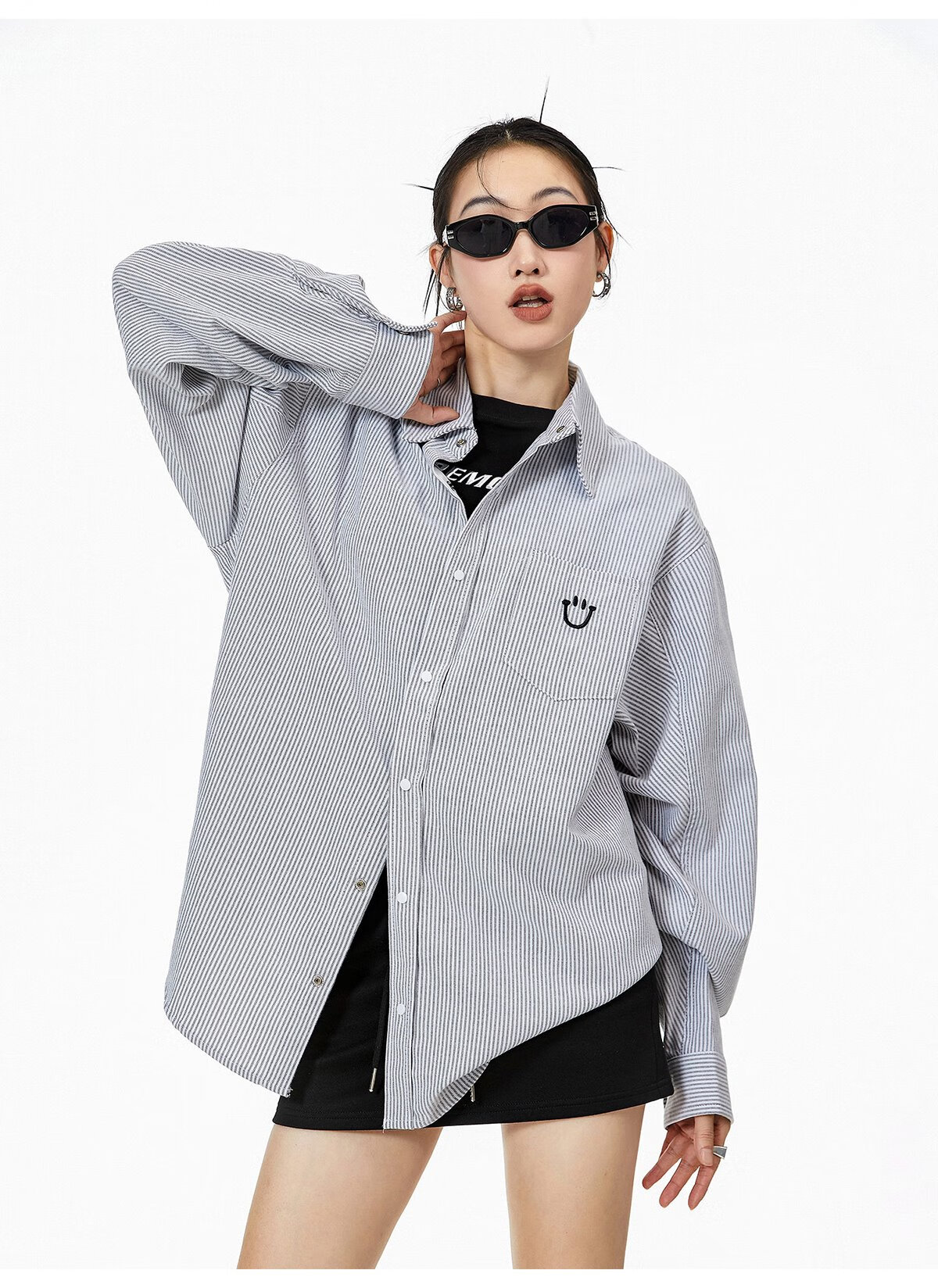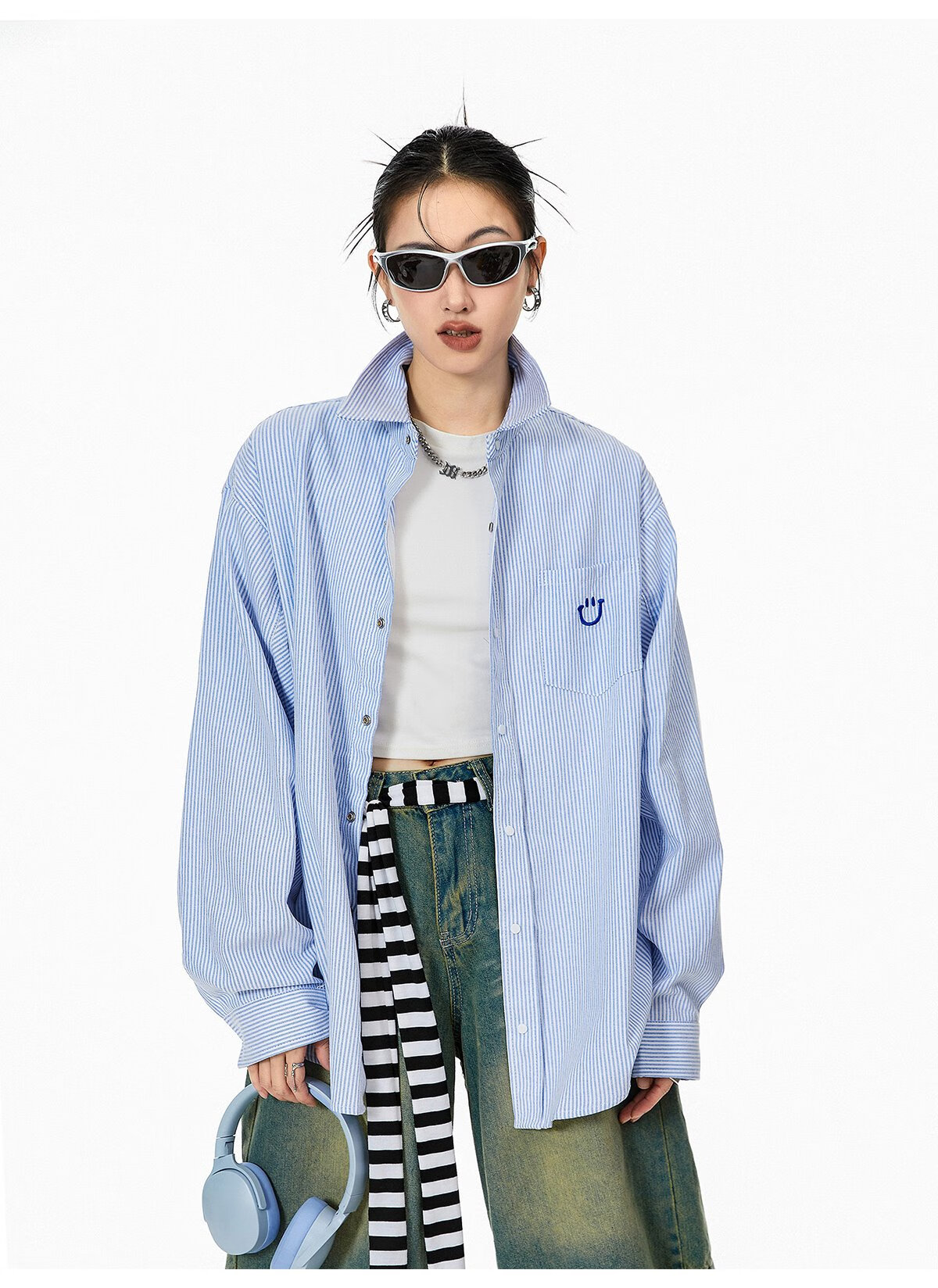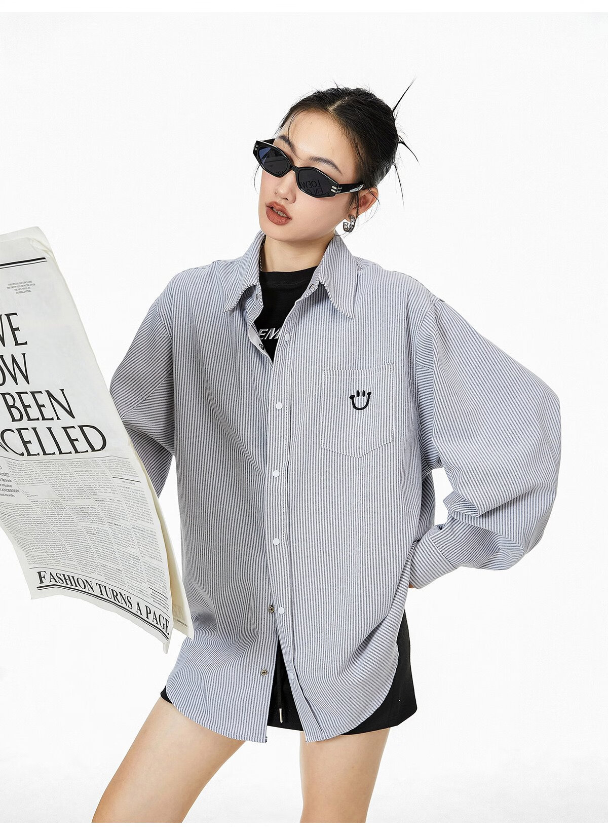 ICH MODE美式复古条纹衬衫女春秋2025新款宽松流行衬衣外套上衣男 黄色 XL