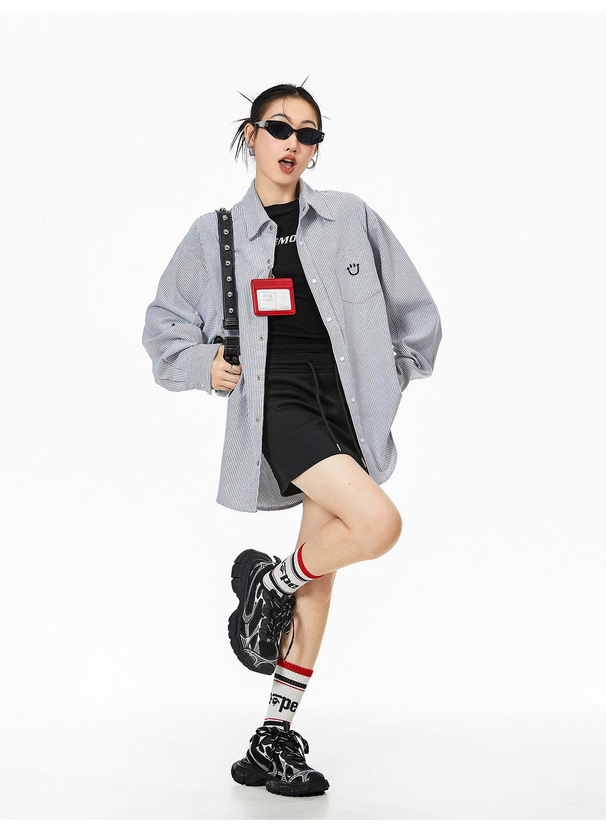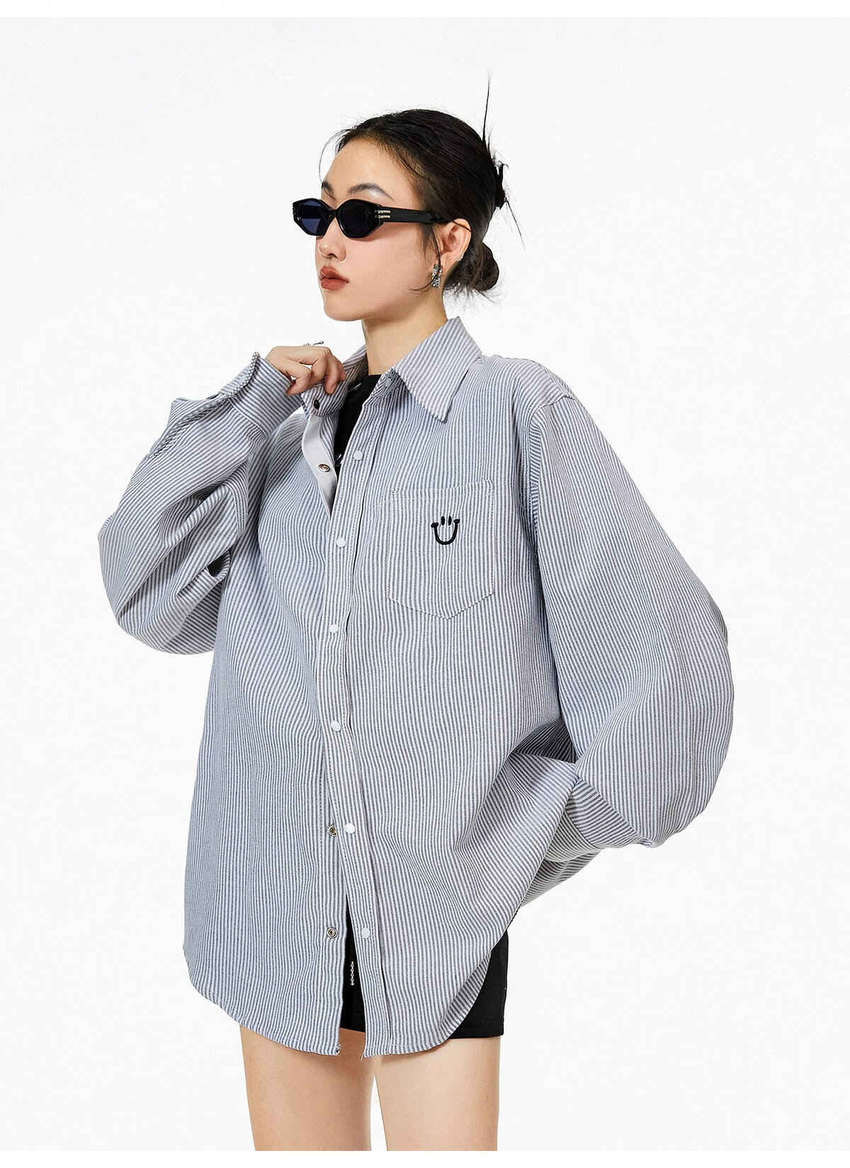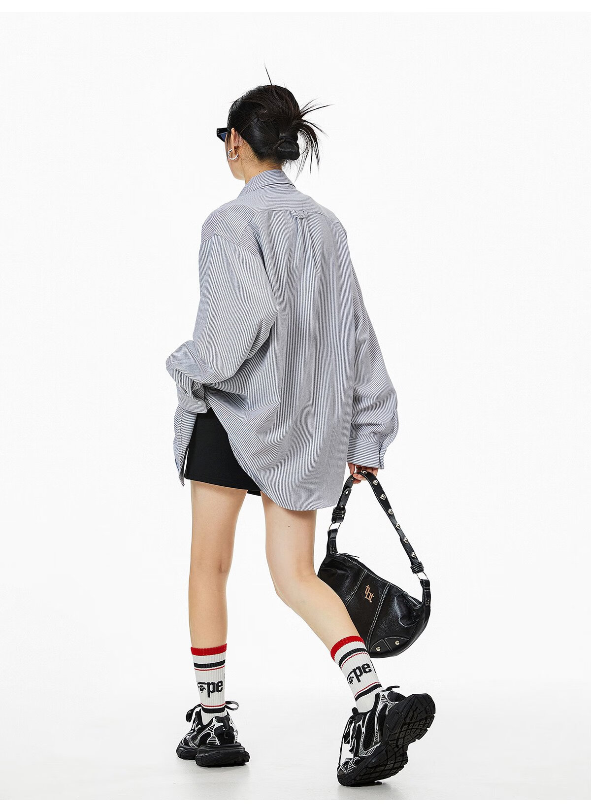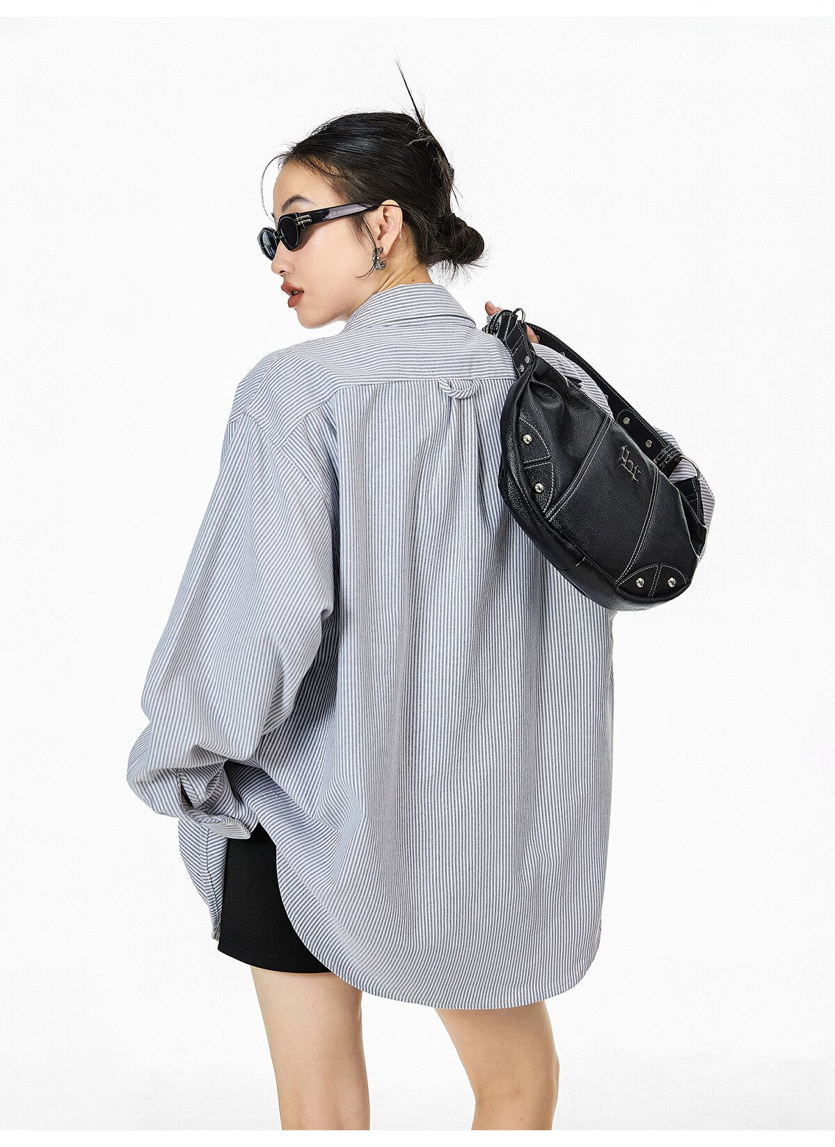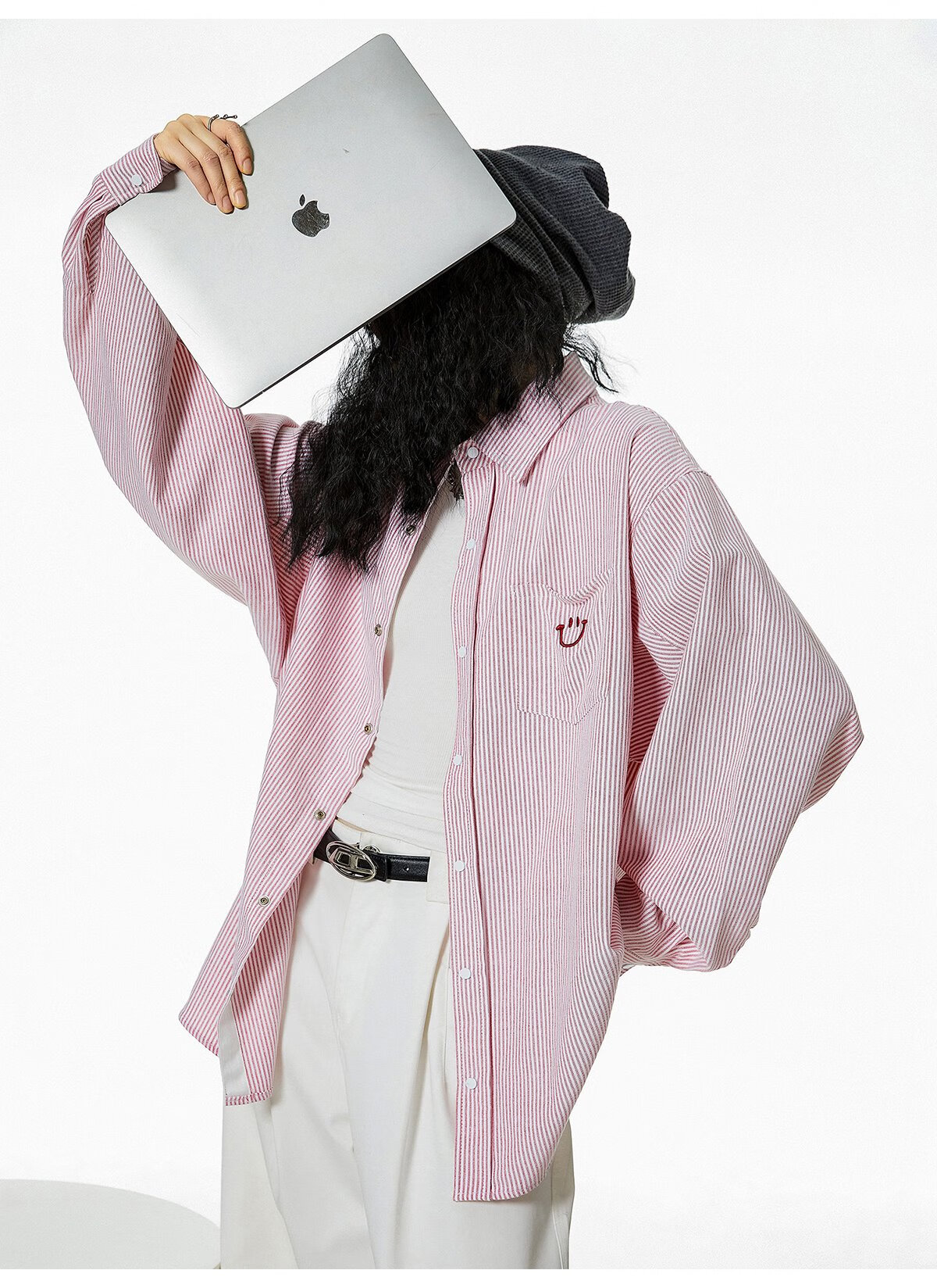 ICH MODE美式复古条纹衬衫女春秋2025新款宽松流行衬衣外套上衣男 黄色 XL
