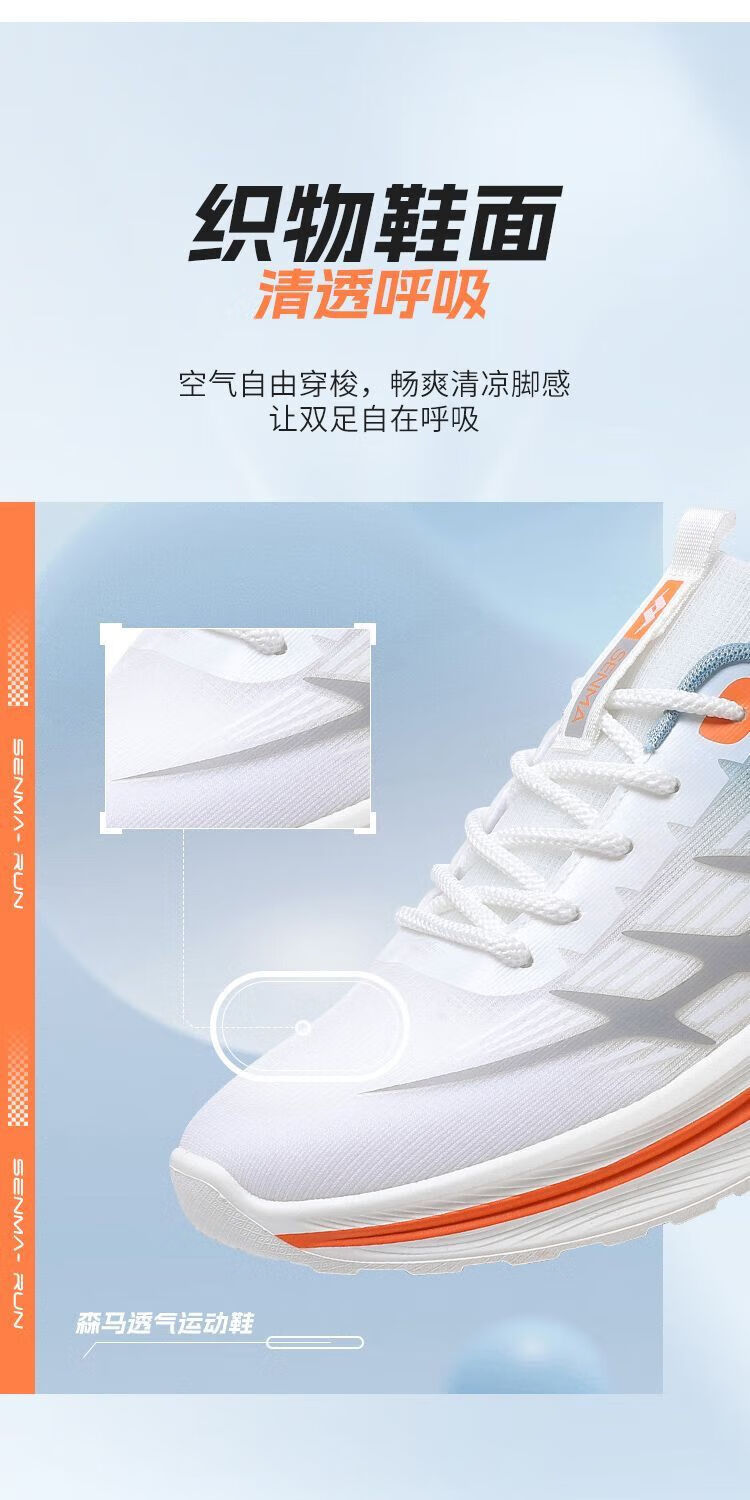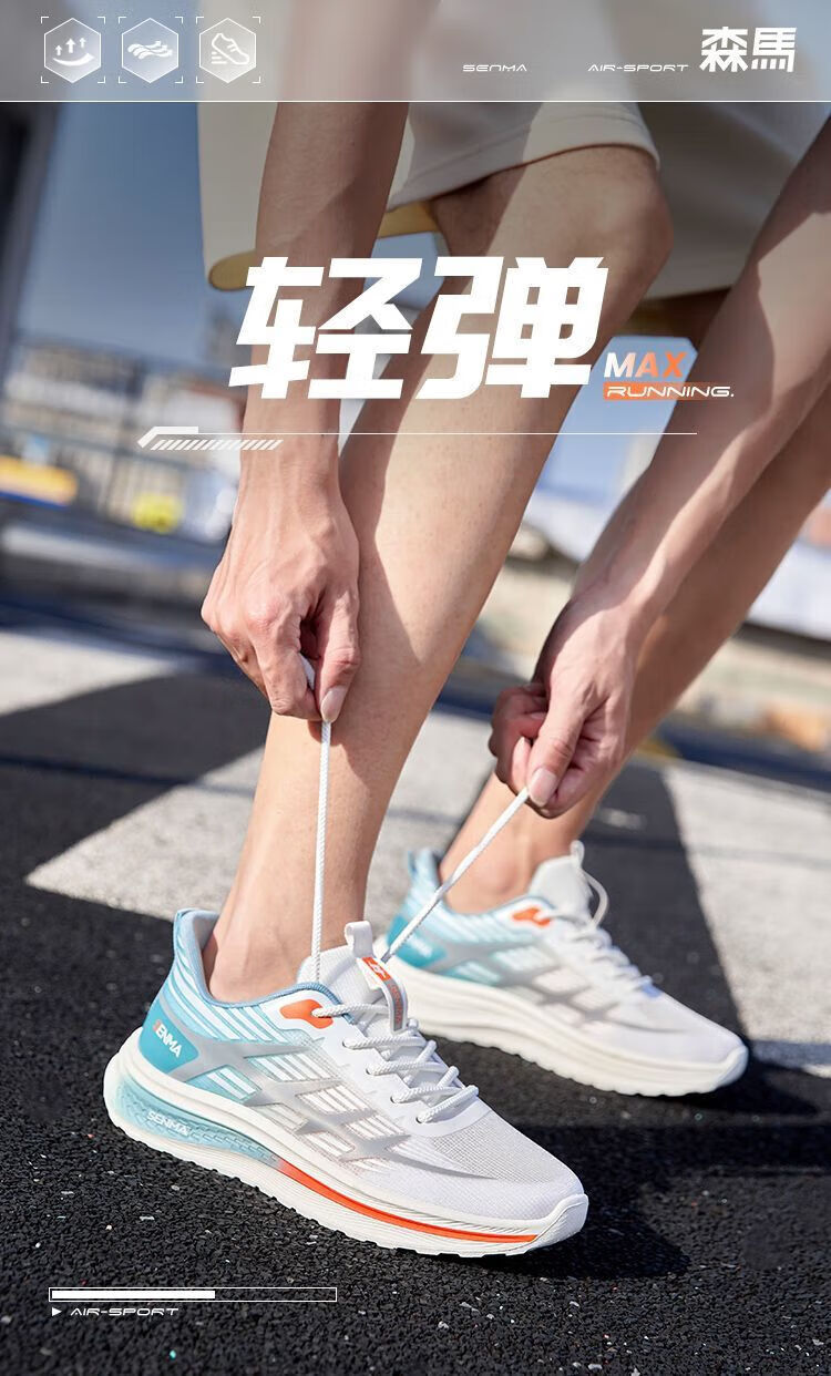 森馬男鞋网面鞋透气2025时尚新款轻便跑步运动鞋青少年潮流舒适休闲鞋 白湖蓝 42 (260mm)