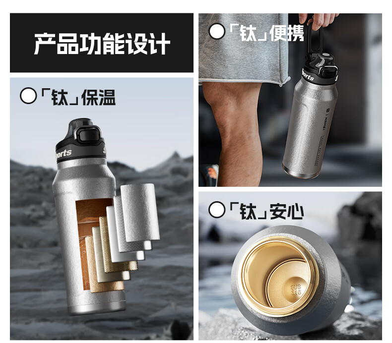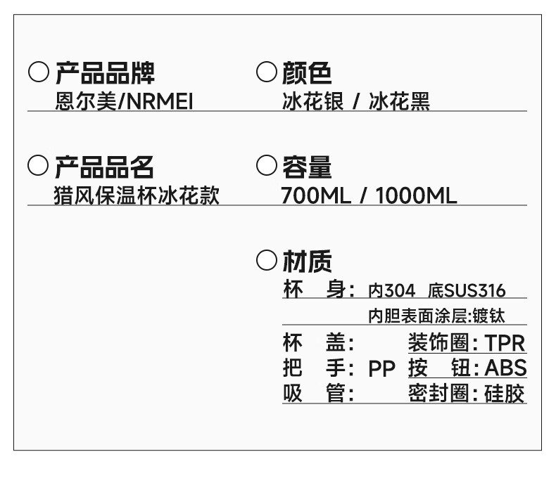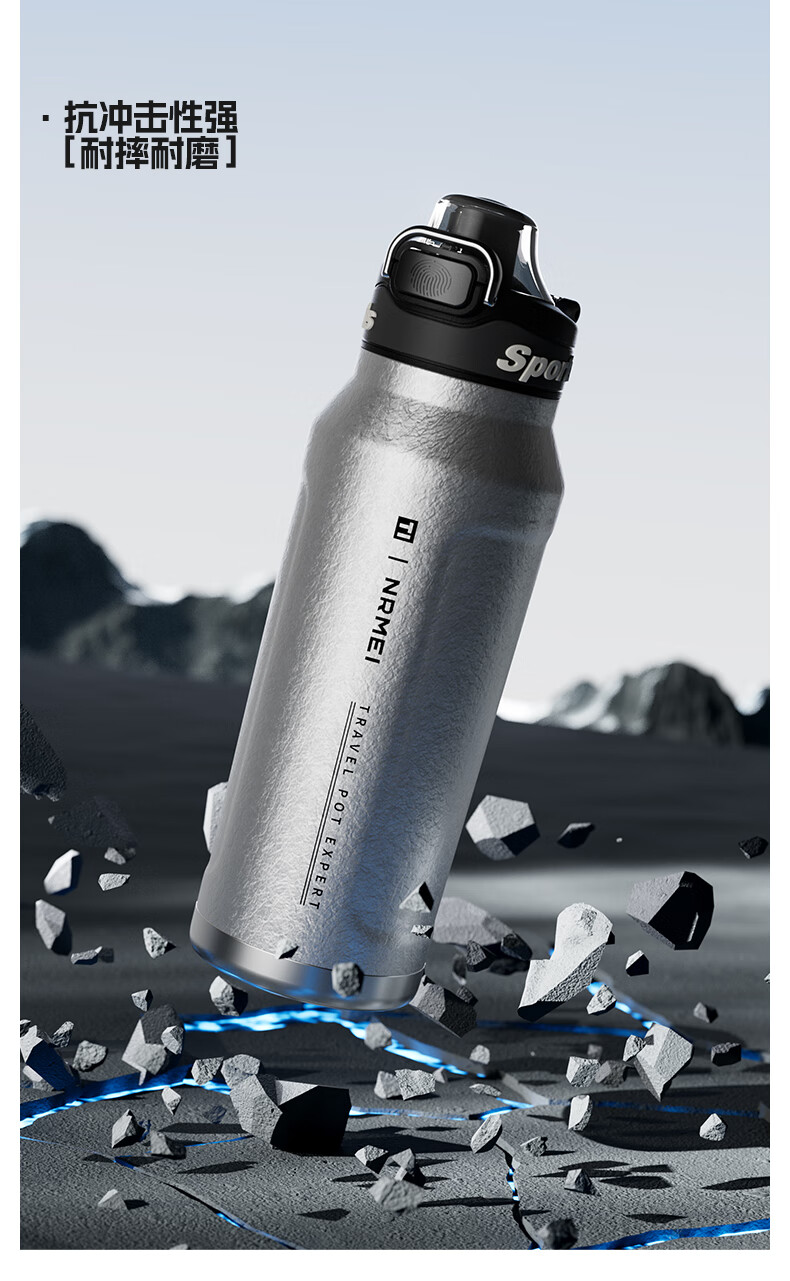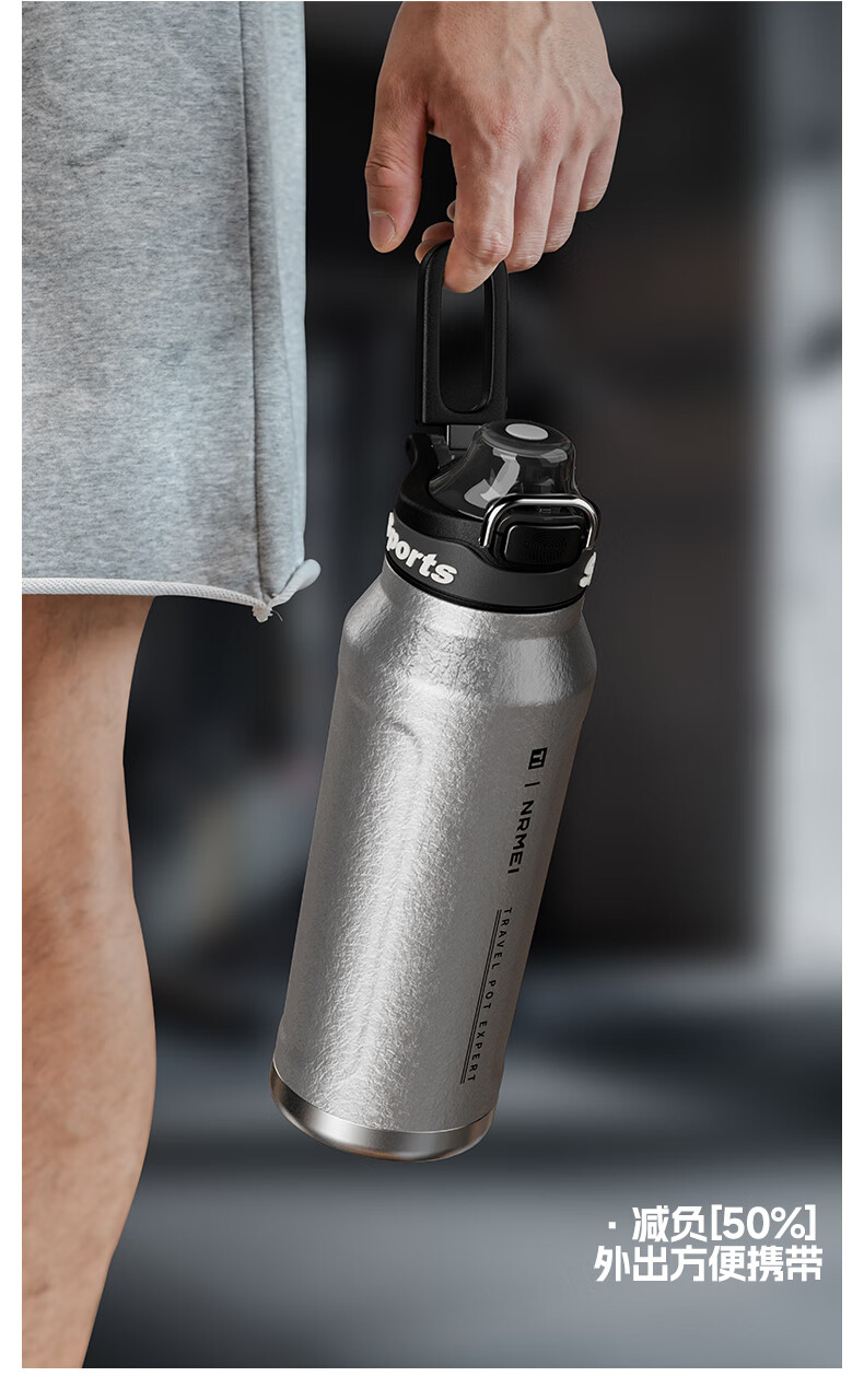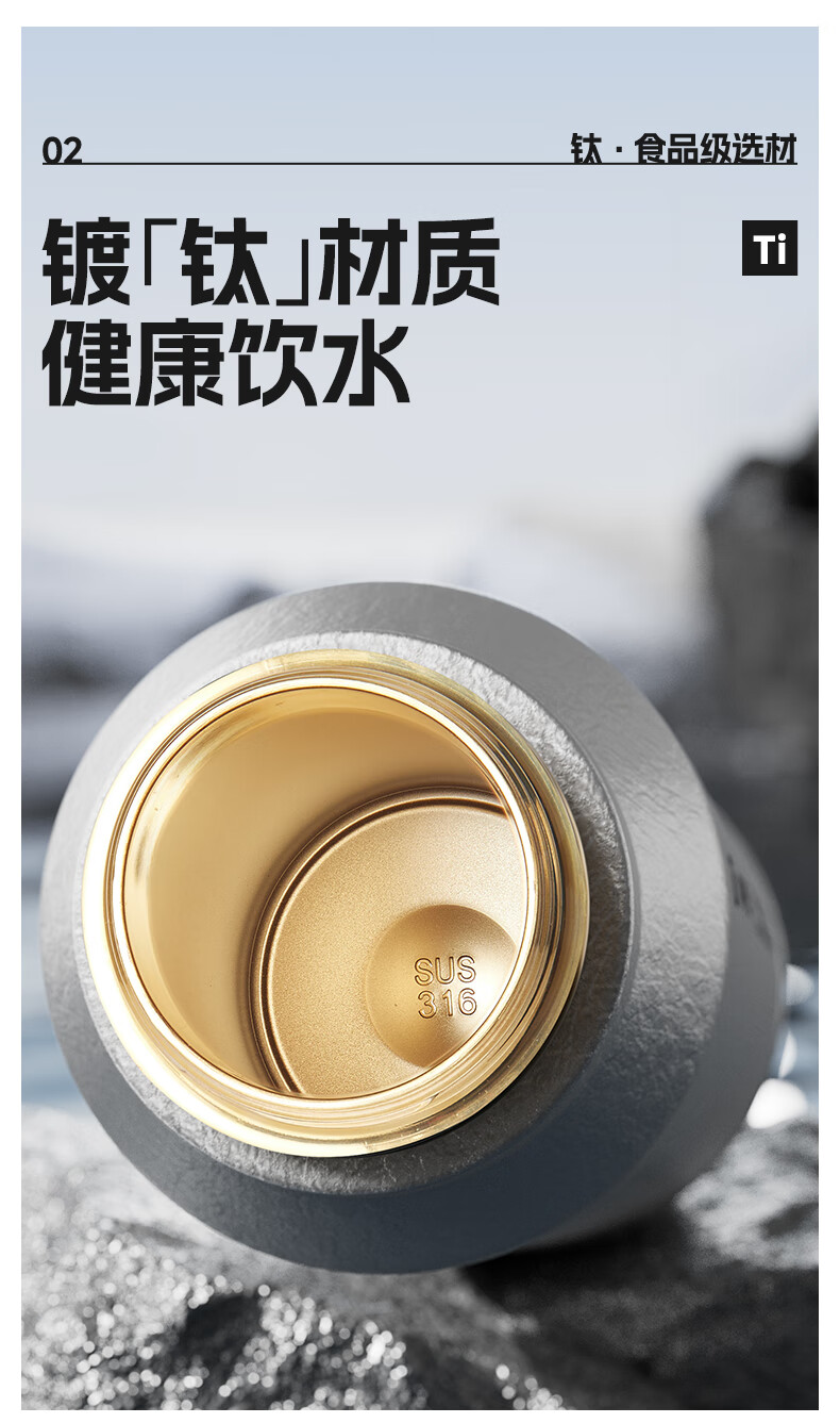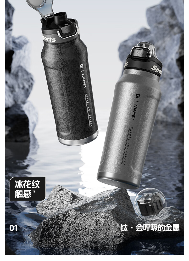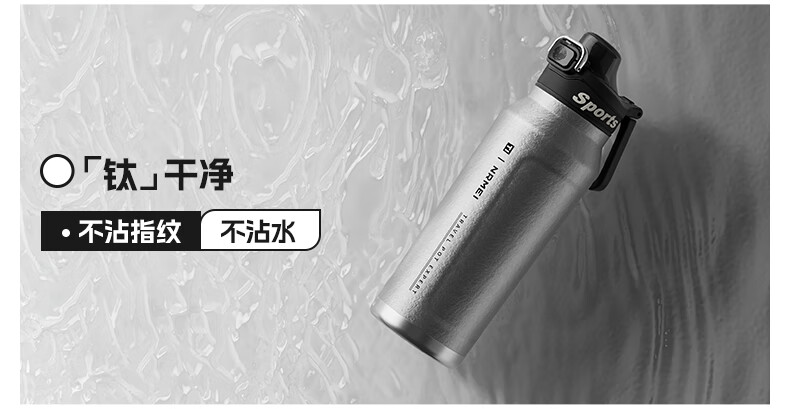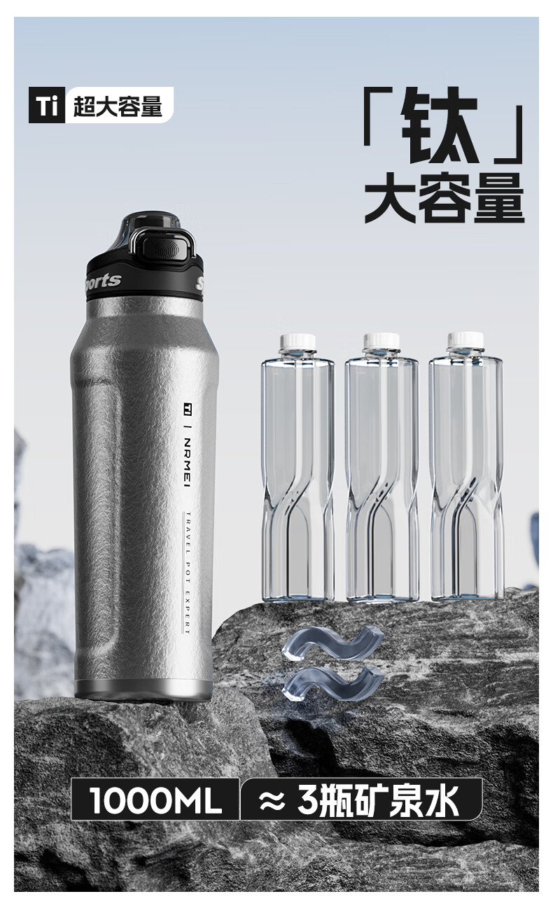 恩尔美纯钛保温杯户外便携大容量水壶镀钛高档个人商务吨吨男女新款水杯 【冰花银】1000ml-保冷热