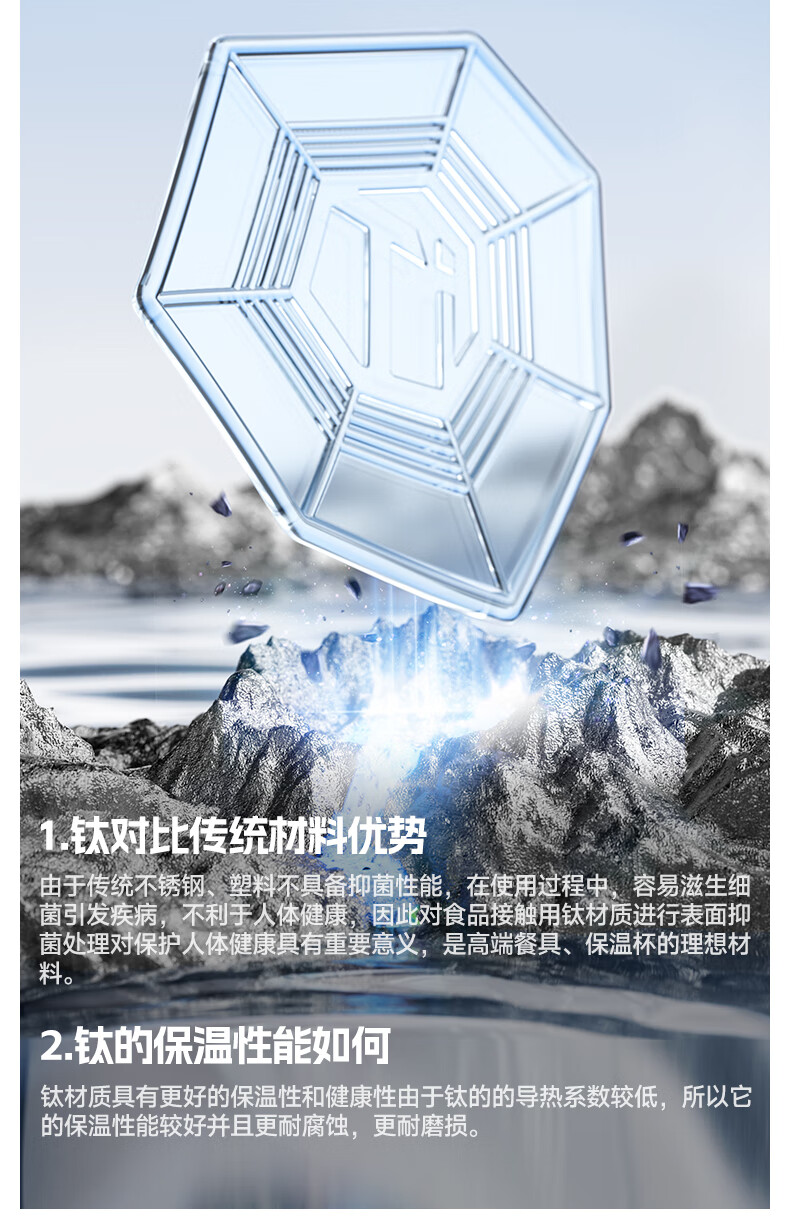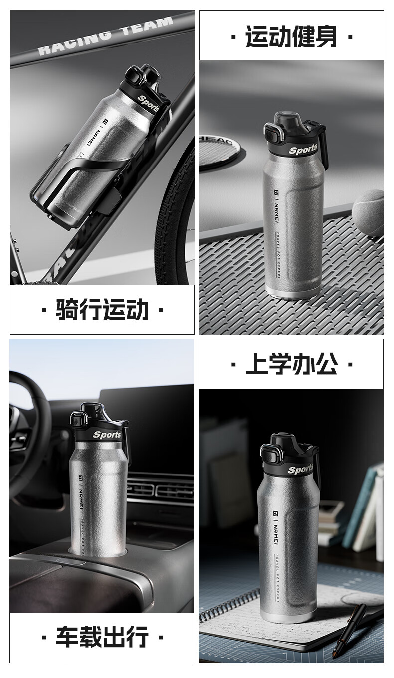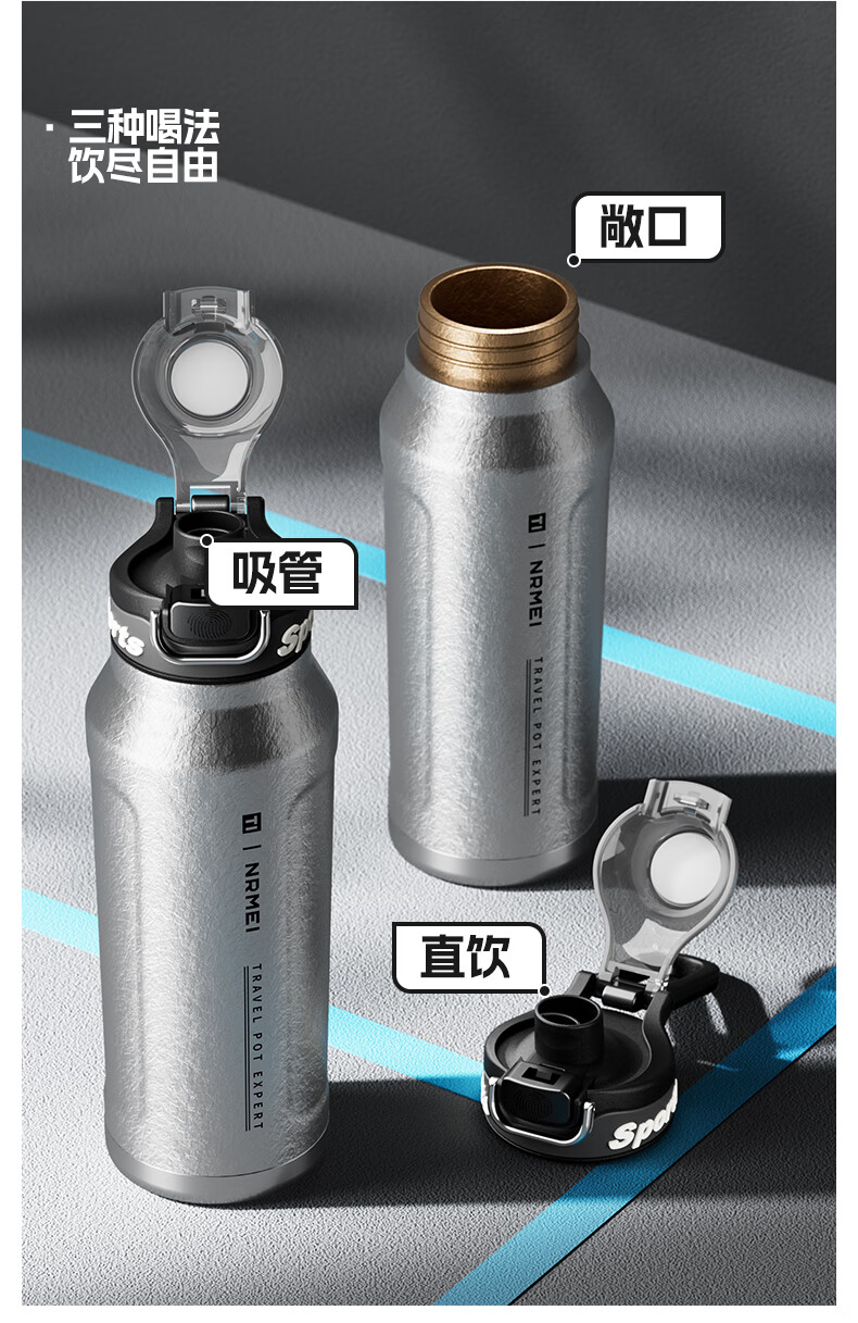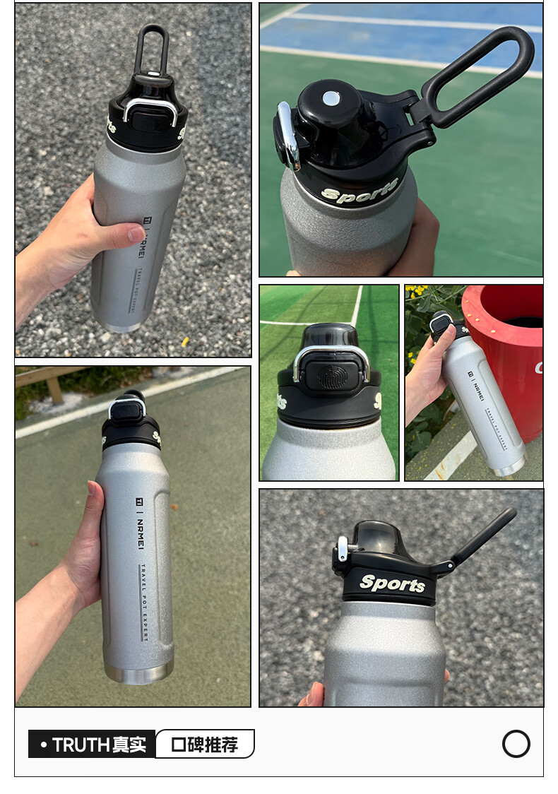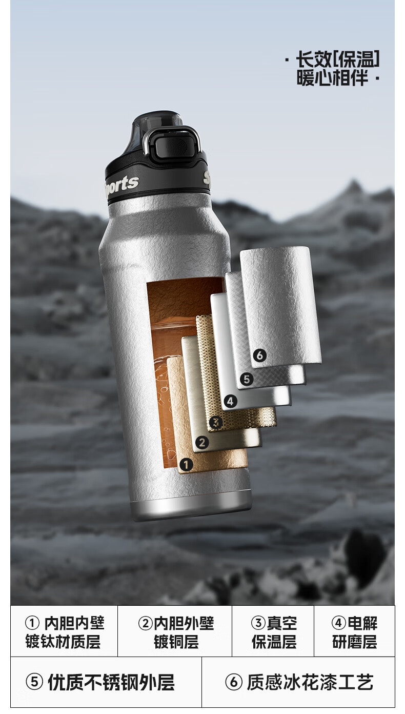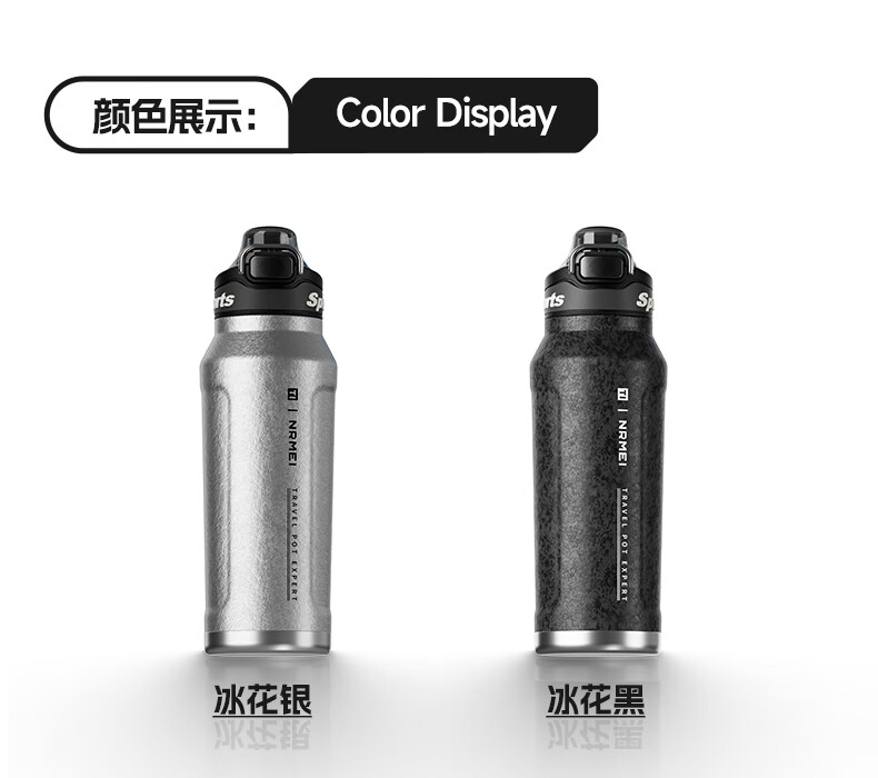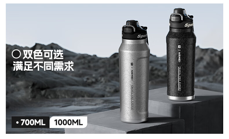 恩尔美纯钛保温杯户外便携大容量水壶镀钛高档个人商务吨吨男女新款水杯 【冰花银】1000ml-保冷热
