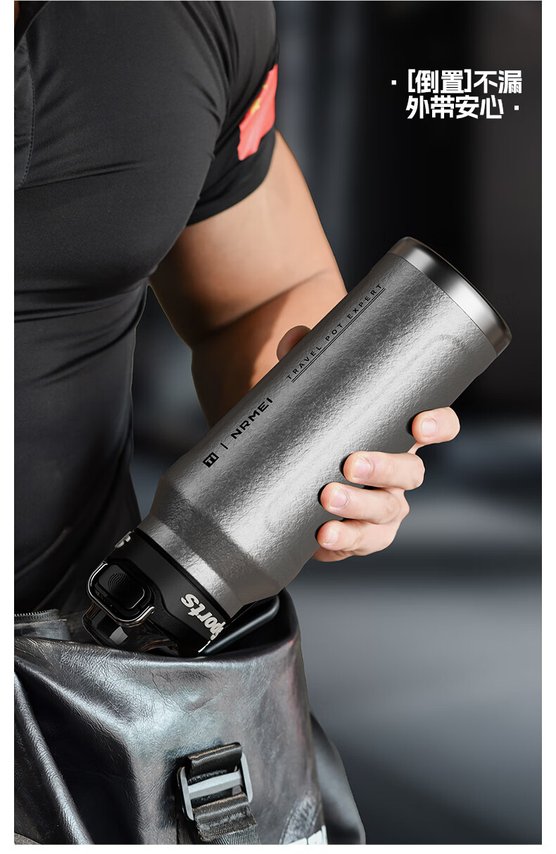 恩尔美(nRMEi)保温保冷杯大容量316L不锈钢男士吨桶吨大肚户外运动水壶冰霸杯子 黑色2000ml【冷热双保+316L】