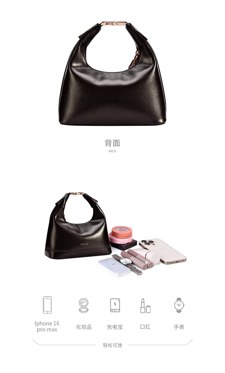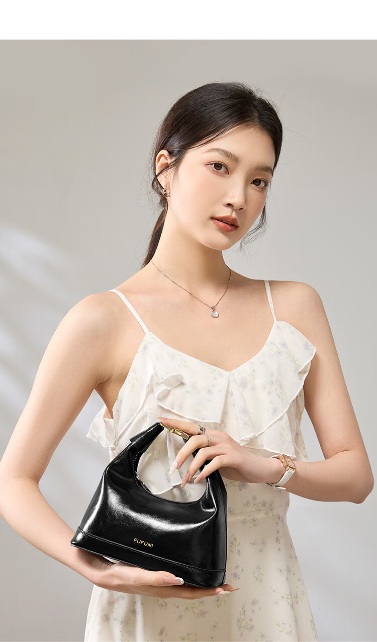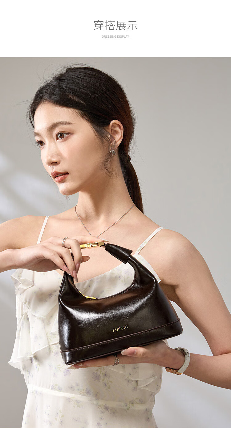 FUFUNI弗芙妮中秋节送礼推荐现货速发新款休闲时尚女包2025高级单肩复古手提包 黑色