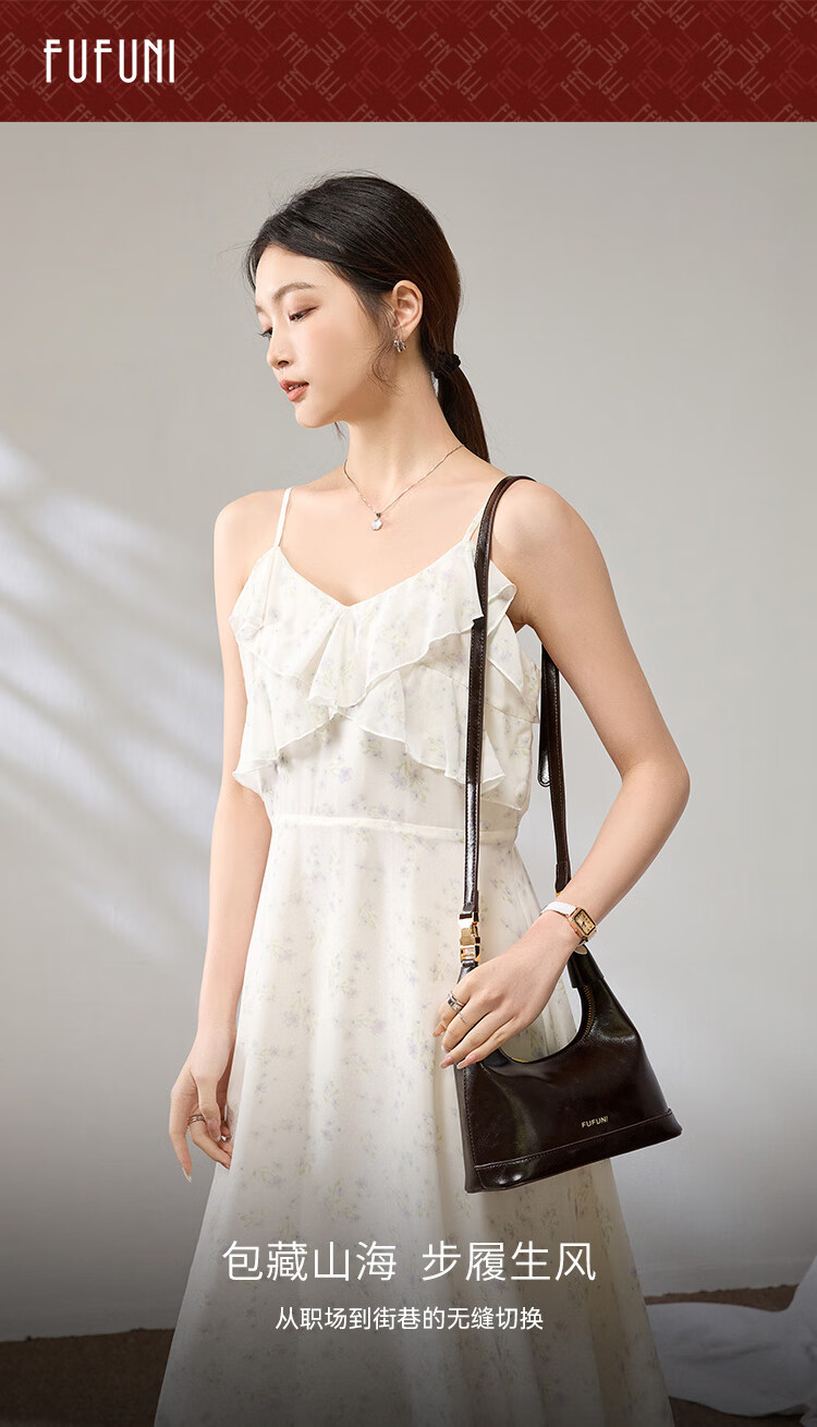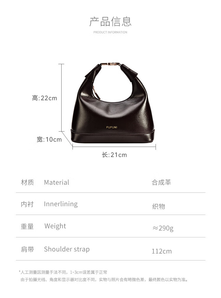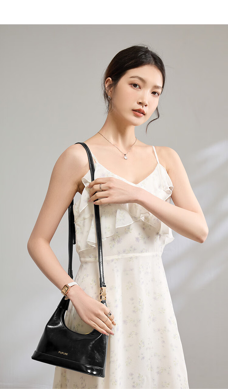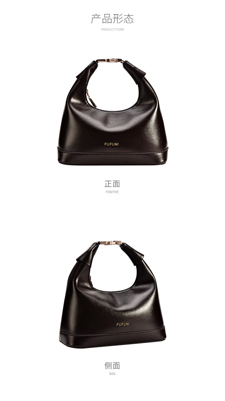 FUFUNI弗芙妮中秋节送礼推荐现货速发新款休闲时尚女包2025高级单肩复古手提包 黑色