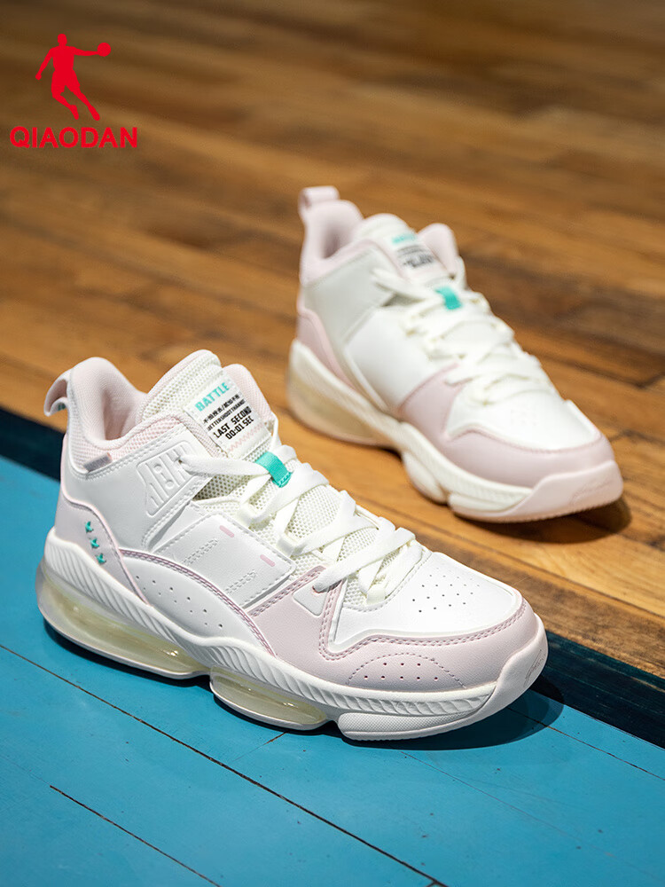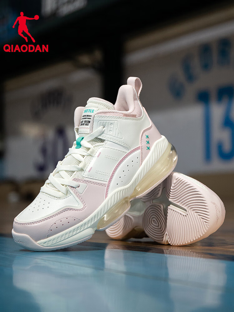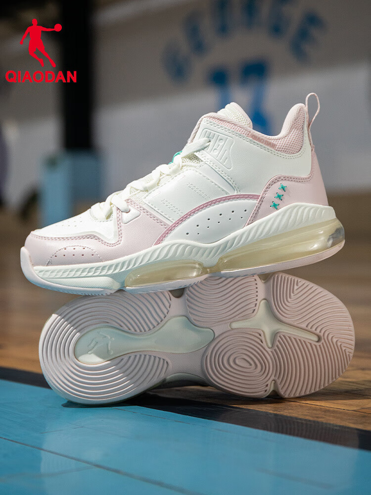 乔丹(QIAODAN)篮球鞋女子实战训练专业运动鞋初中生新款耐磨防滑学生女生球鞋 乔丹白/海贝粉 后掌气垫款 36