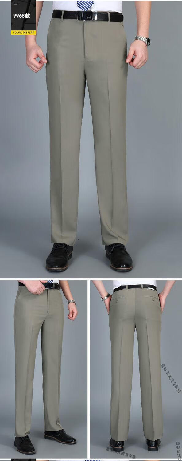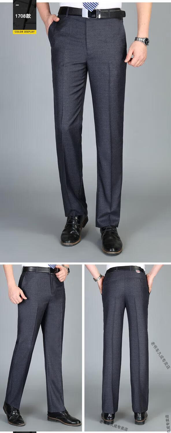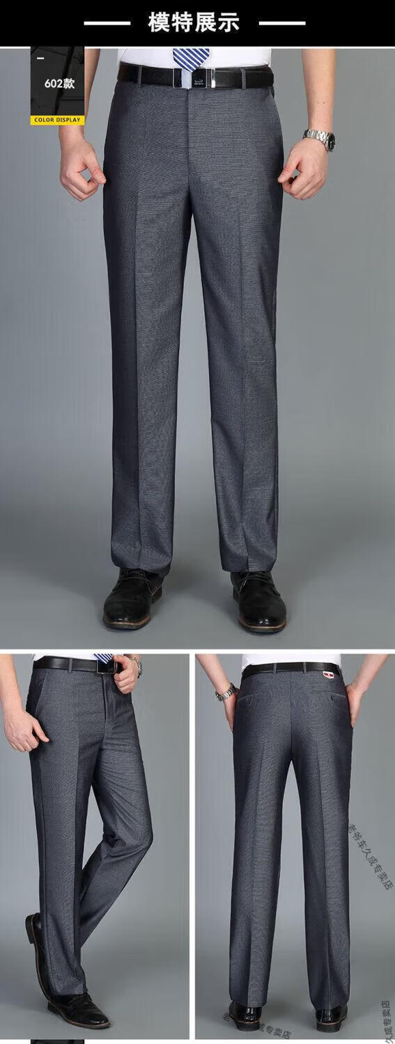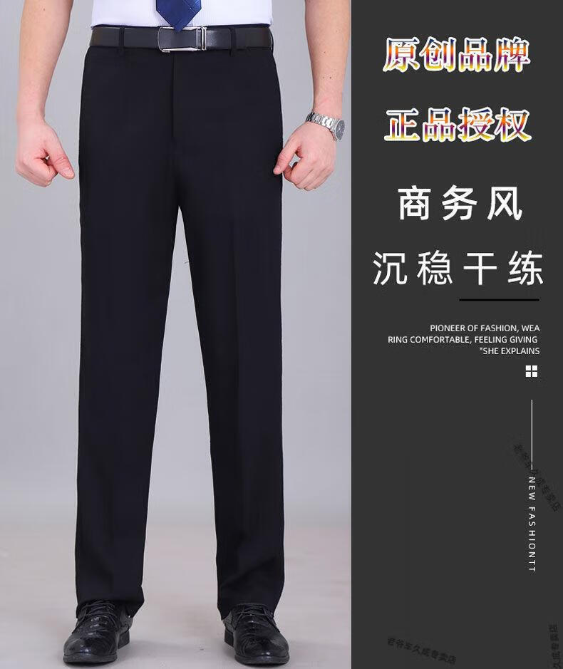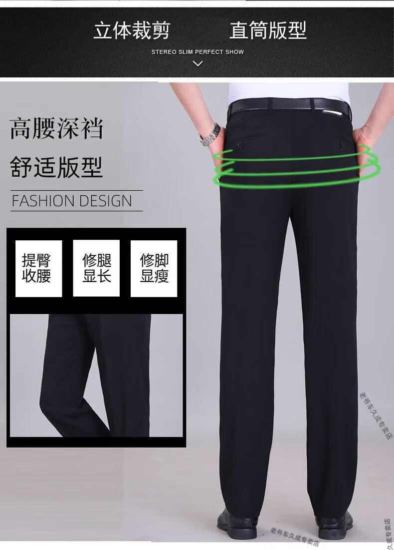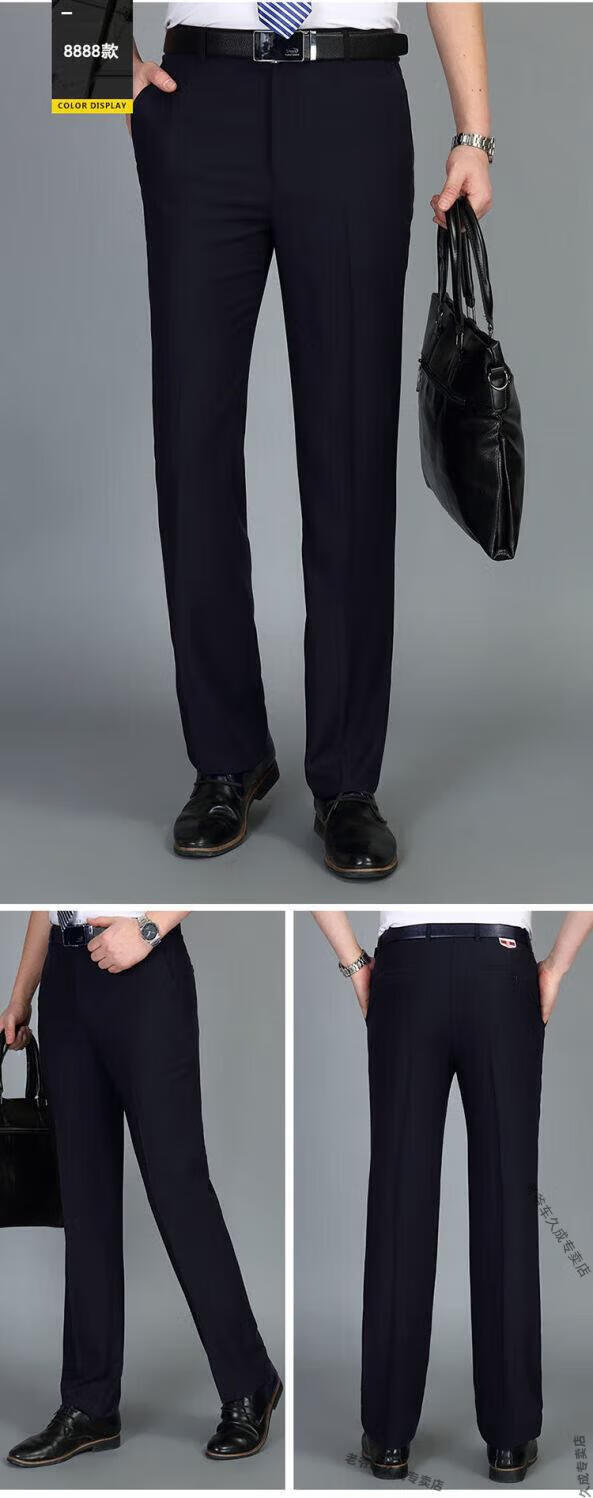 老爷车超垂冰丝春夏季薄款免烫中老年西裤男高腰直筒宽松长裤子 藏蓝 8888 薄款 32 腰围二尺五