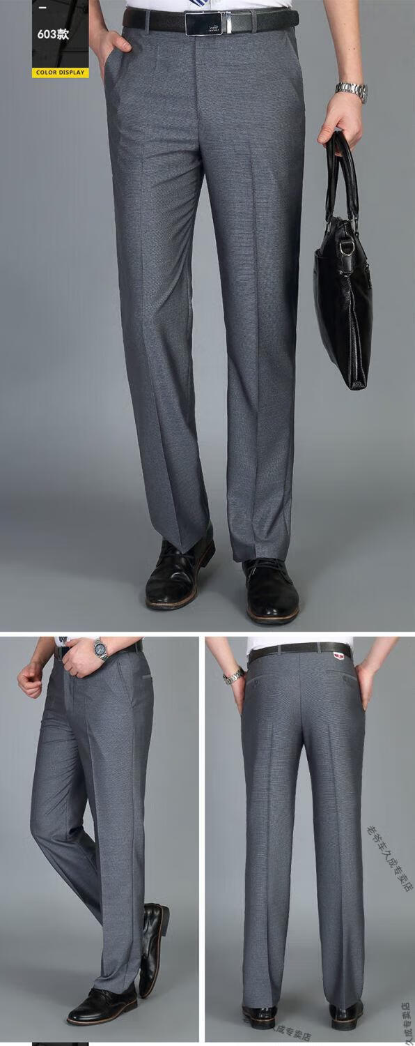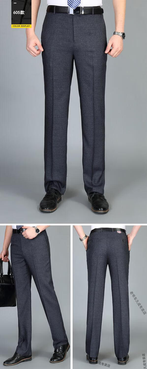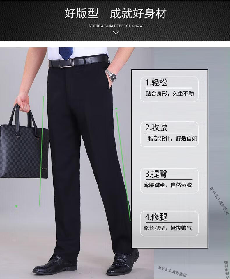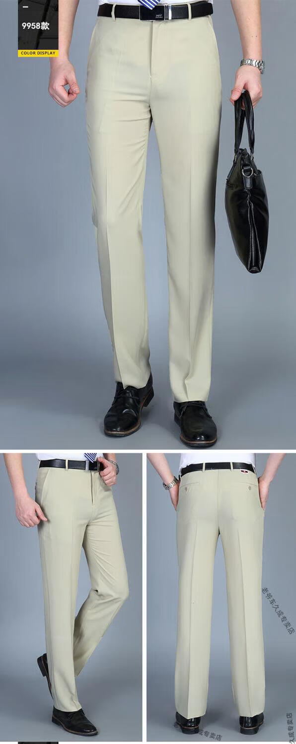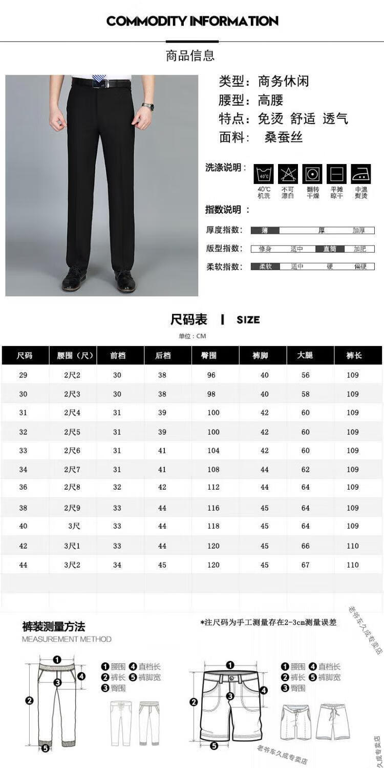 老爷车超垂冰丝春夏季薄款免烫中老年西裤男高腰直筒宽松长裤子 藏蓝 8888 薄款 32 腰围二尺五