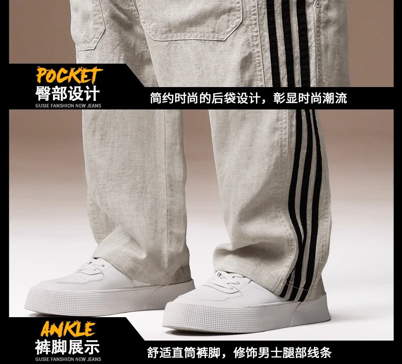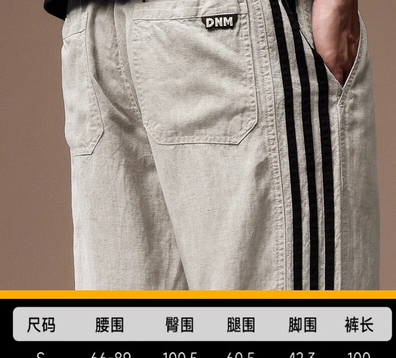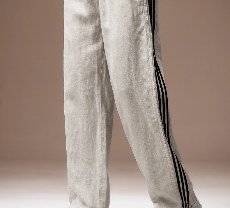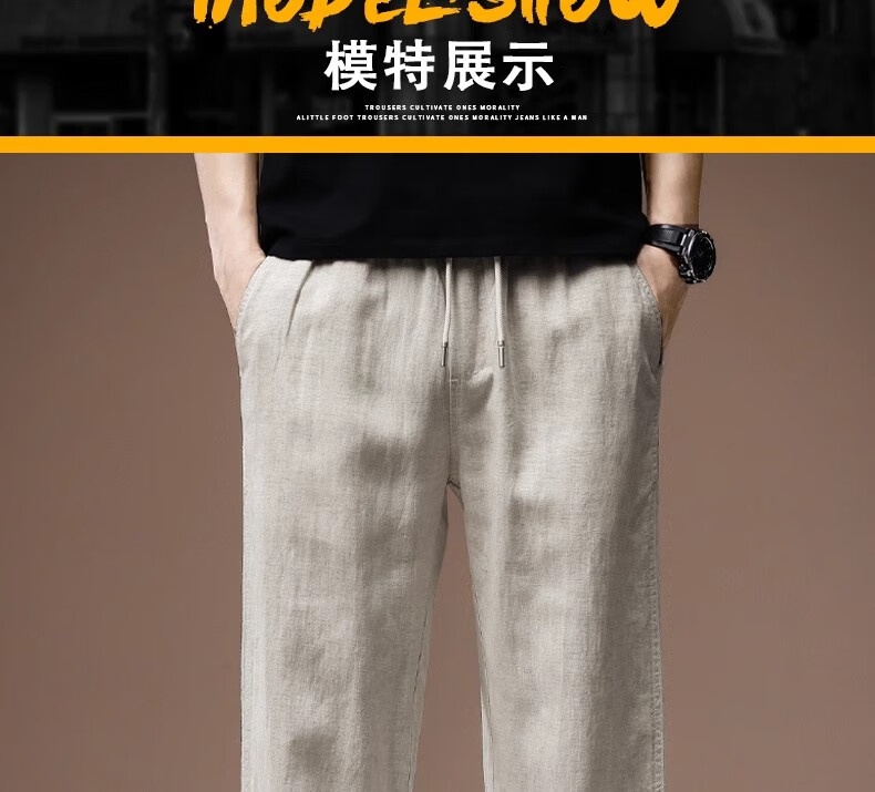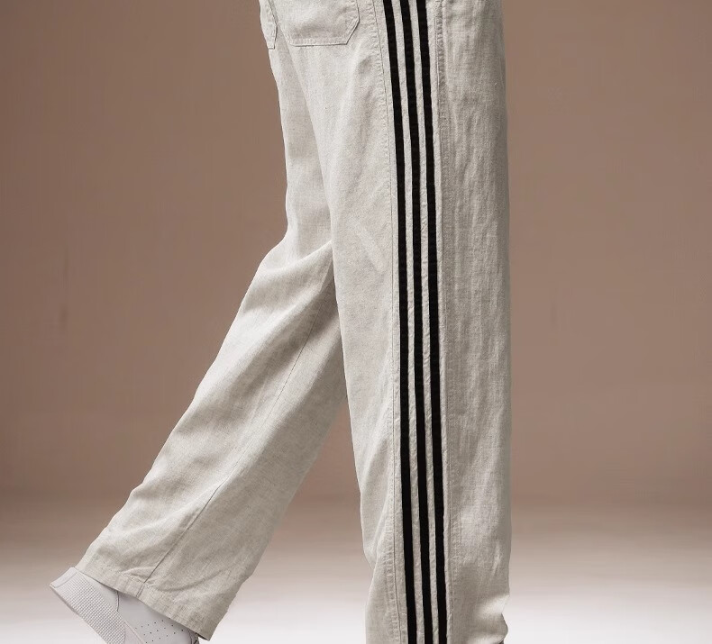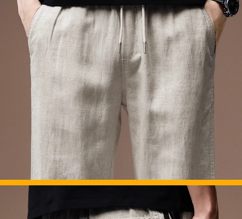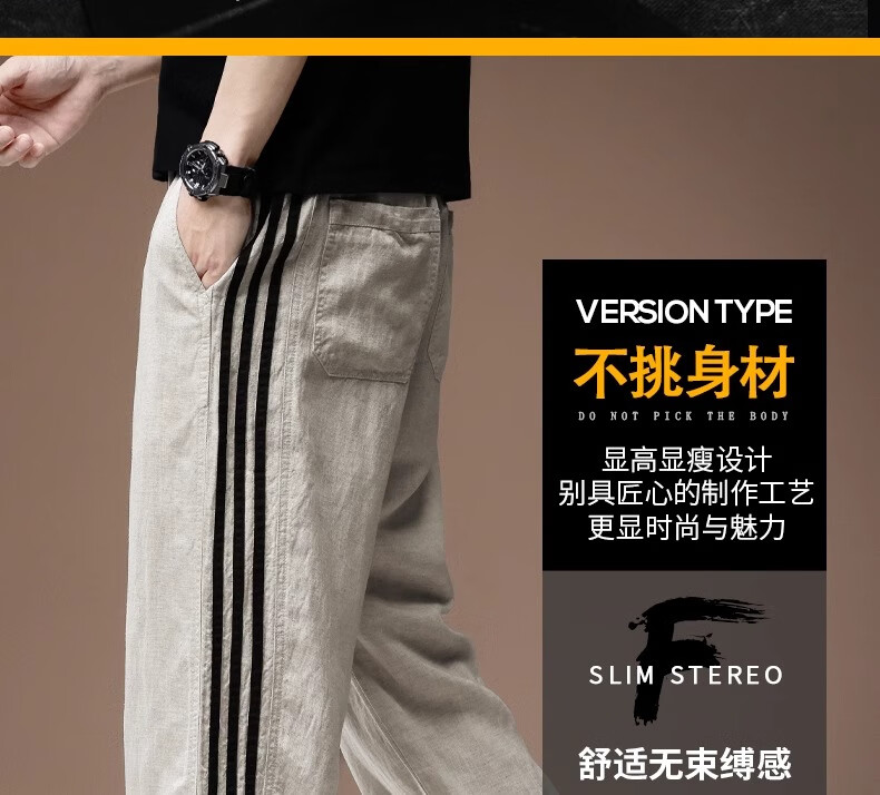 新百伦高端亚麻条纹休闲裤男秋季新款垂感男裤简约直筒长裤子男 杏色+运费险 2XL 【建议170-190斤】