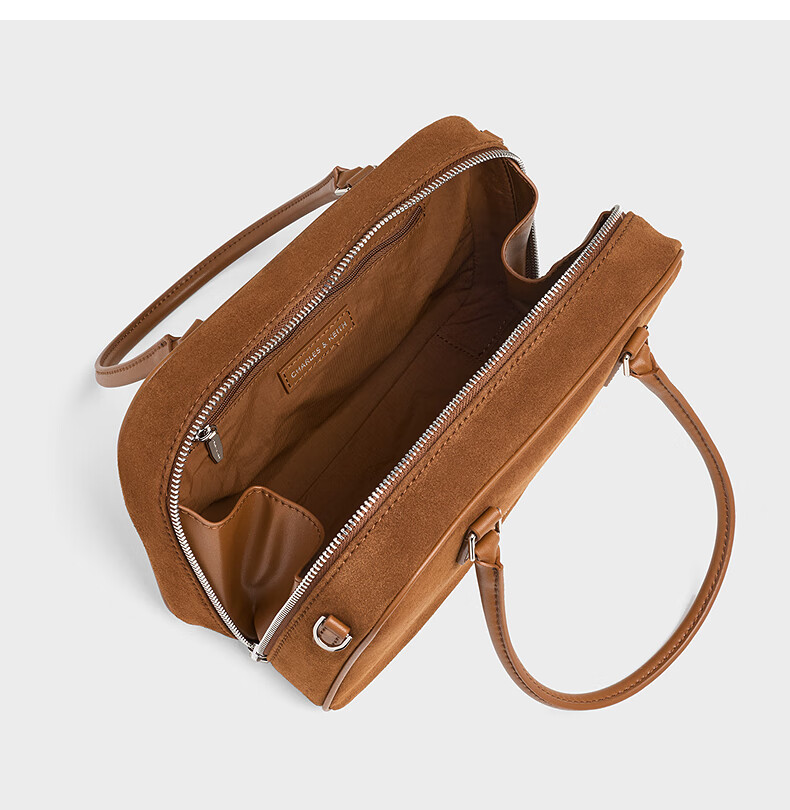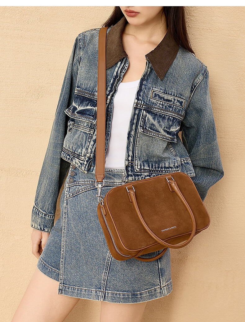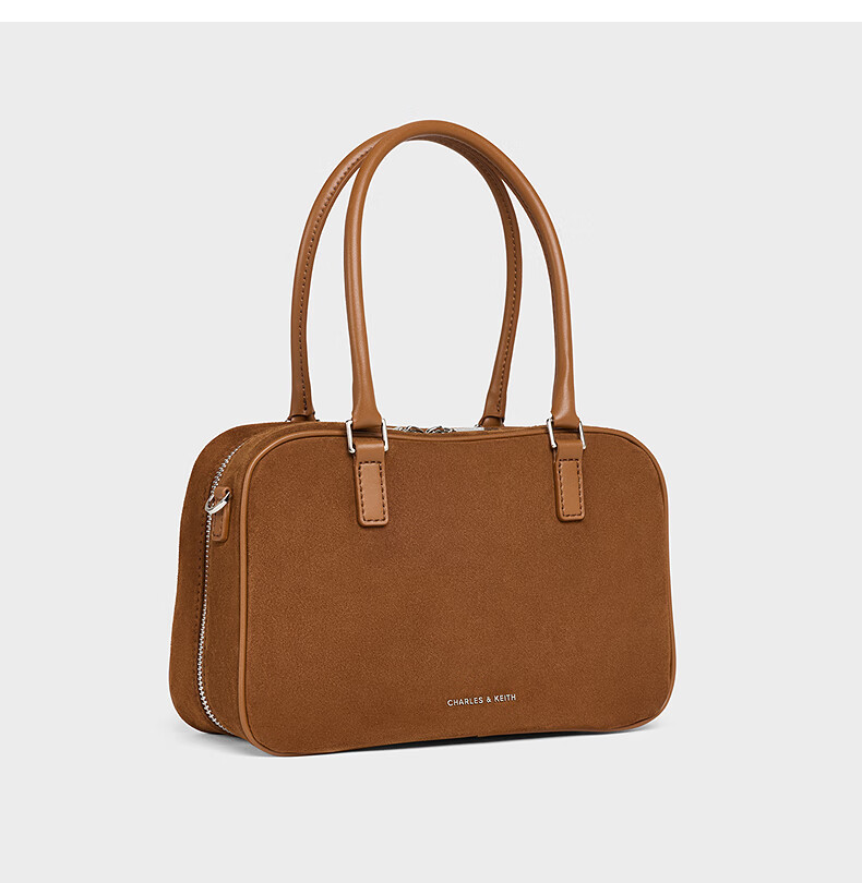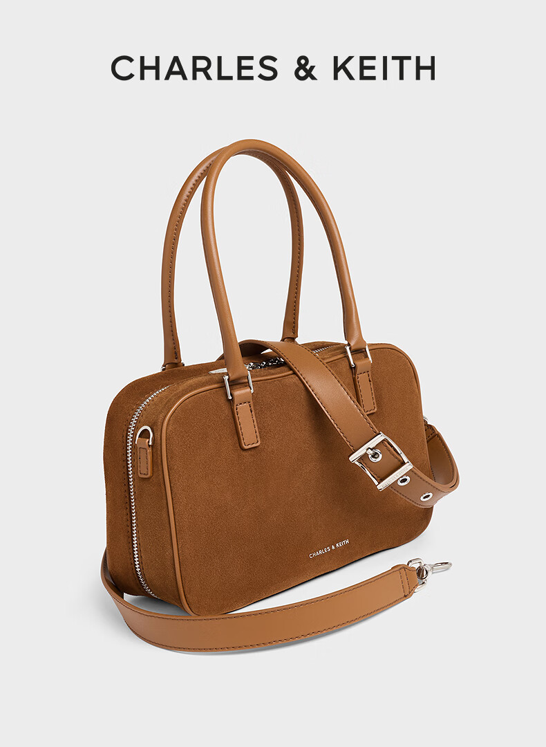 charles&keit25秋复古绒面托特包波士顿包女CK2-30271398-2 Sienna Brown赭石 赭石棕 M