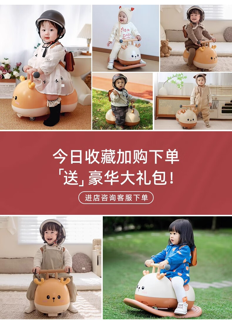 热豹 花生车扭扭车1-3岁防侧翻摇摇车婴儿童扭扭车遛娃溜溜车周岁礼物 【赠书包+头盔】 柠檬黄 +摇摇板+高档礼盒