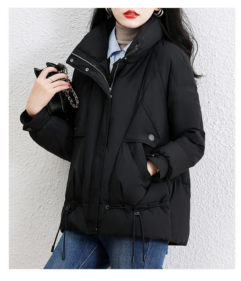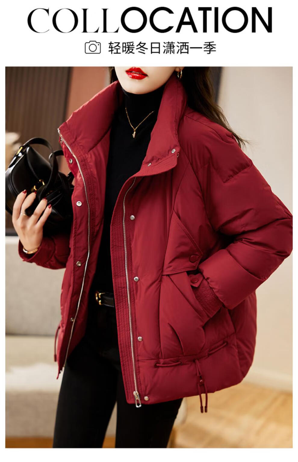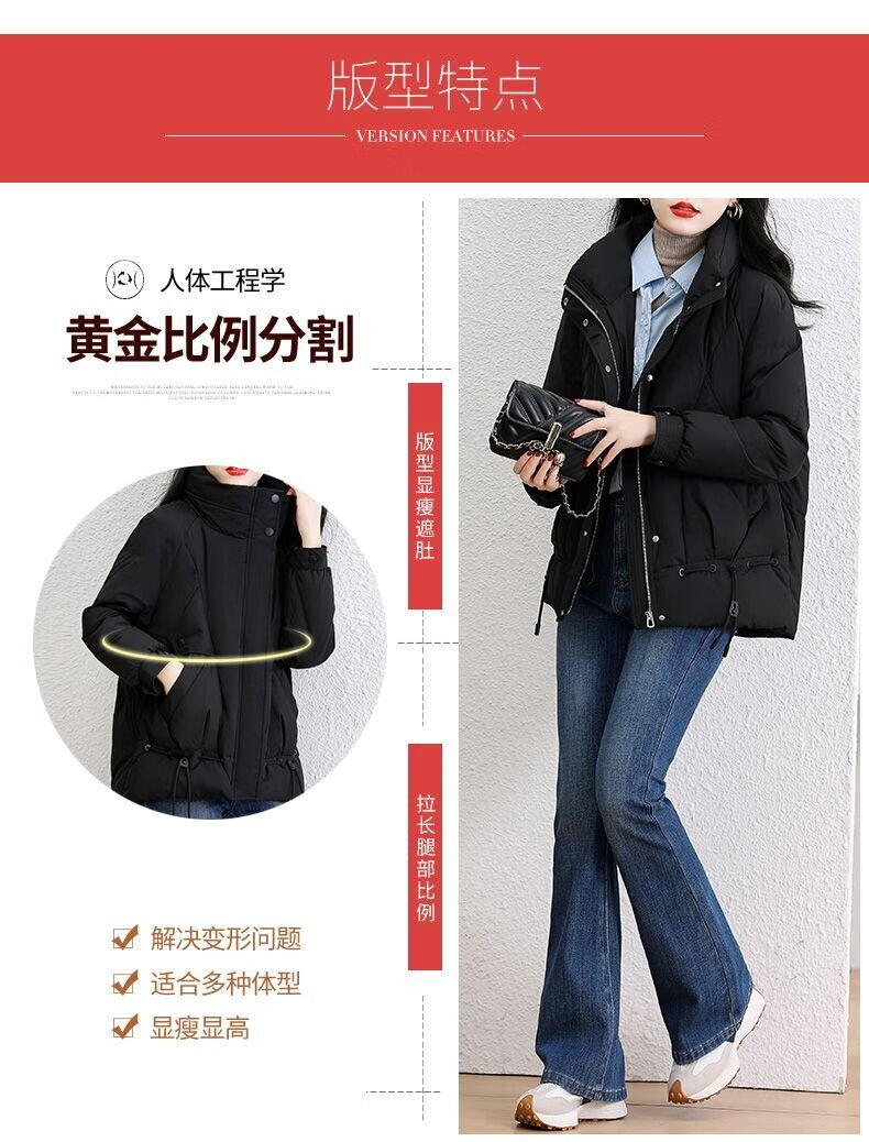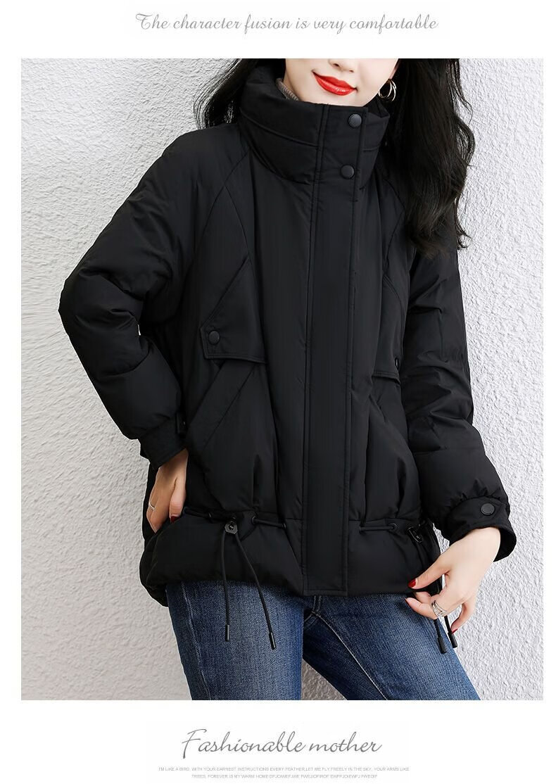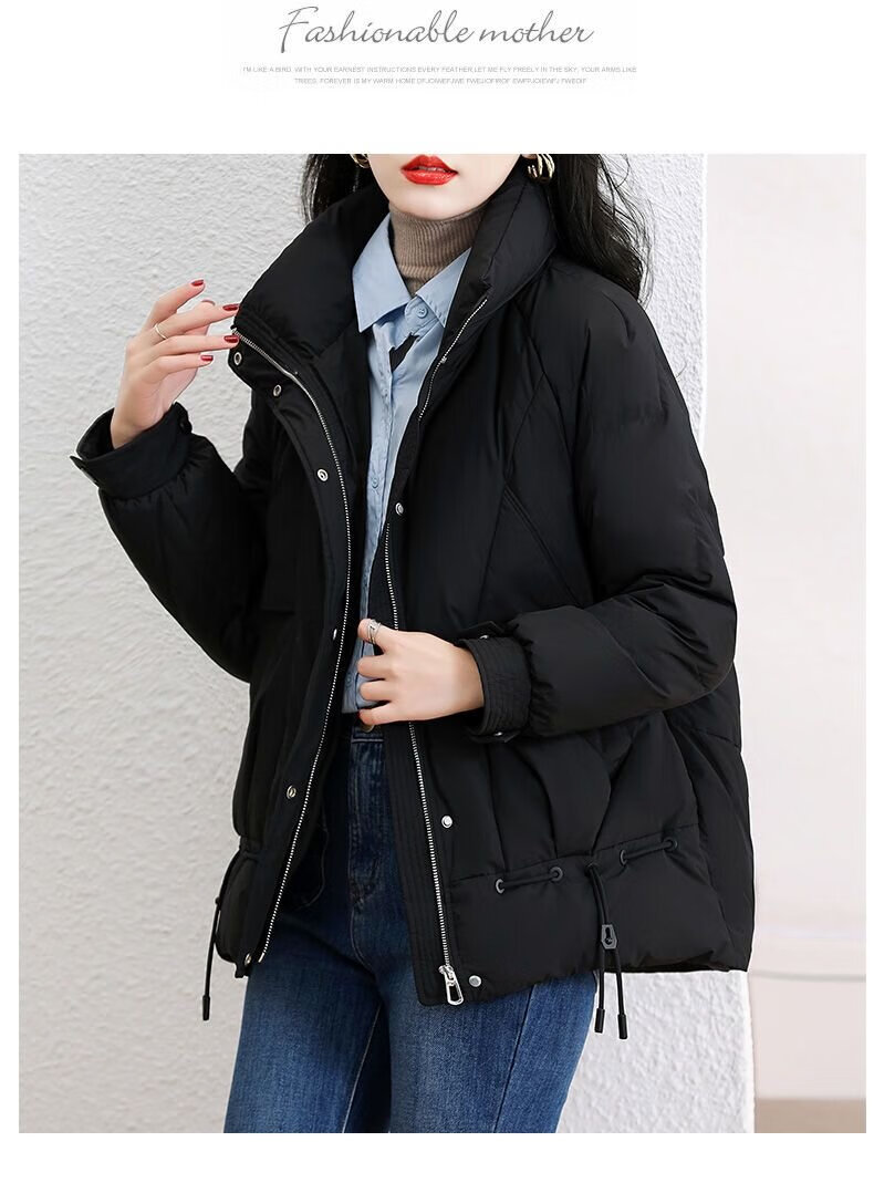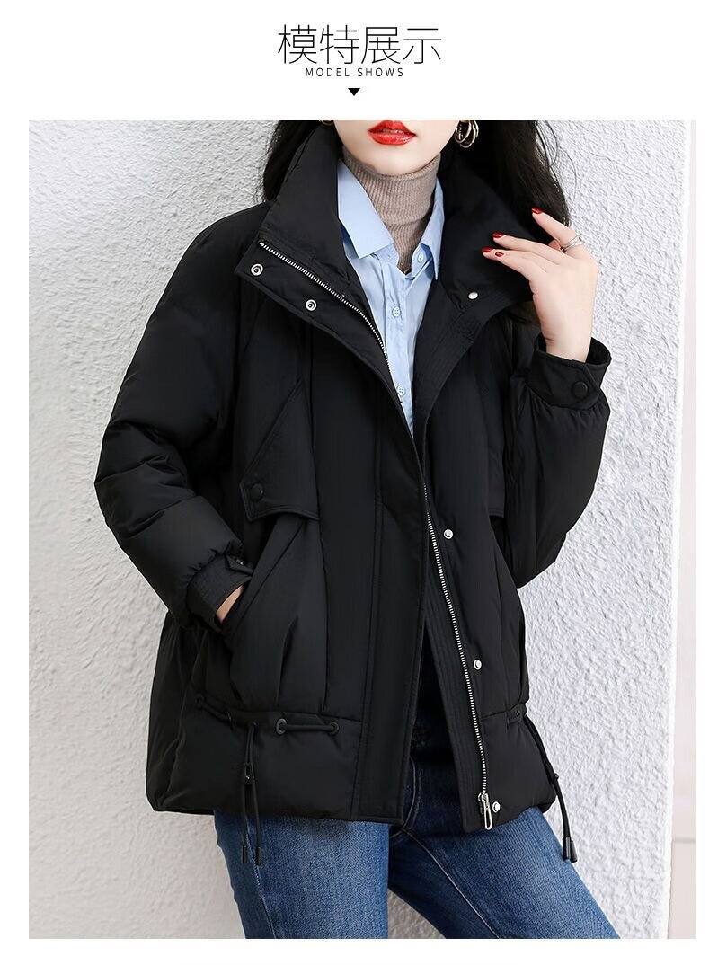 鸭鸭王一博同款轻壳系列羽绒服女短款2025冬季新款简约保暖轻薄外套HY 黑色 2XL