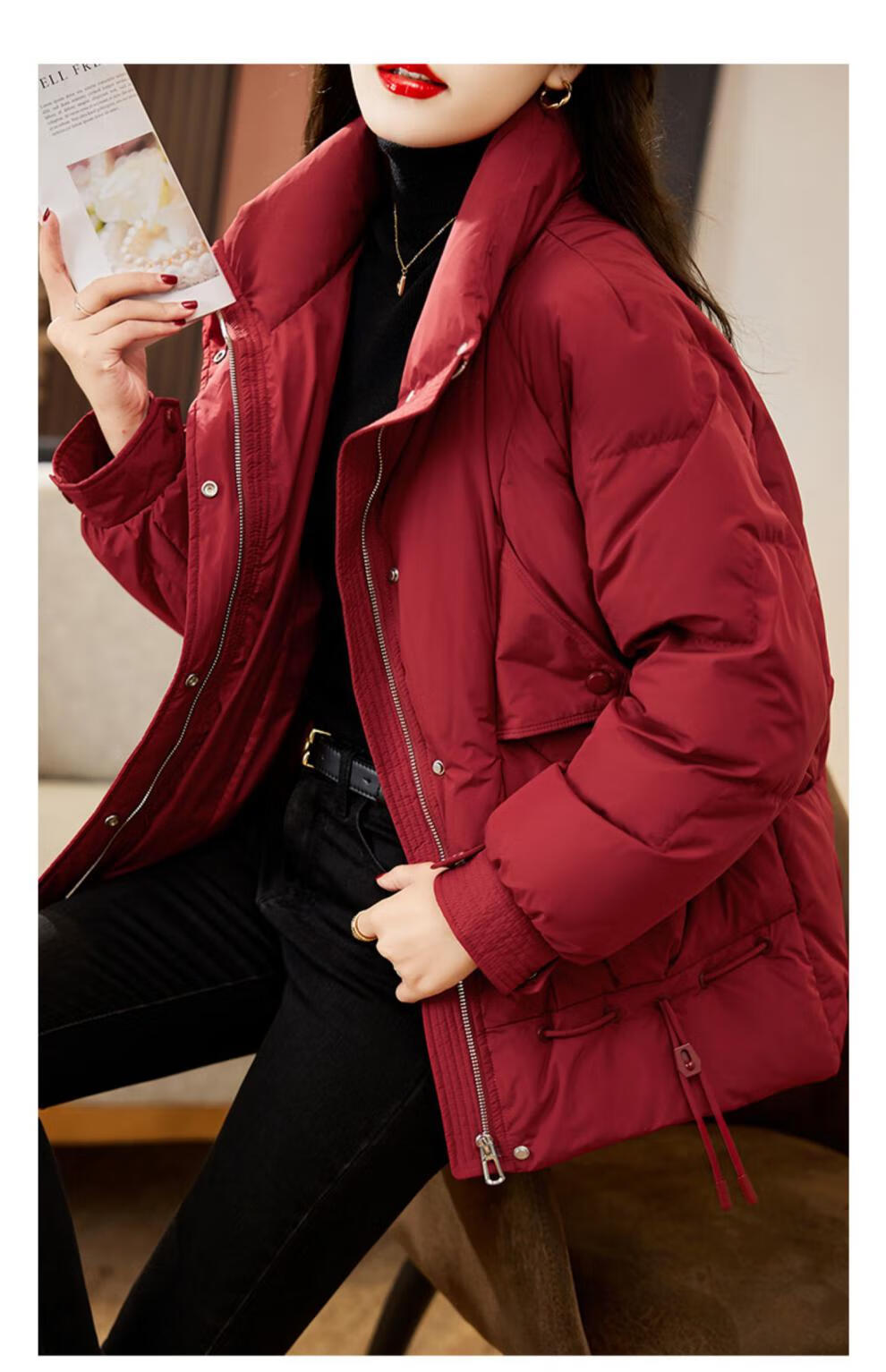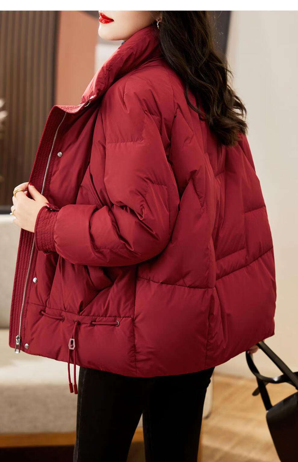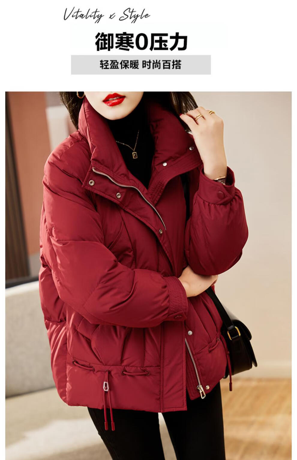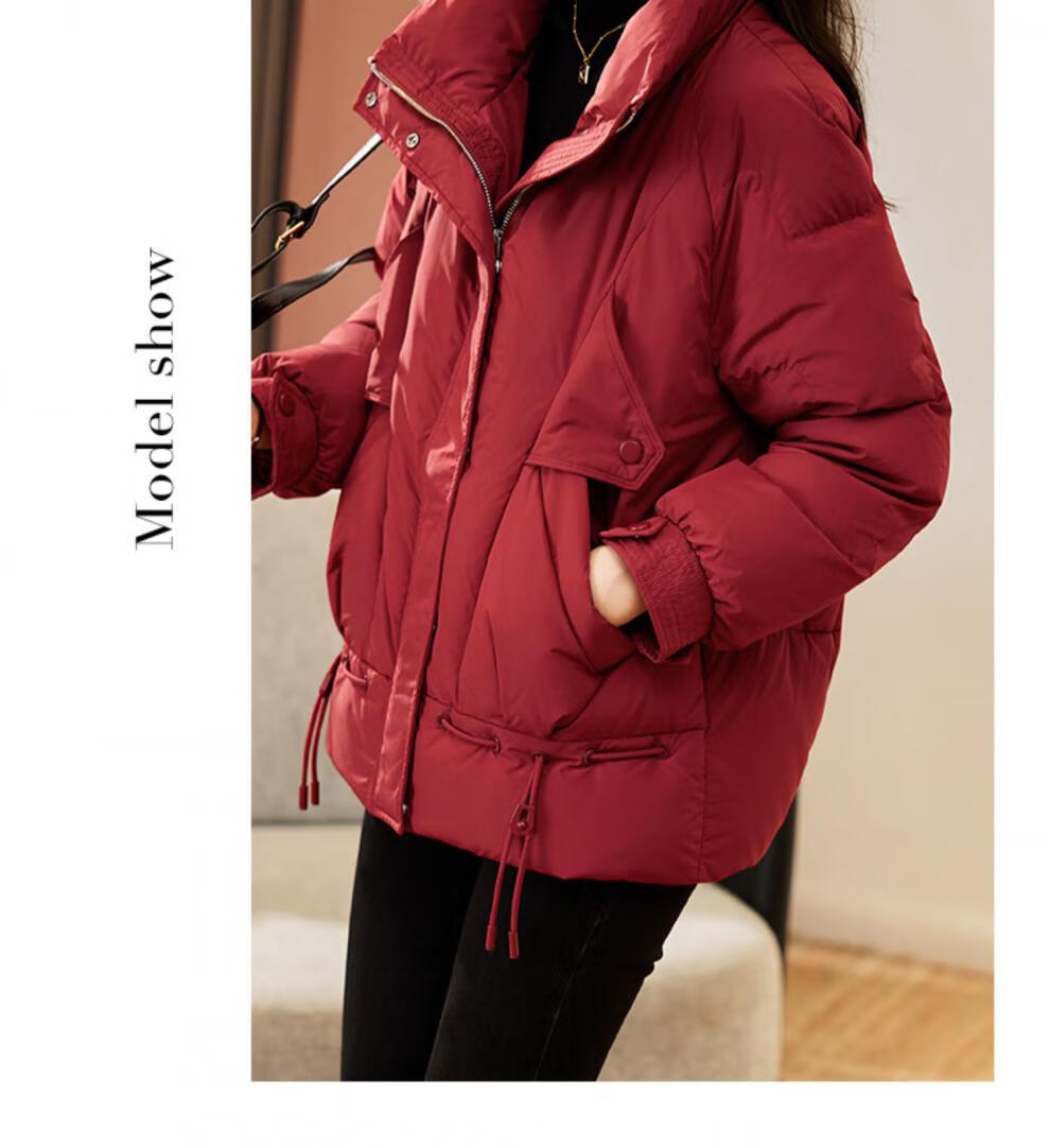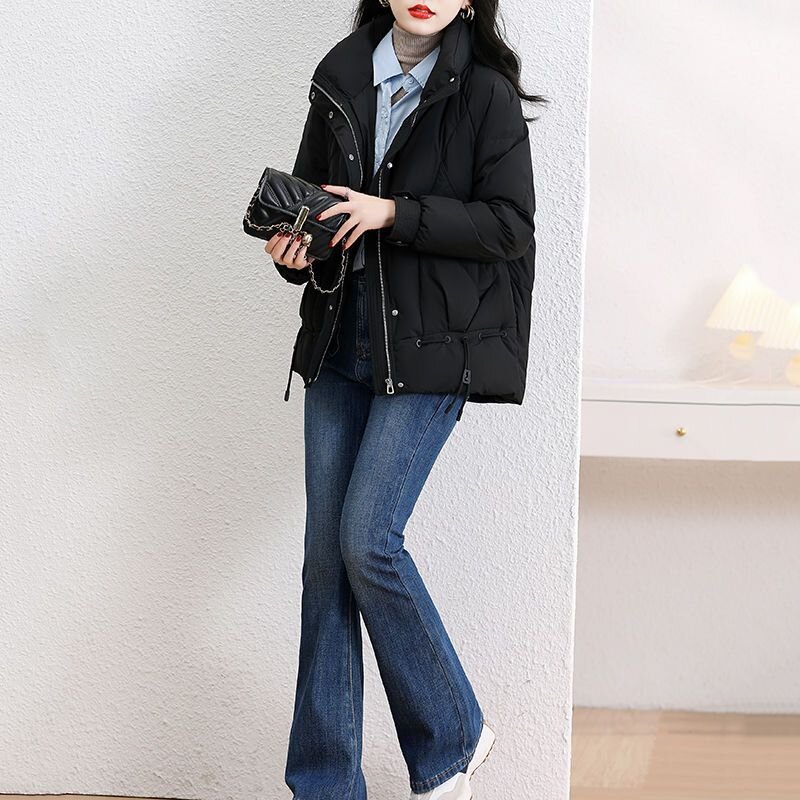 鸭鸭王一博同款轻壳系列羽绒服女短款2025冬季新款简约保暖轻薄外套HY 黑色 2XL