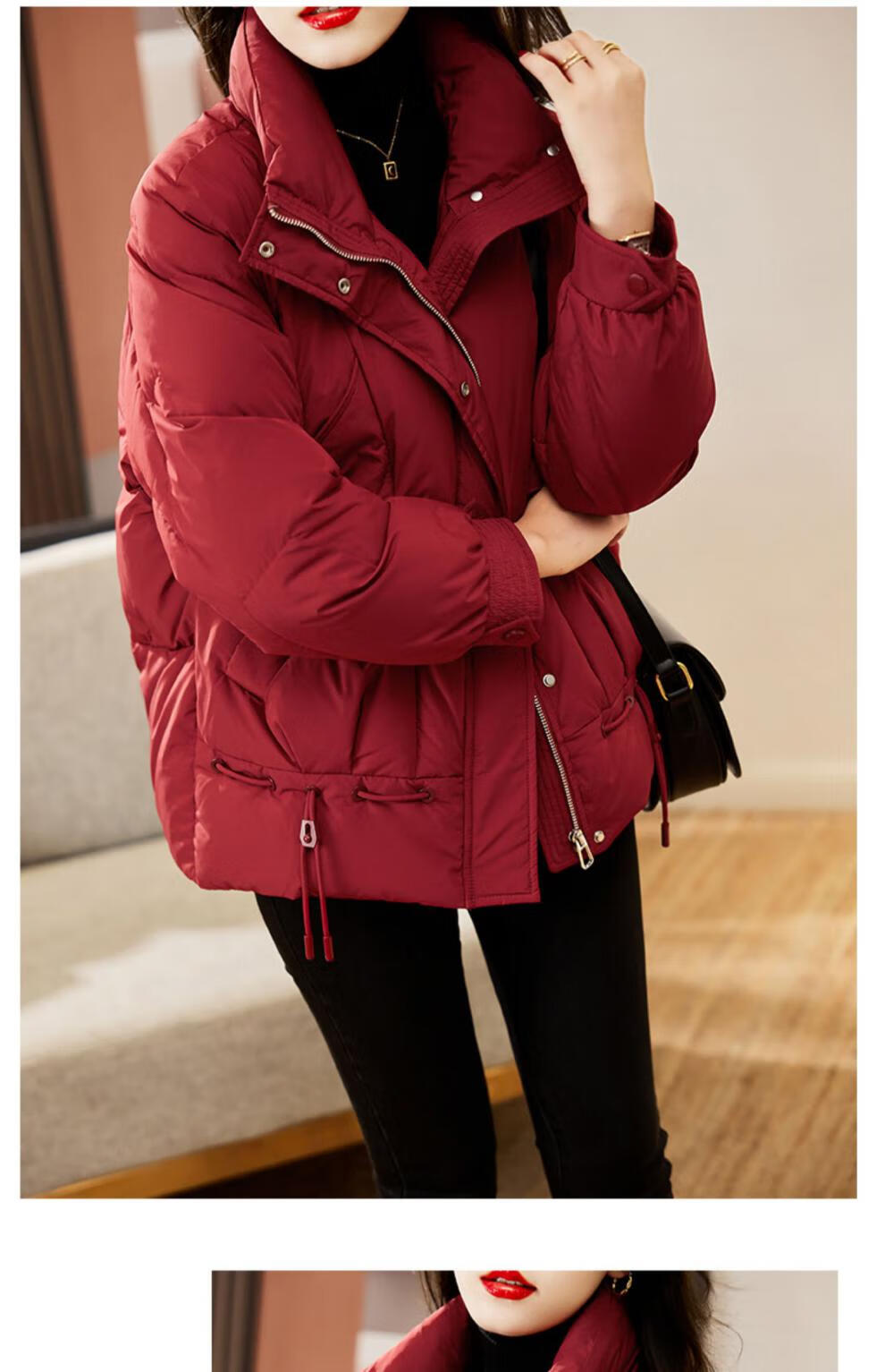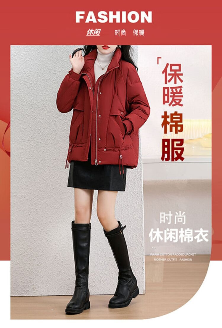 莎妮朵罗大码女装外套女胖mm秋冬棉服女大衣胖人显瘦款保暖棉衣宽松20561 酒红色 厚款 预售7天发货 4XL 建议170-190斤穿着
